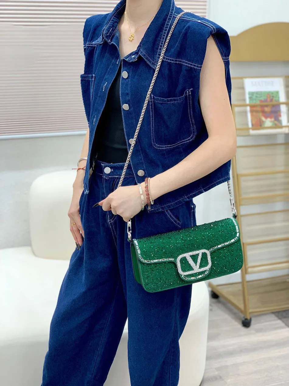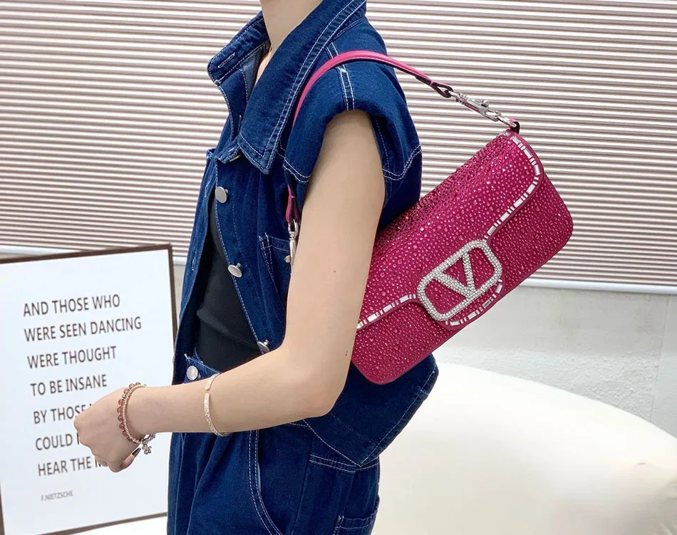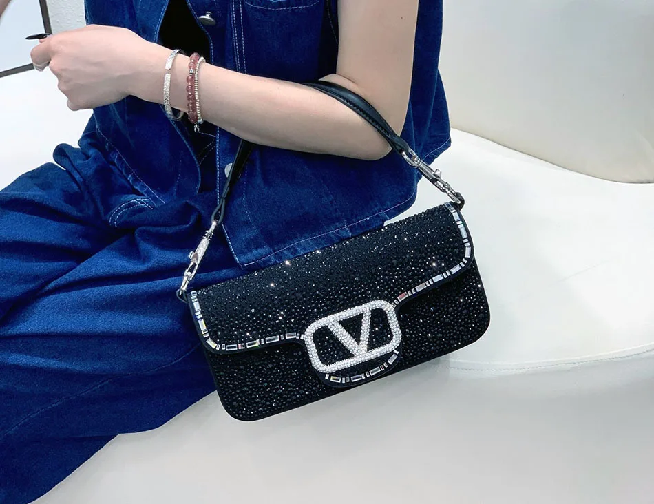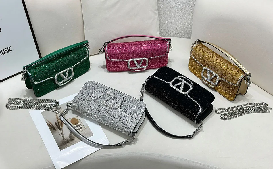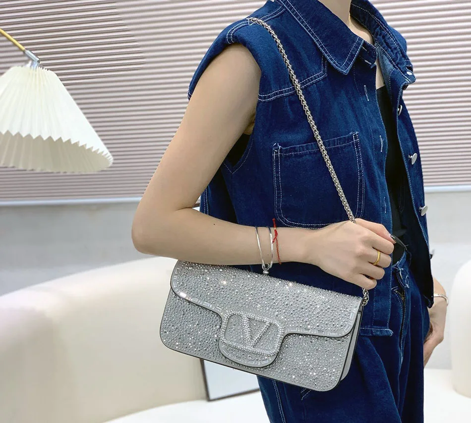 Fully Broken Rhinestones Women's Evening Bag Split Leather Elegant Underarm Bag Fashion Chain Shoulder Bag Luxury Design Diamond