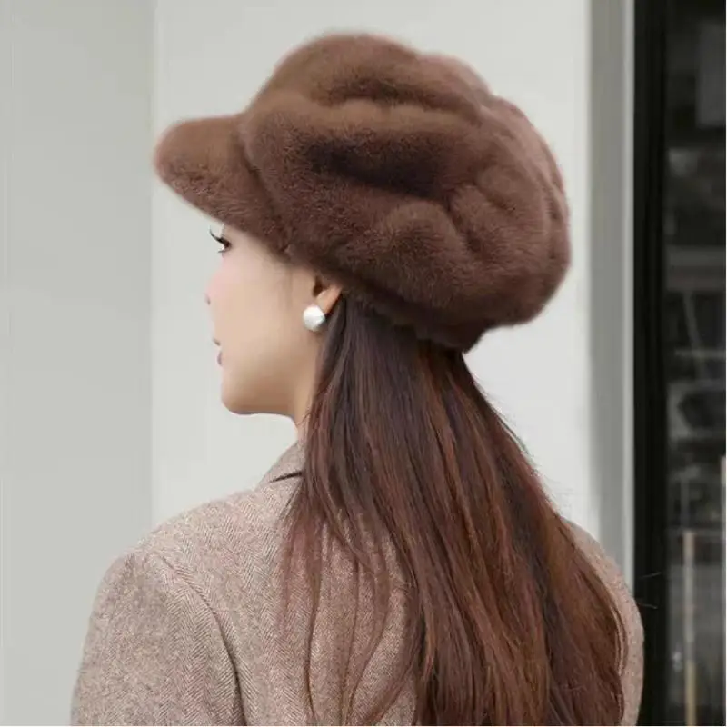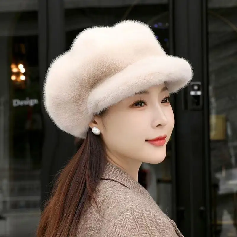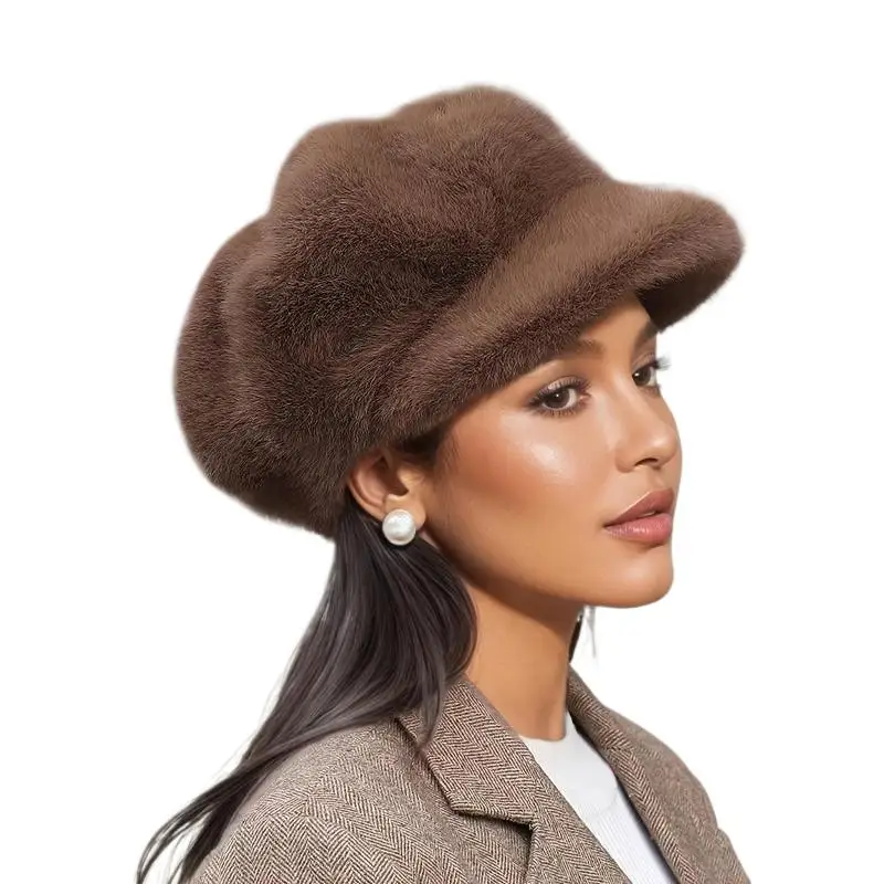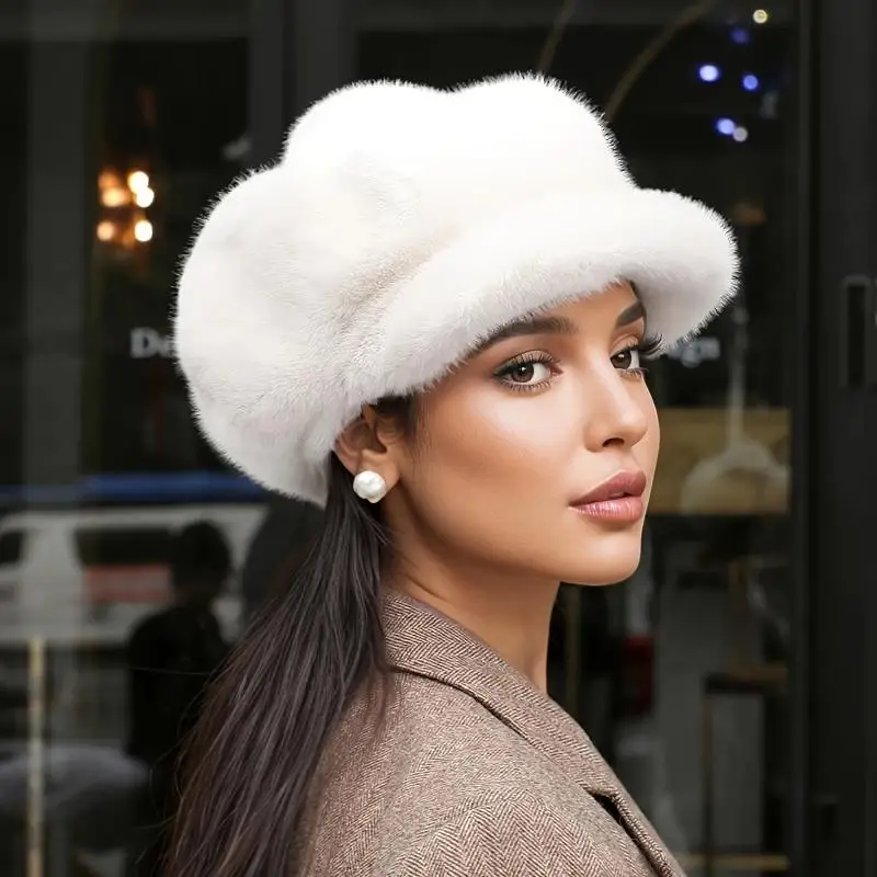 〔Funny〕1Pcs Female Peaked Cap Protection From Cold Women Beret Imitation Mink Solid Color Thick Warm Hat