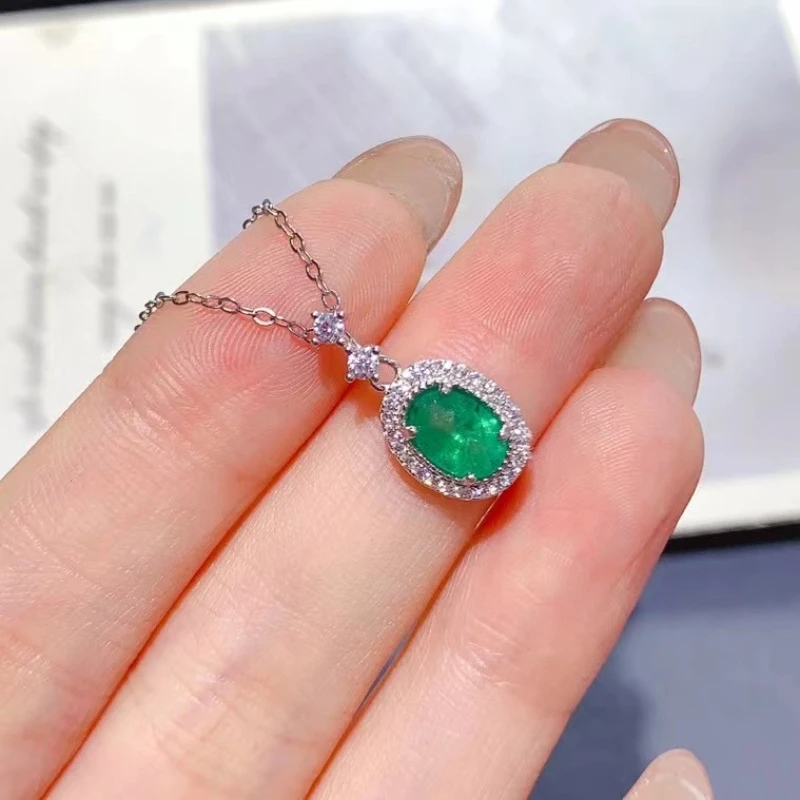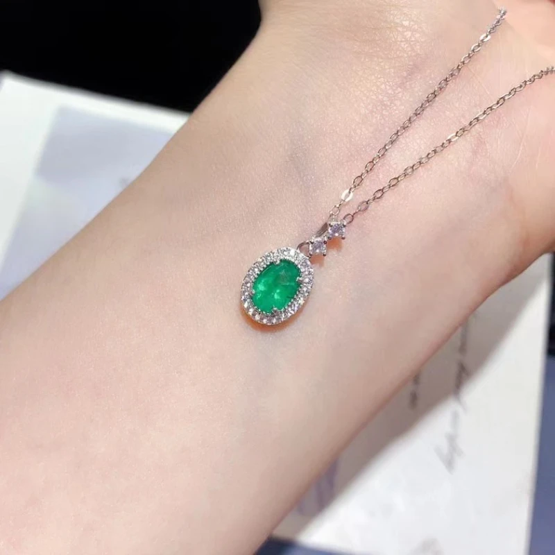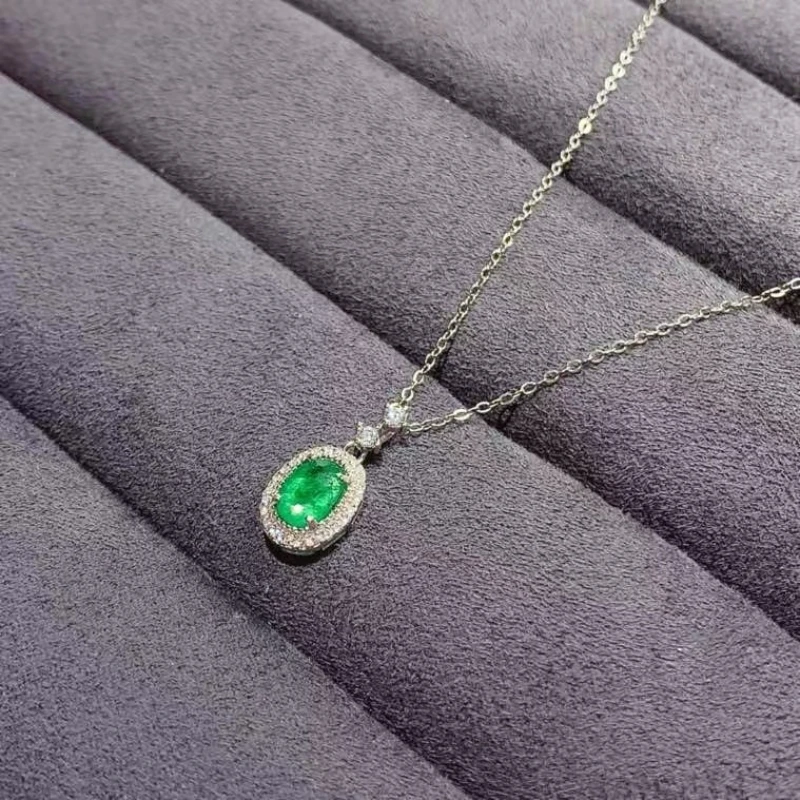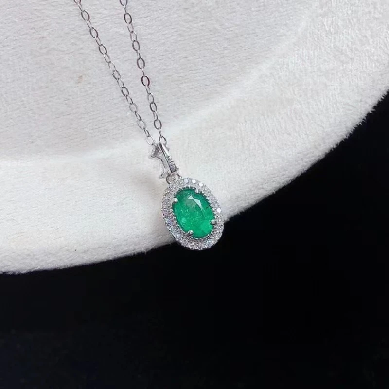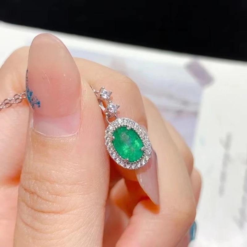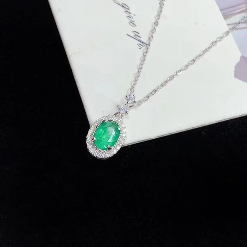 Genuine 925 Silver Emerald Pendant for Daily Wear 5mm*7mm Natural Emerald Silver Pendant with 45cm Silver Necklace