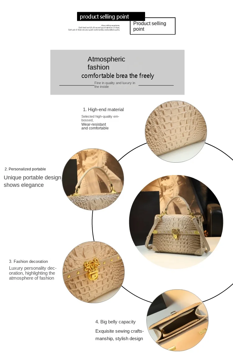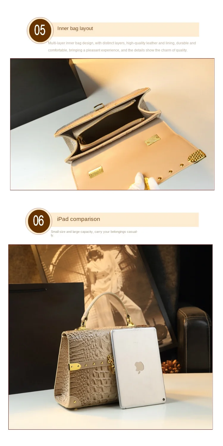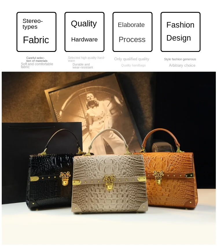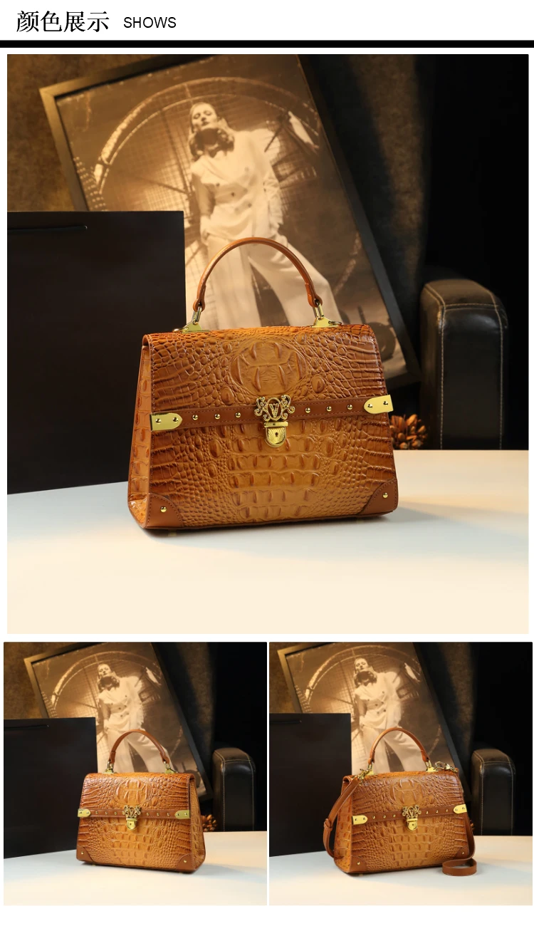 Genuine Leather Women's Handbags 2024 New Crocodile Print Bag Luxury Fashion All The Cross-body Shoulder Bags