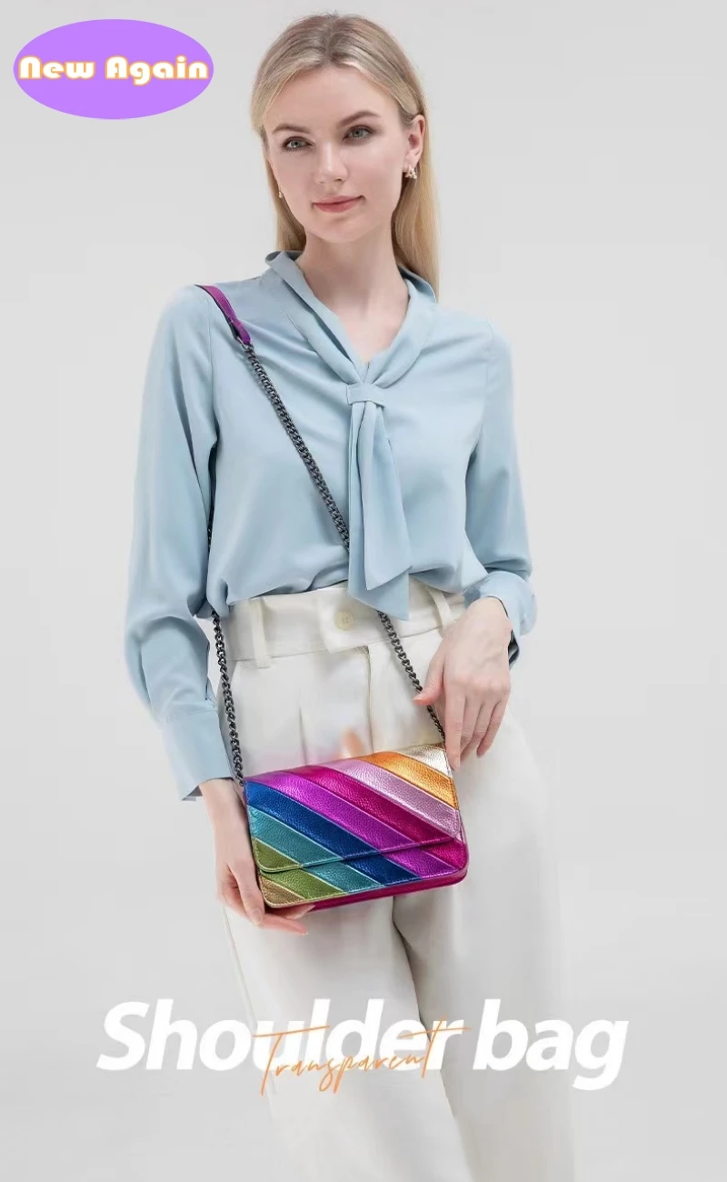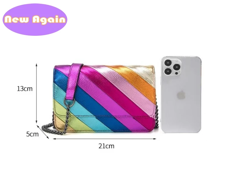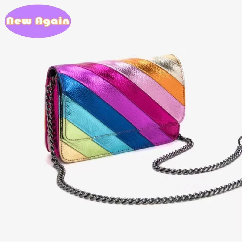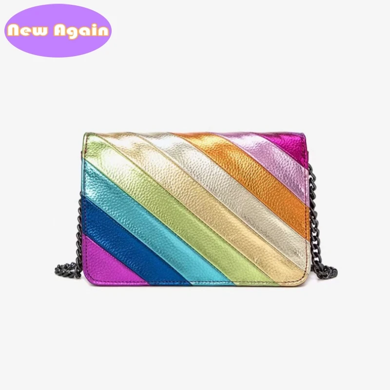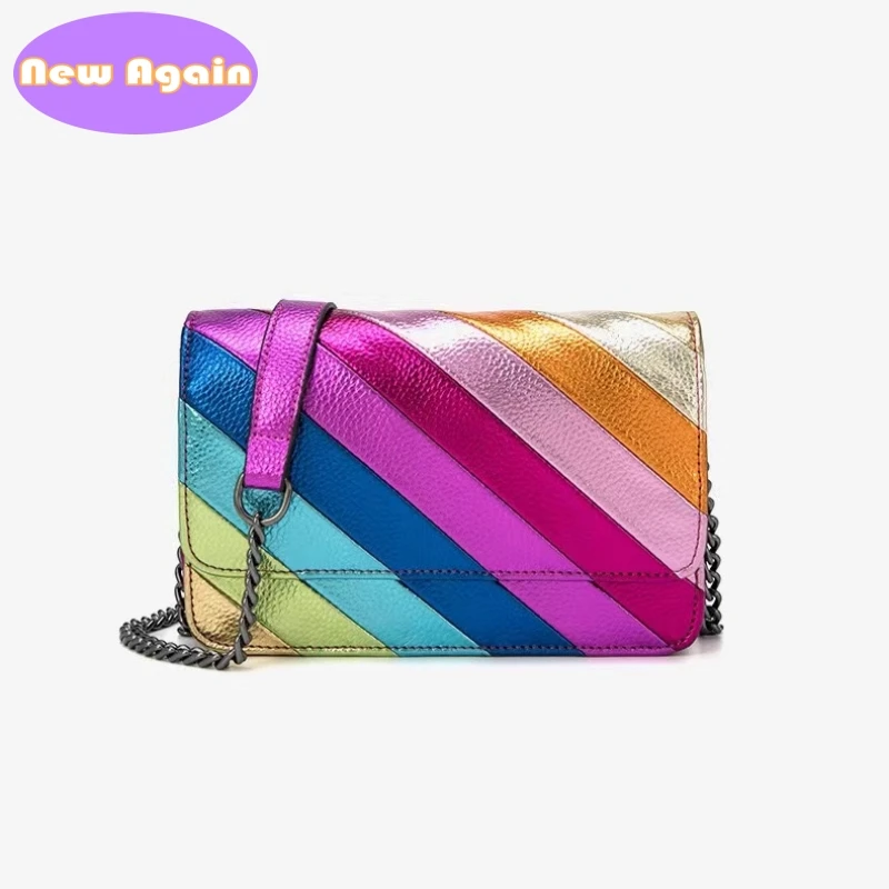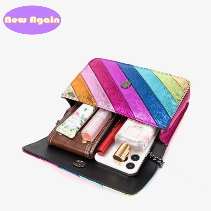 Girls New Trend Color splicing rainbow crossbody bag Ladies shoulder bags Woman's small square bag Teenagers Chain Bags NA289