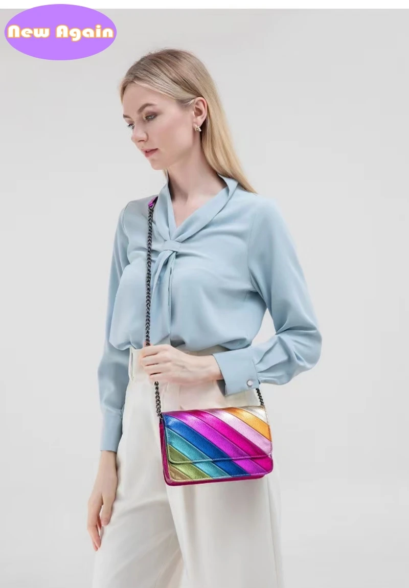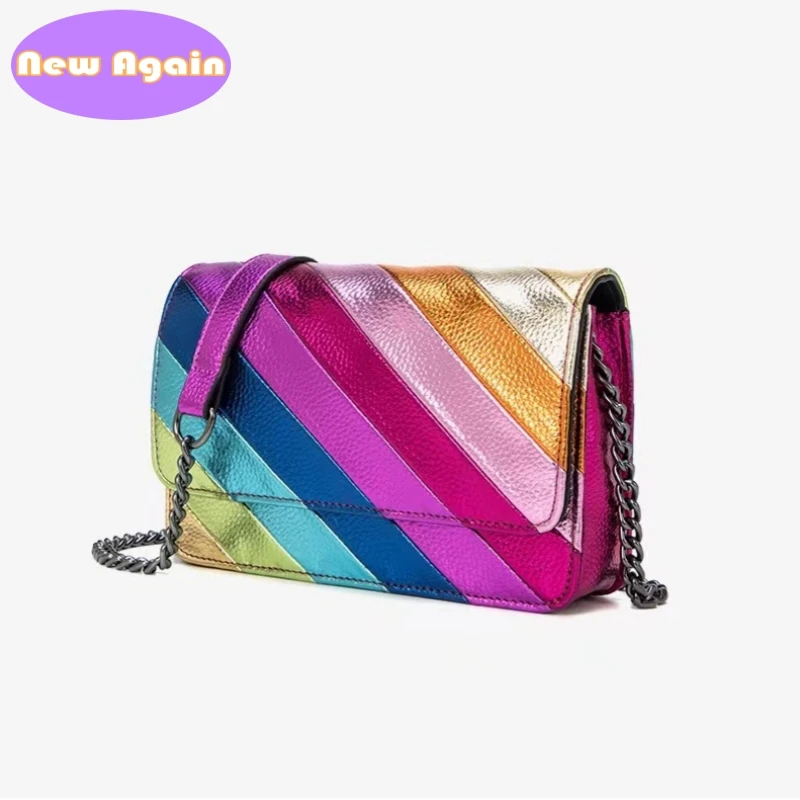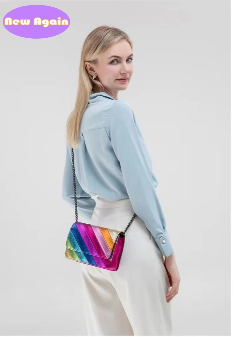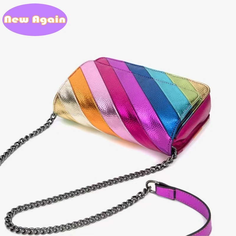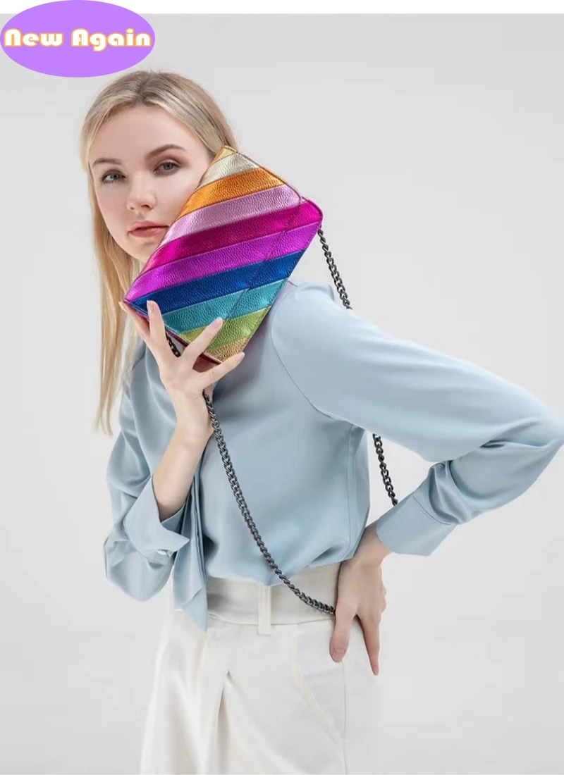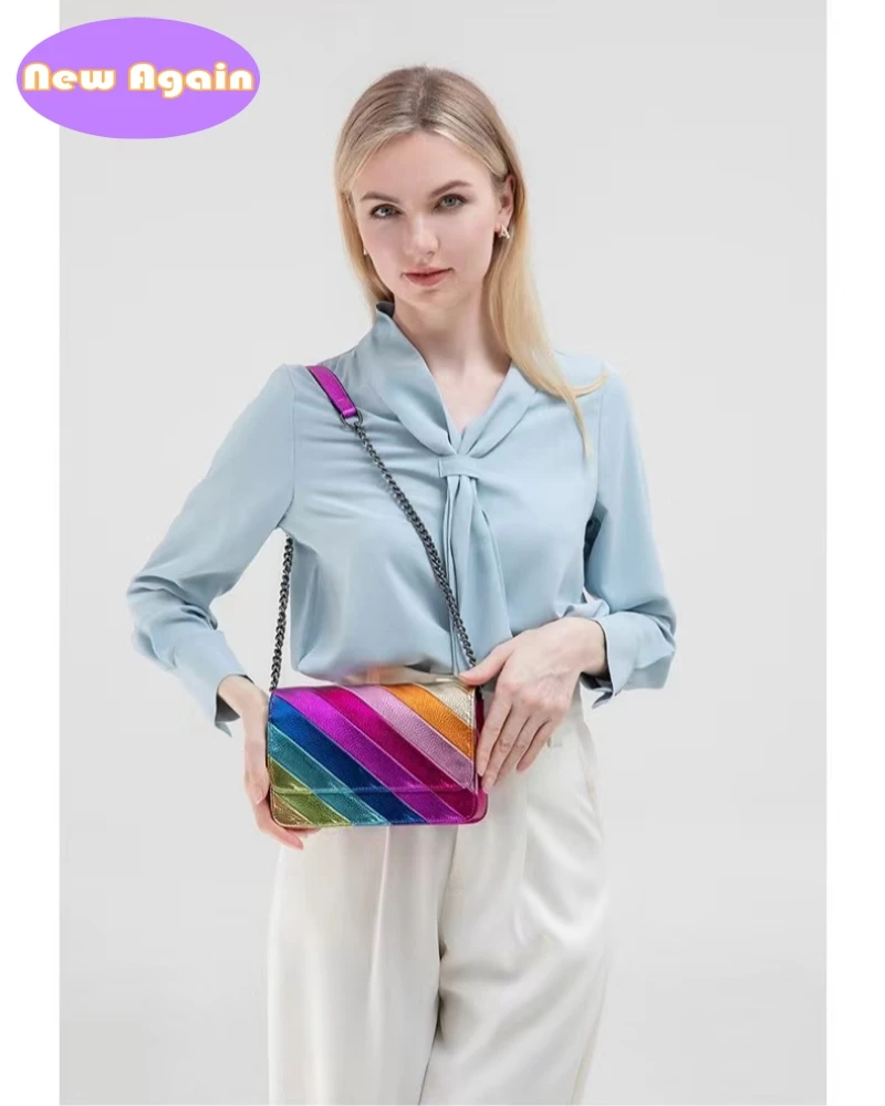 Girls New Trend Color splicing rainbow crossbody bag Ladies shoulder bags Woman's small square bag Teenagers Chain Bags NA289