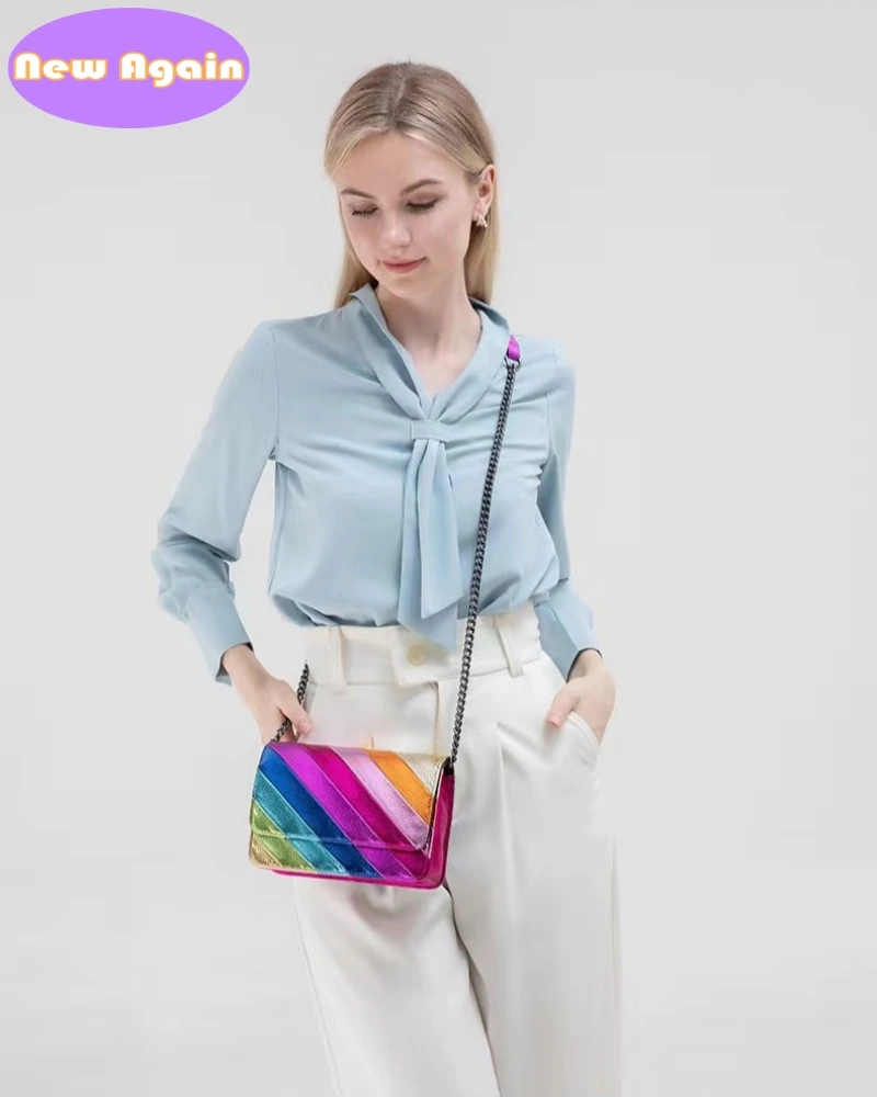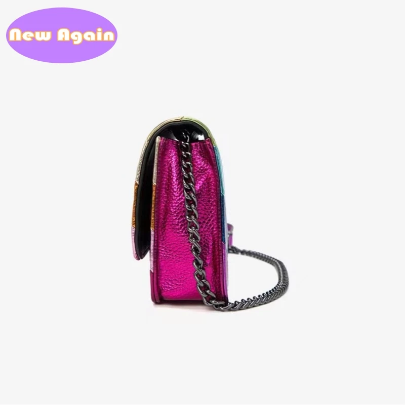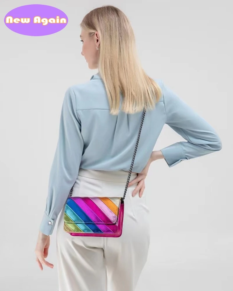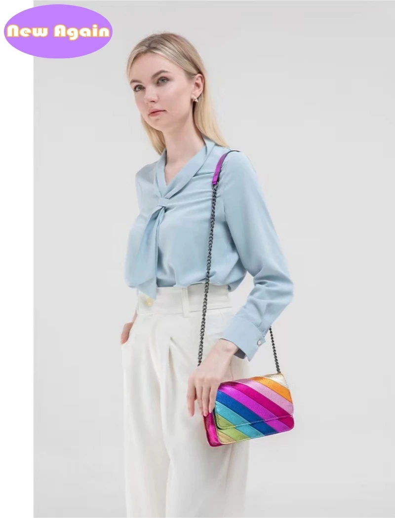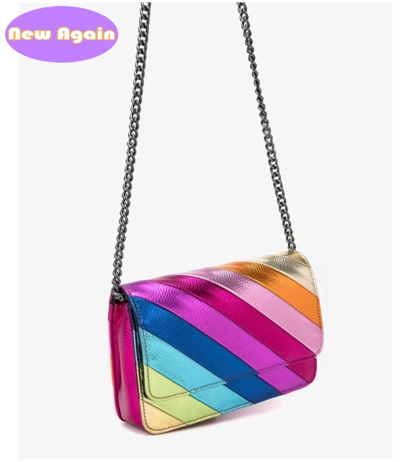 Girls New Trend Color splicing rainbow crossbody bag Ladies shoulder bags Woman's small square bag Teenagers Chain Bags NA289