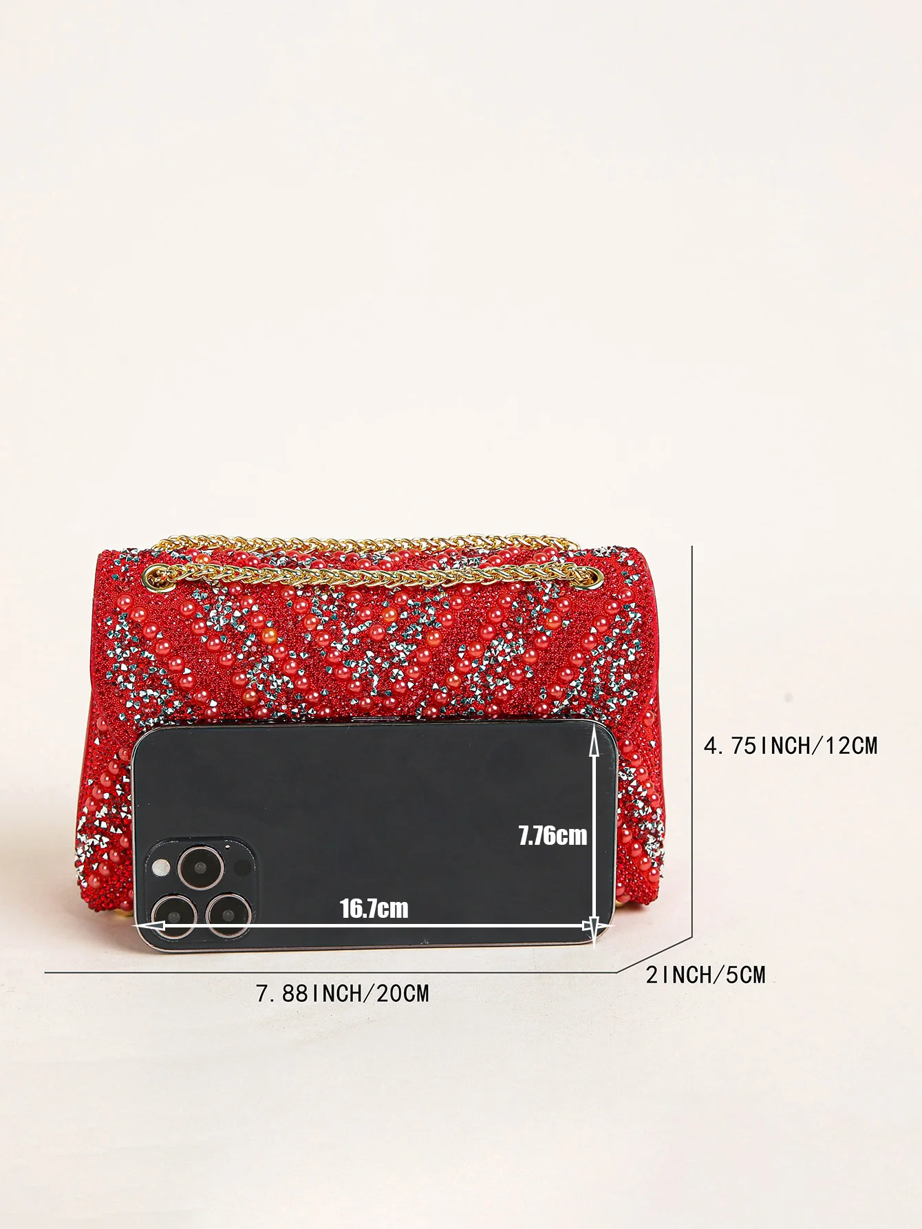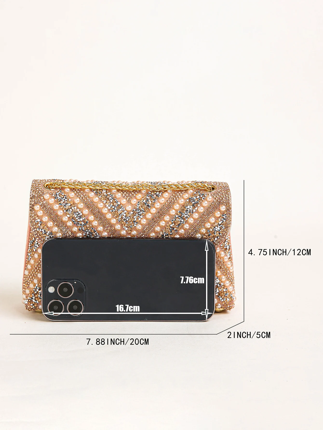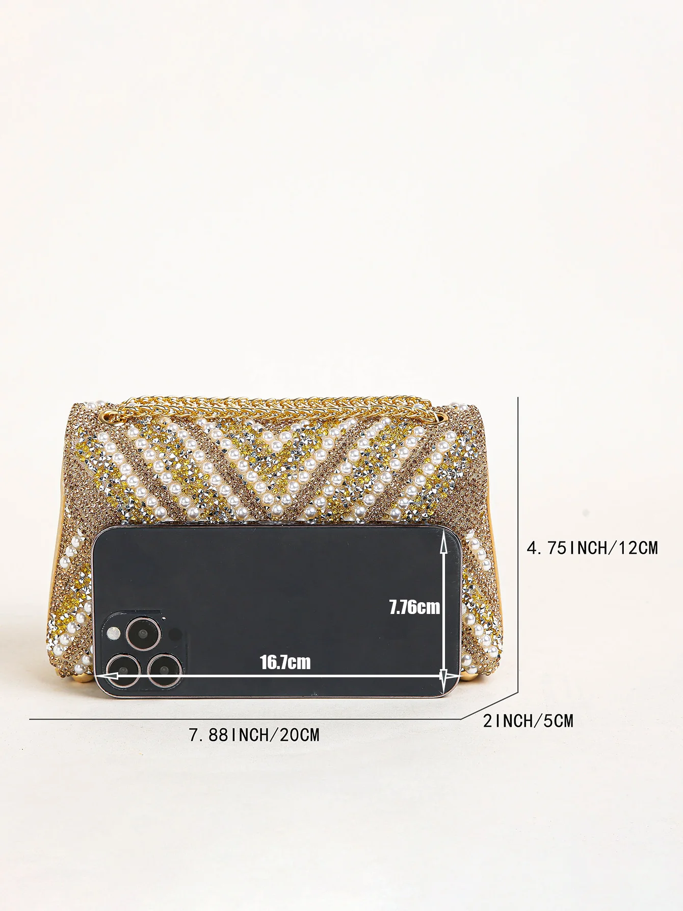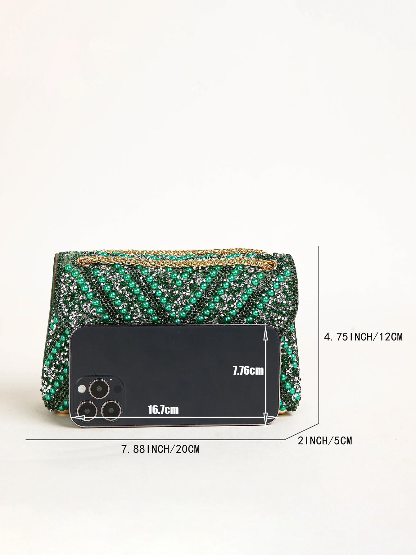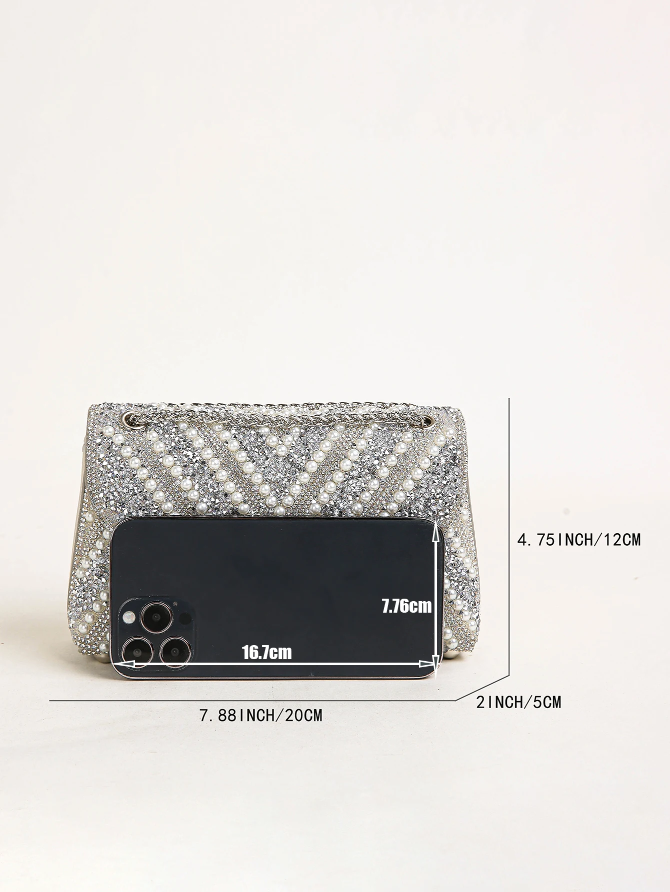 Glitter Bling,Shiny Glamorous,Elegant,Exquisite Big Rhinestone Chain Decor Shoulder Evening Bag,Clutch Bag For Party Girl