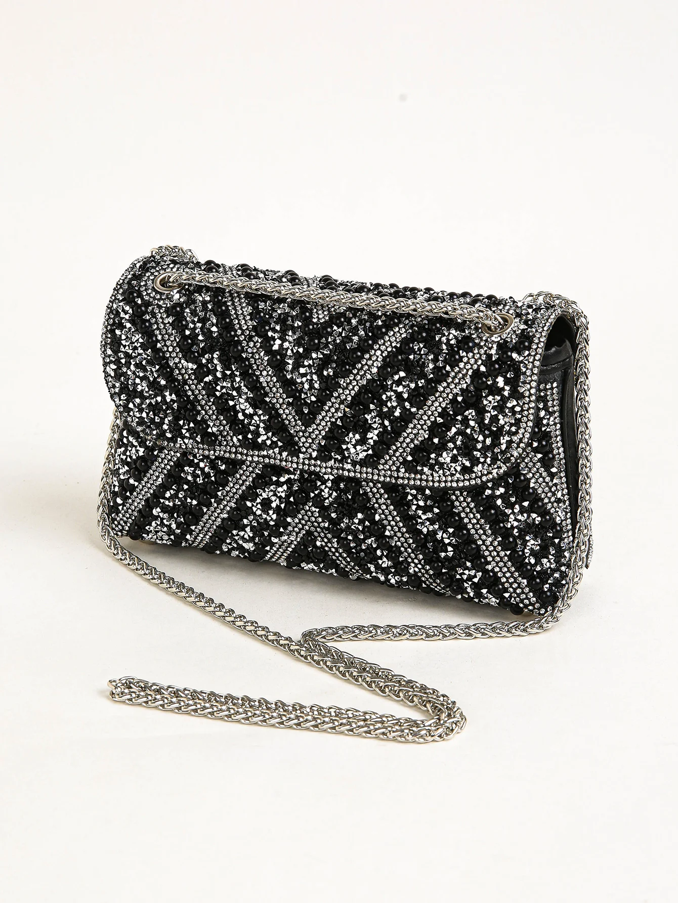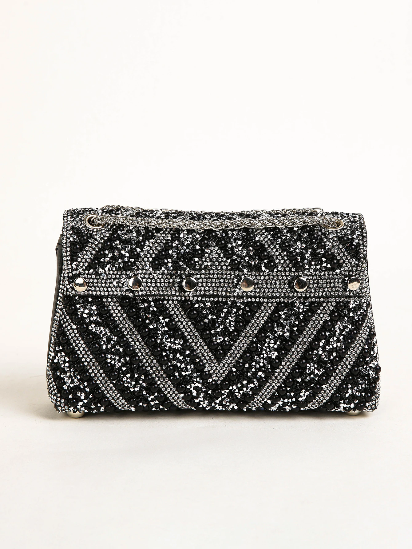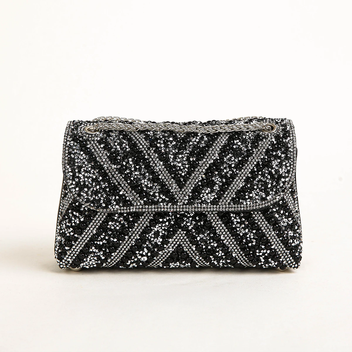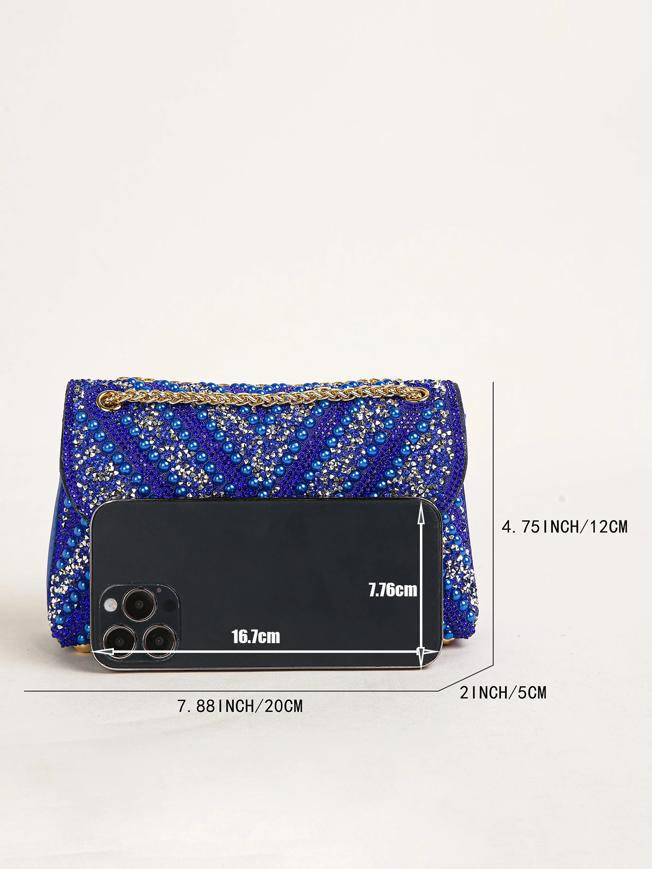 Glitter Bling,Shiny Glamorous,Elegant,Exquisite Big Rhinestone Chain Decor Shoulder Evening Bag,Clutch Bag For Party Girl
