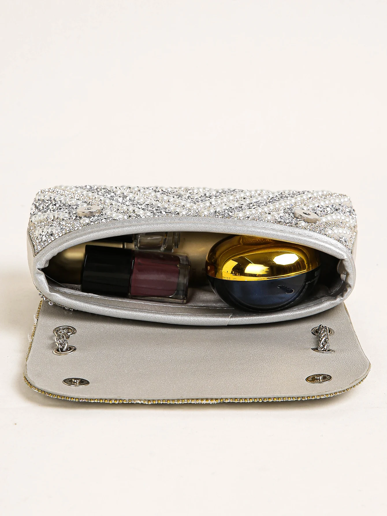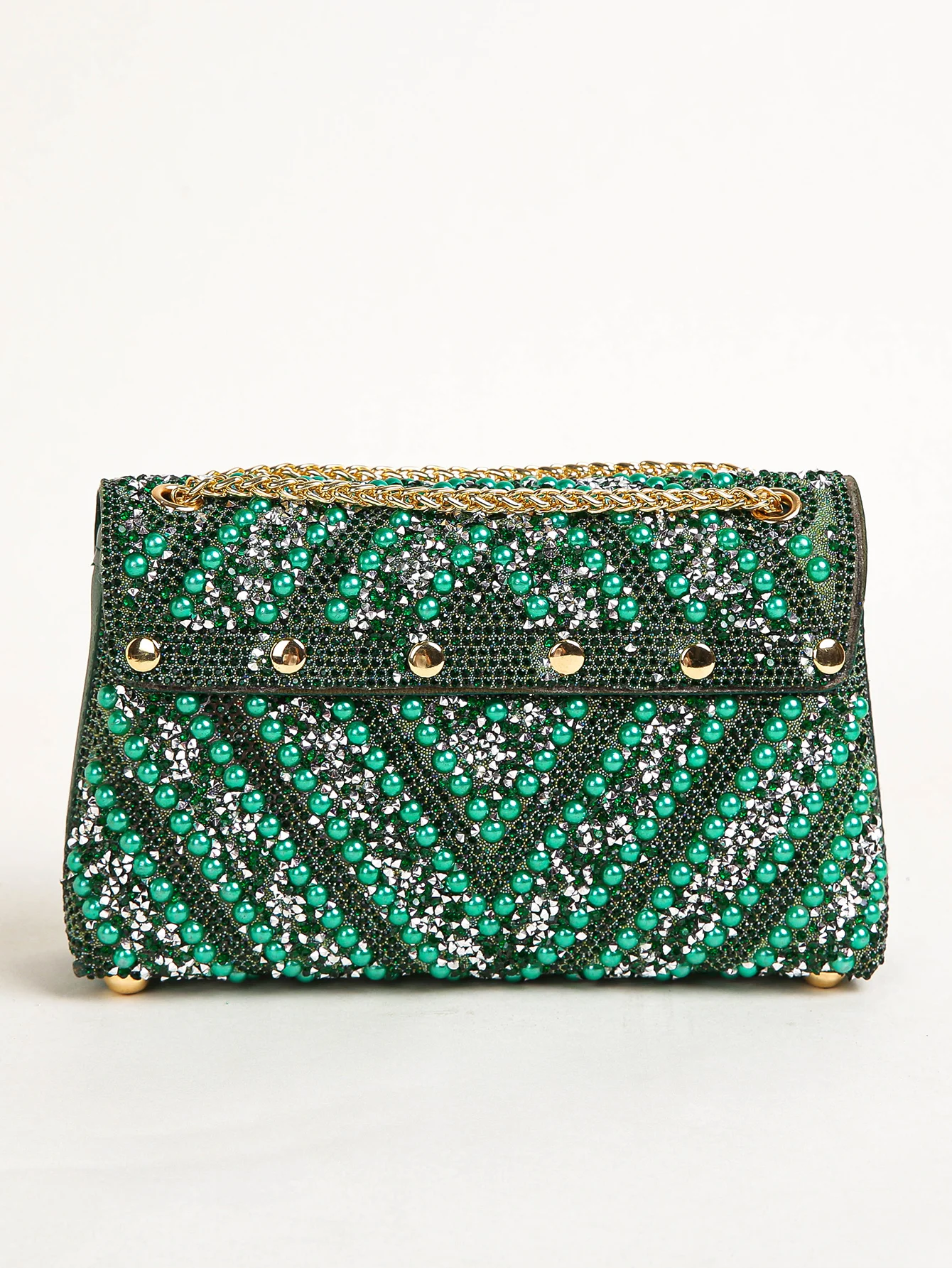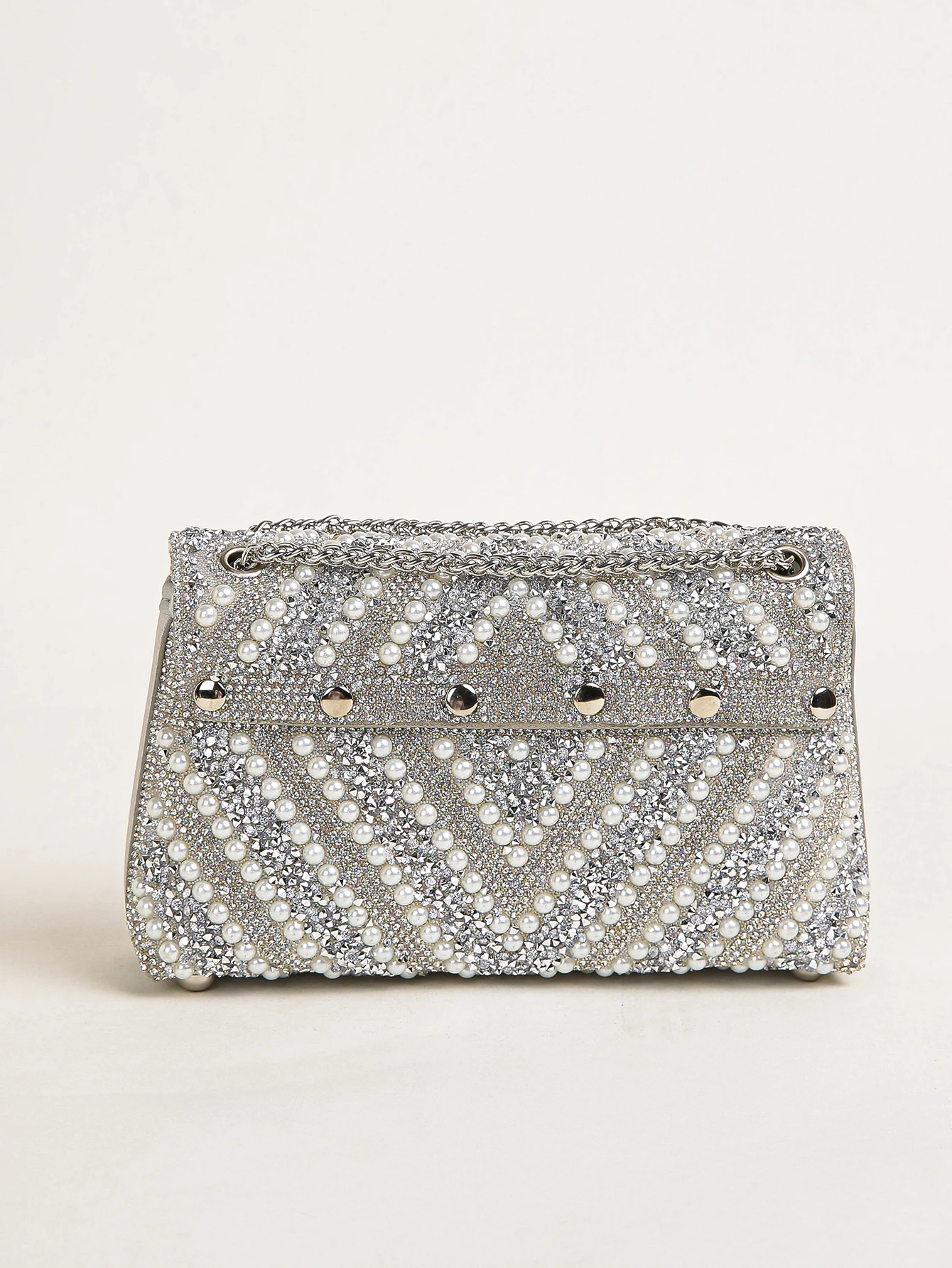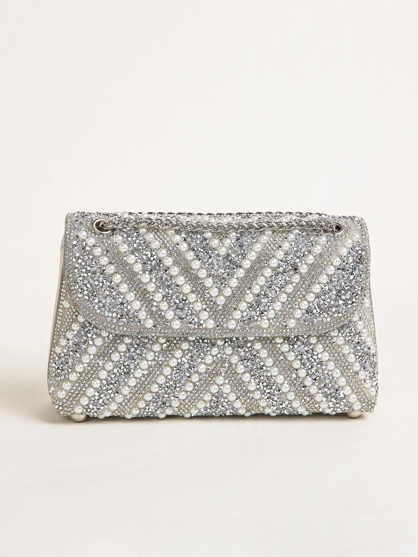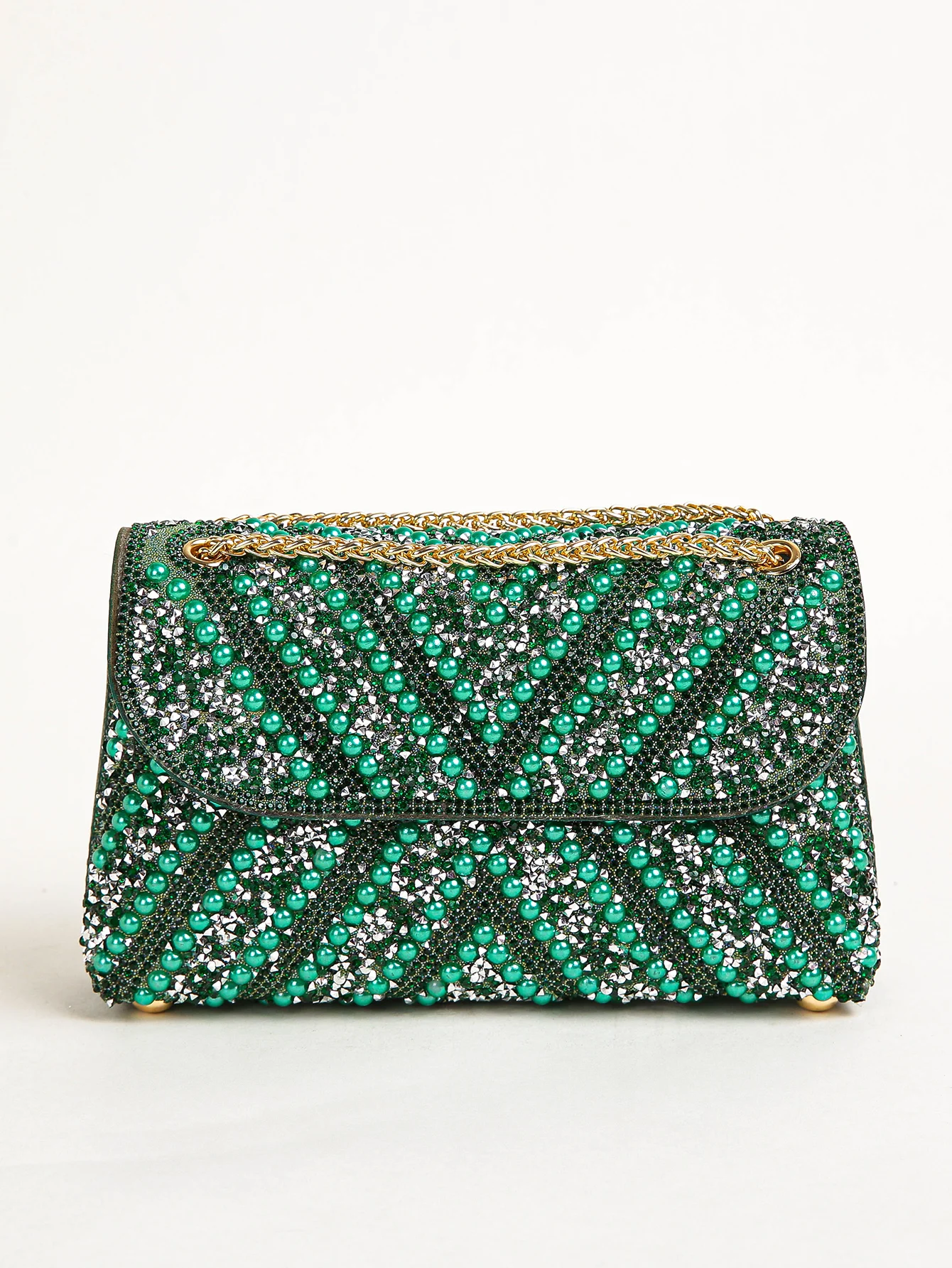 Glitter Bling,Shiny Glamorous,Elegant,Exquisite Big Rhinestone Chain Decor Shoulder Evening Bag,Clutch Bag For Party Girl