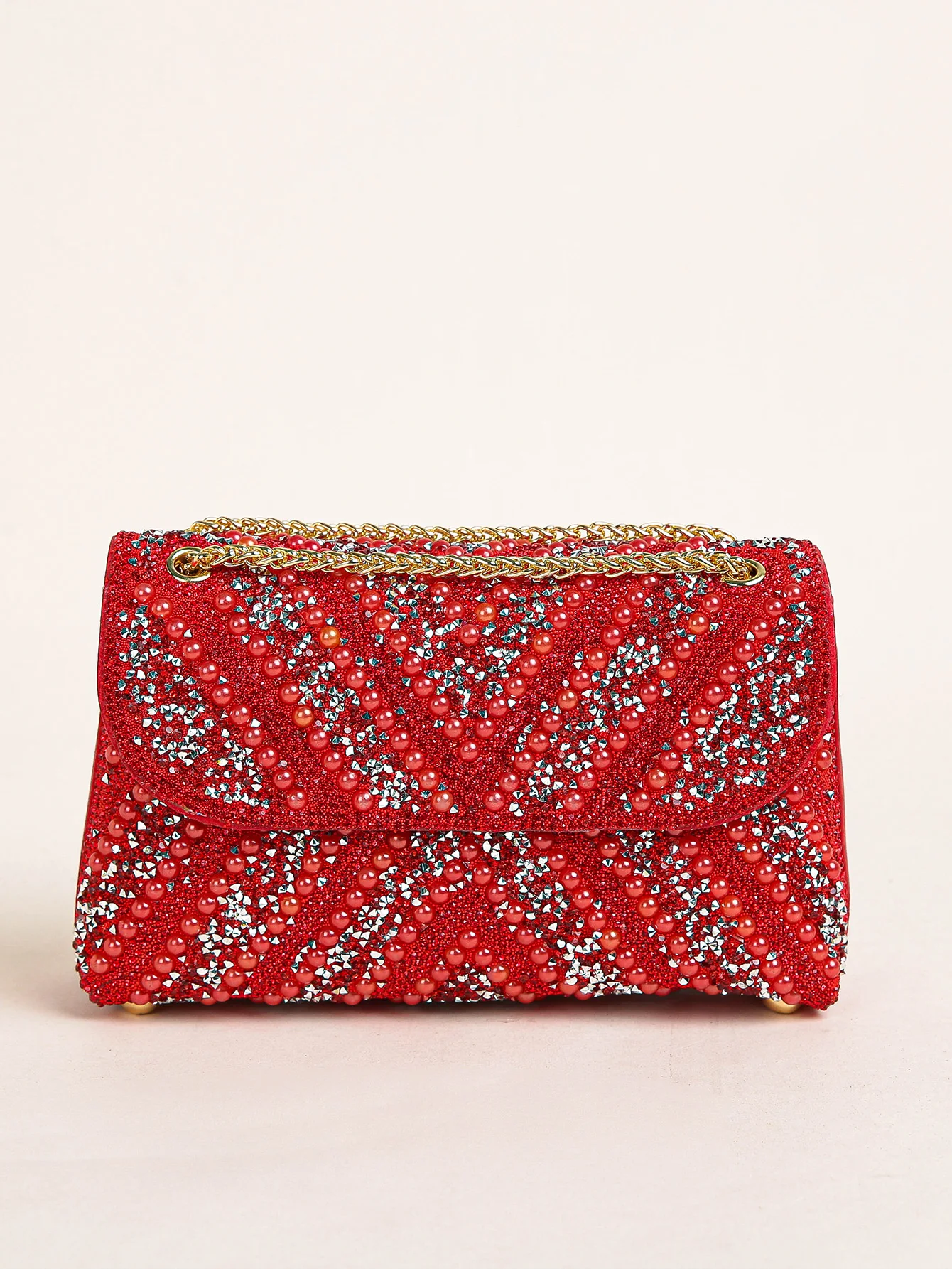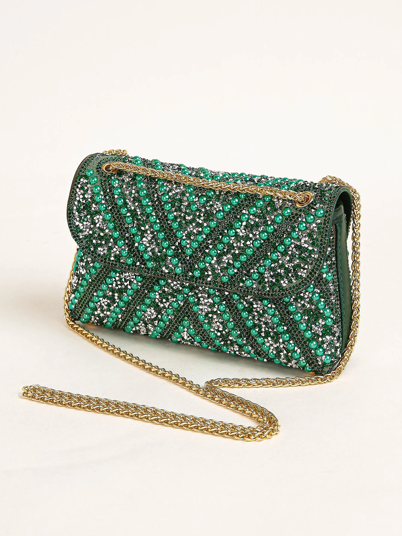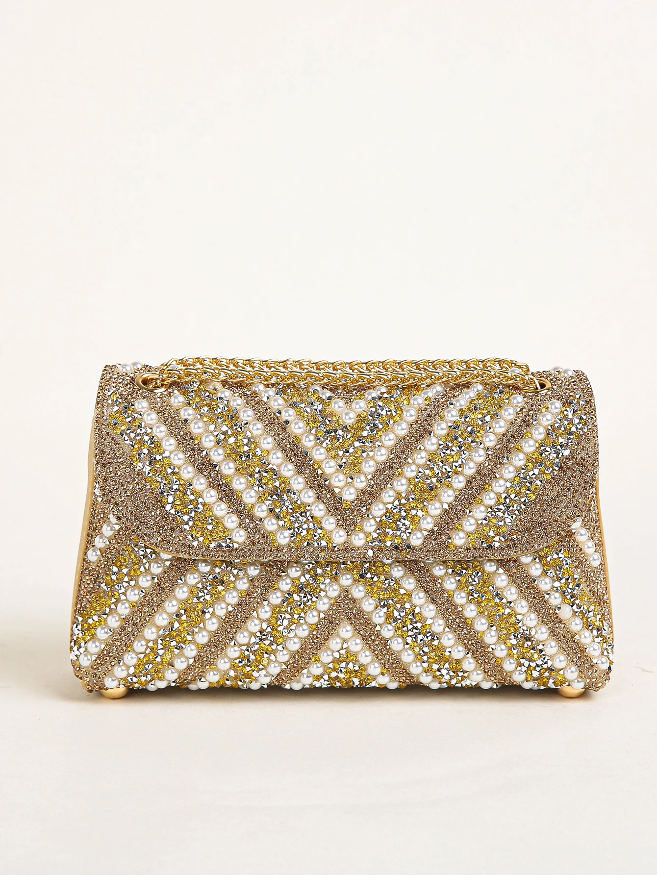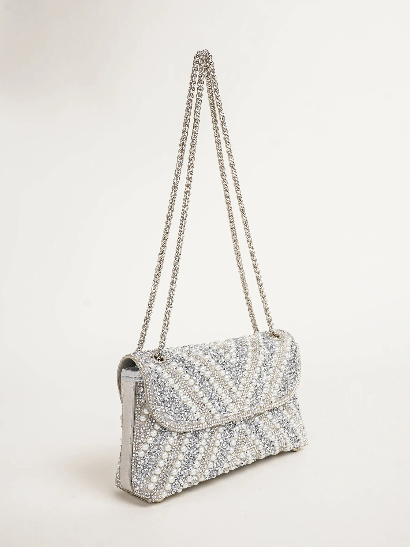 Glitter Bling,Shiny Glamorous,Elegant,Exquisite Big Rhinestone Chain Decor Shoulder Evening Bag,Clutch Bag For Party Girl