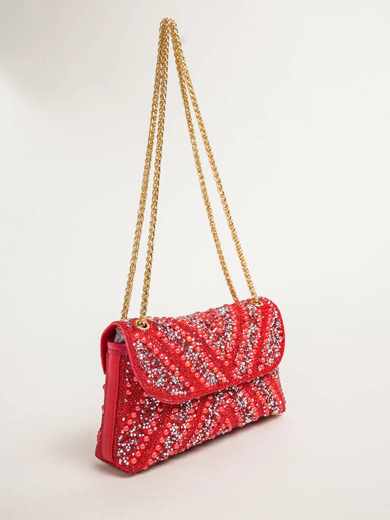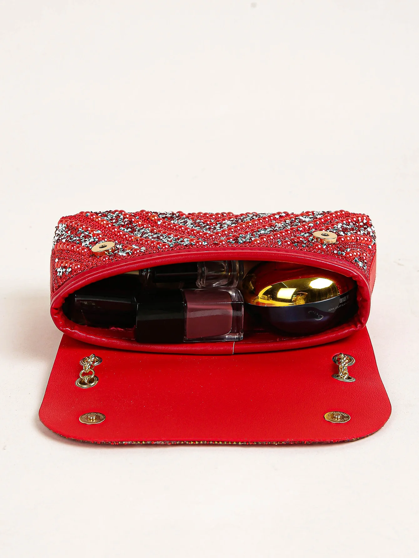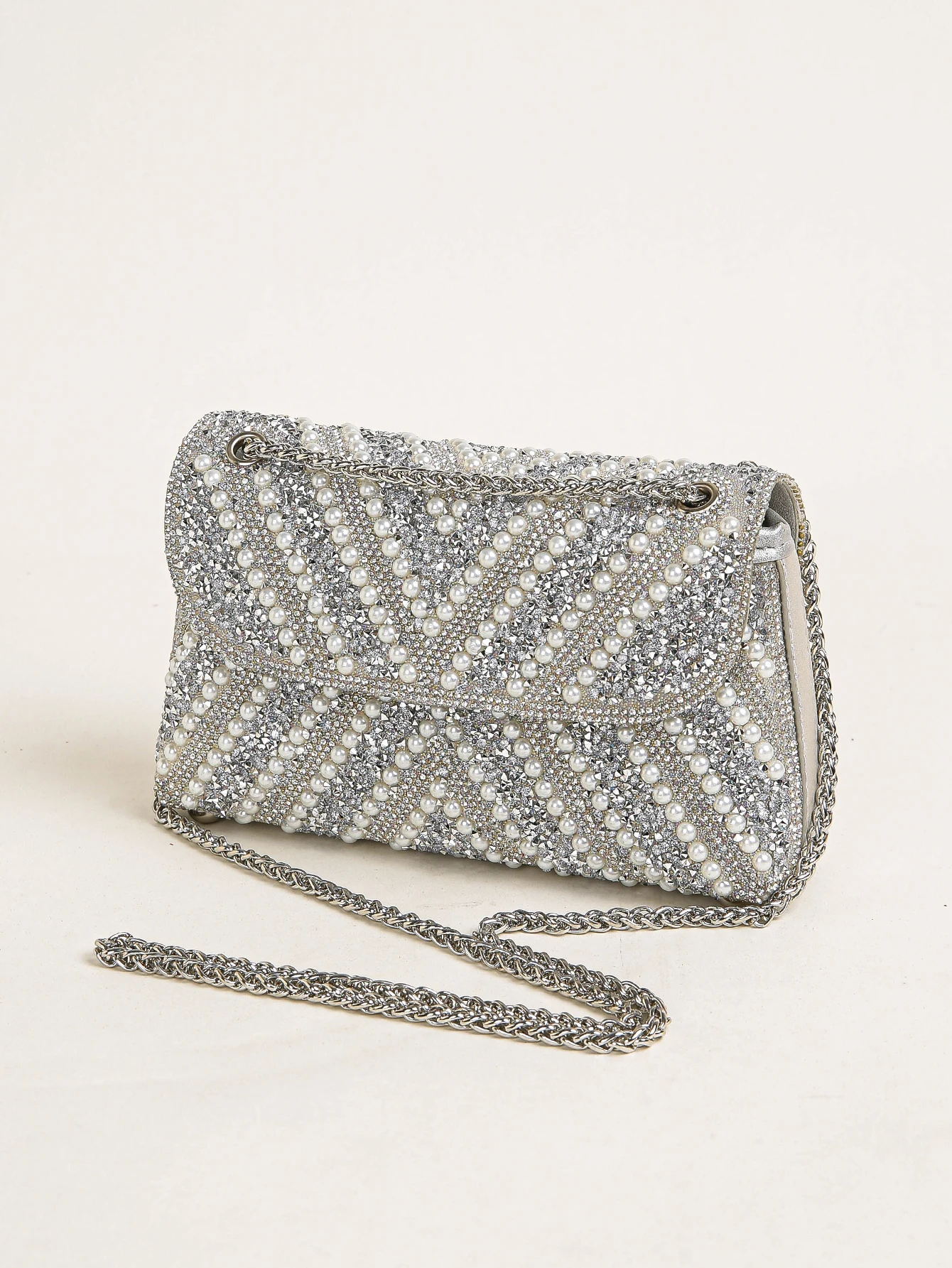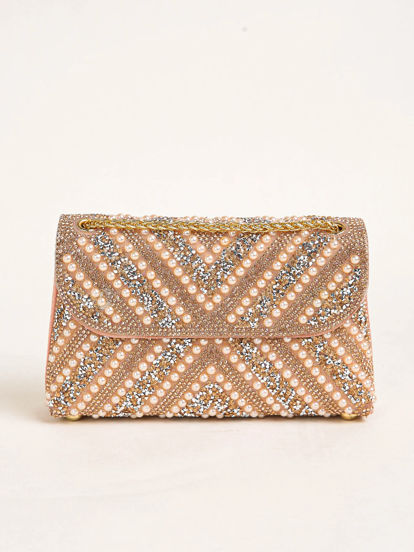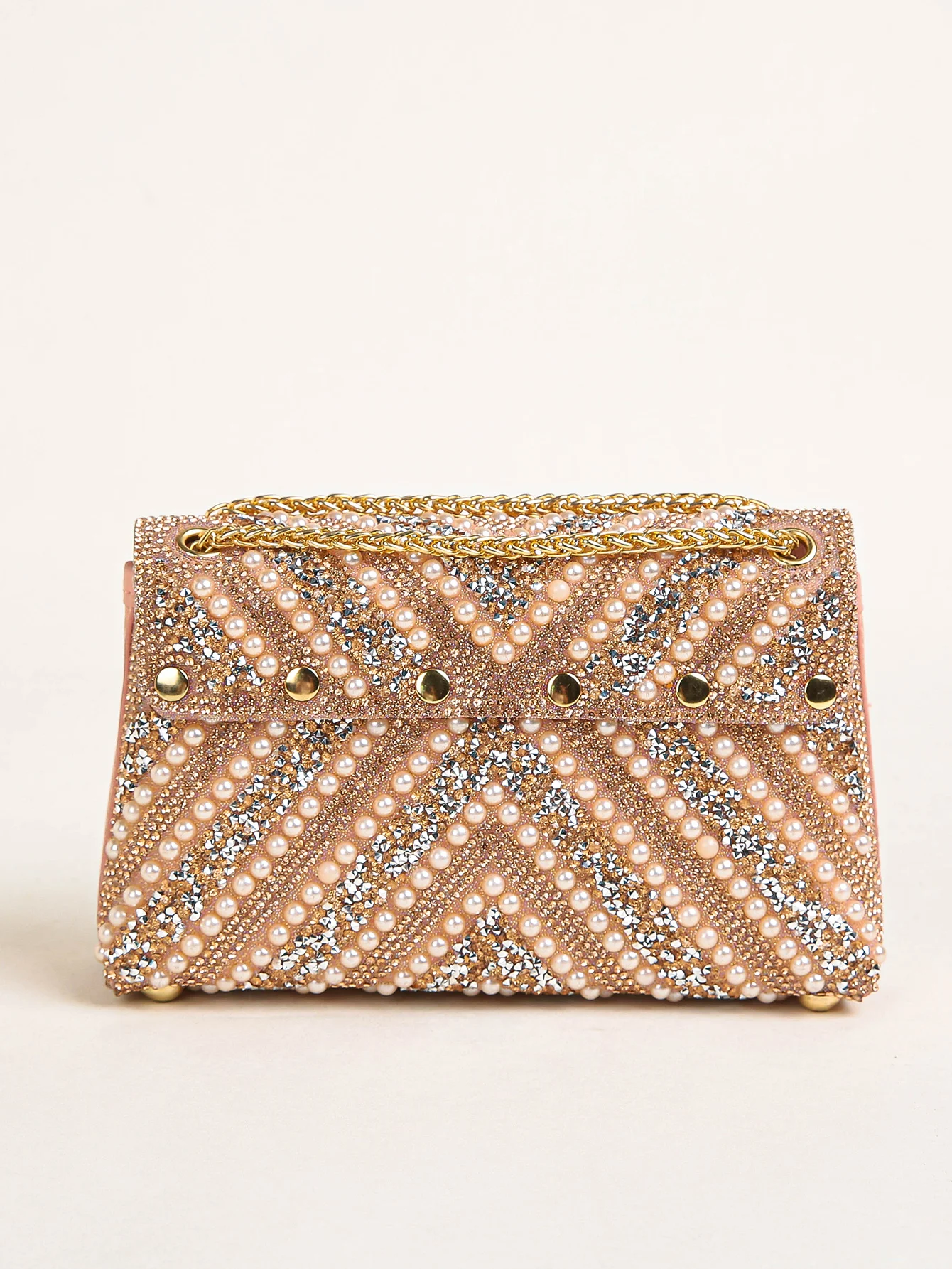 Glitter Bling,Shiny Glamorous,Elegant,Exquisite Big Rhinestone Chain Decor Shoulder Evening Bag,Clutch Bag For Party Girl