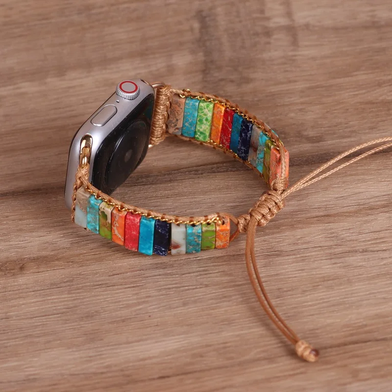 Handmade Boho Natural Stone Watch Strap 7 Chakra Energy Reiki Beaded Band Smartwatch Bracelet for Apple Watch