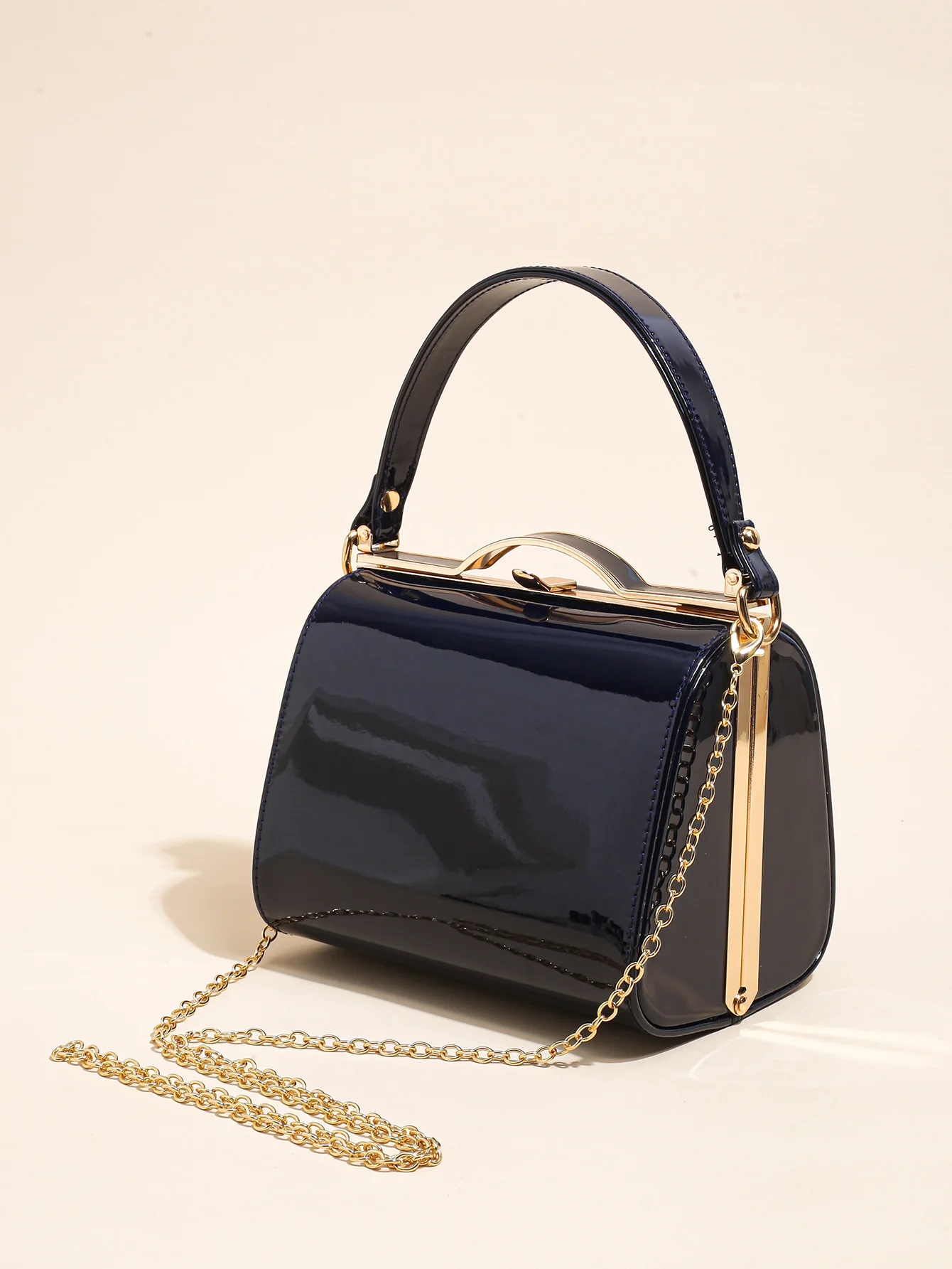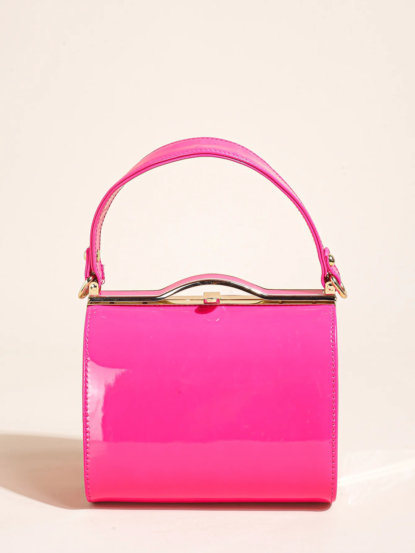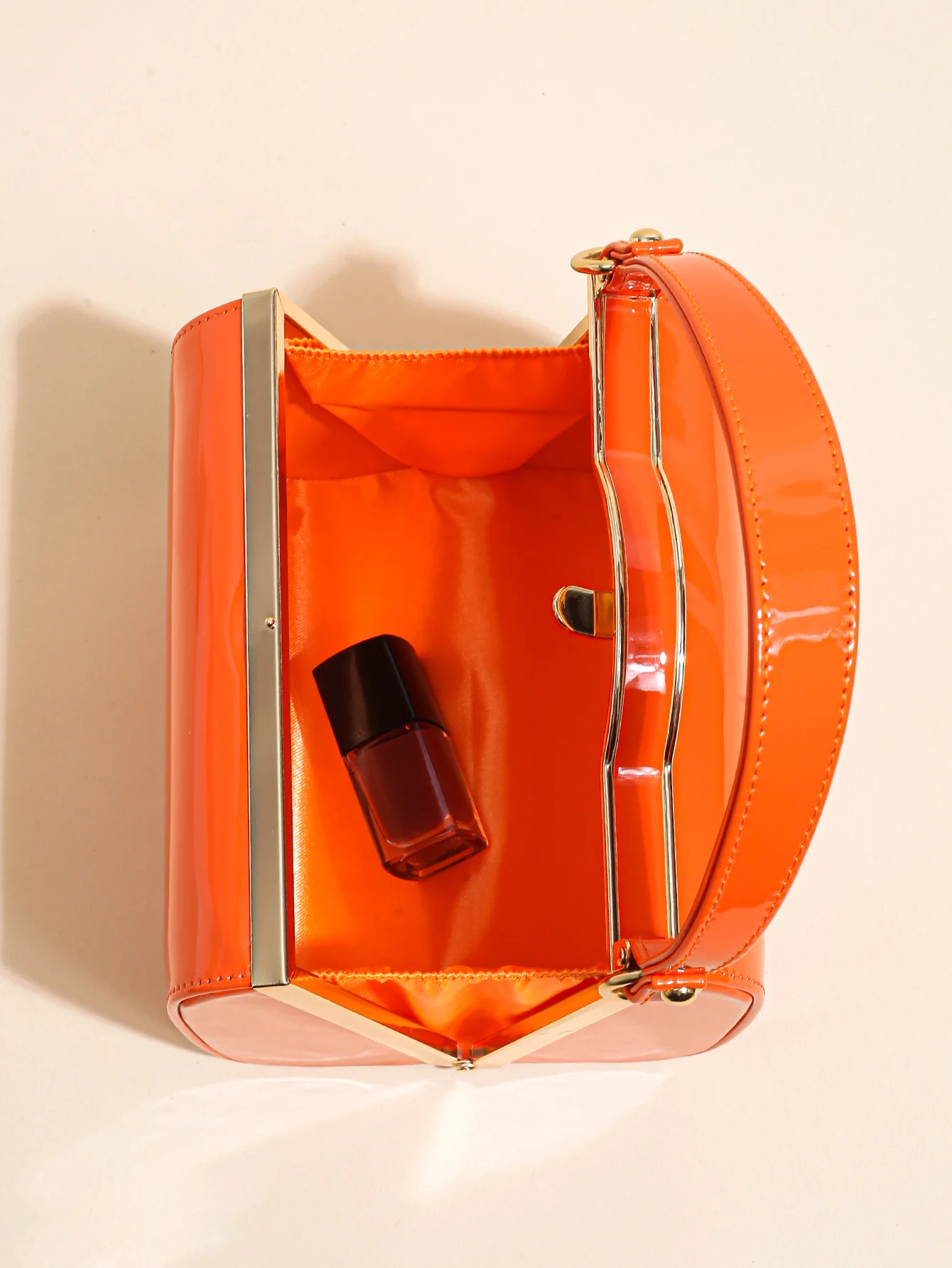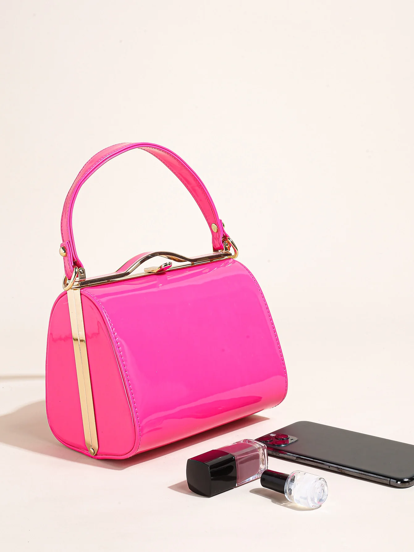 Highlight Cute Simple Patent Leather Pearlescent Leather Handheld Hard Shell Clip Dinner Bag