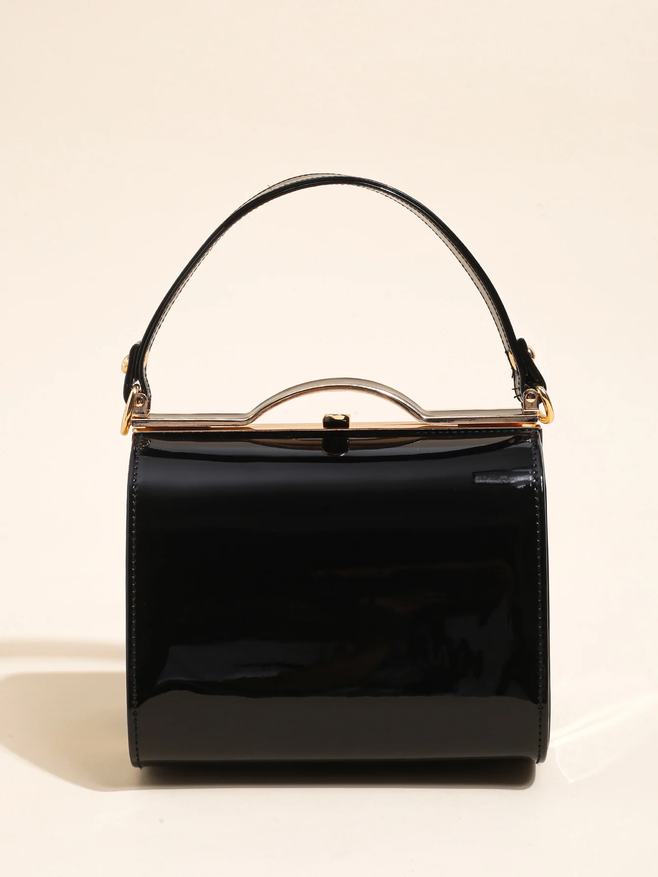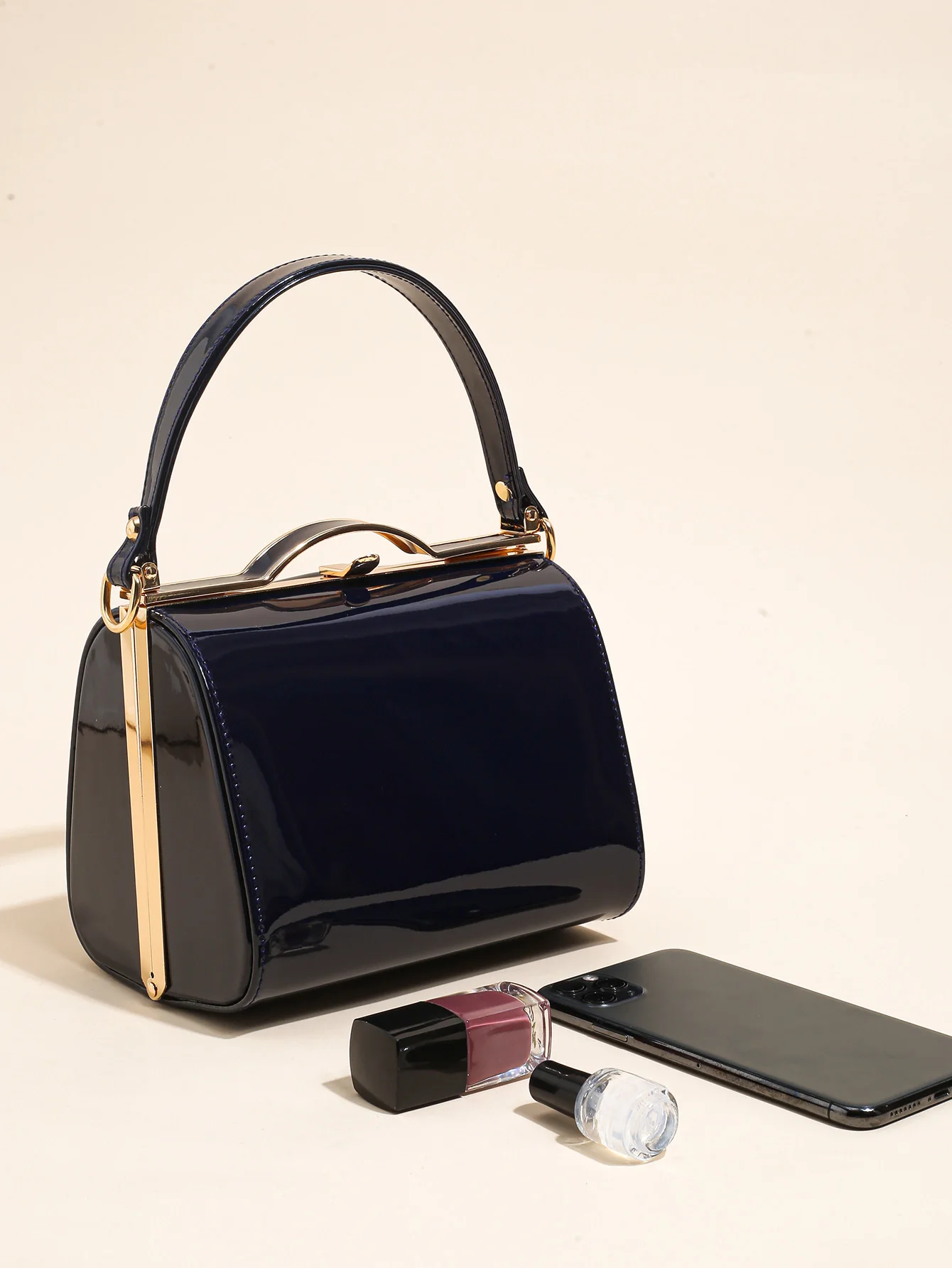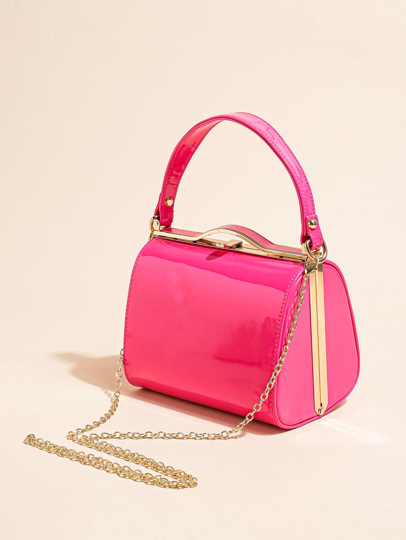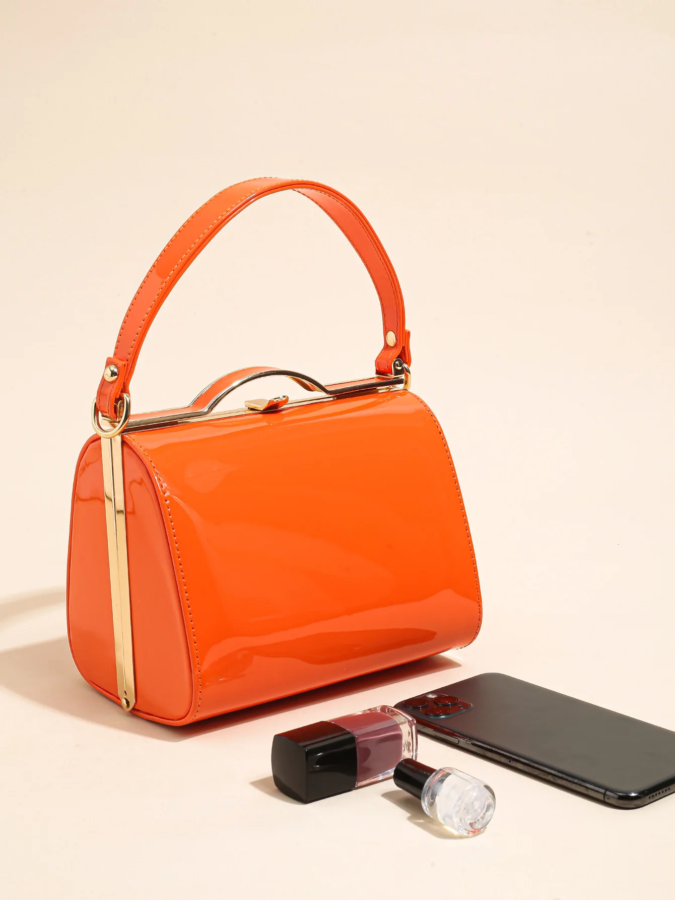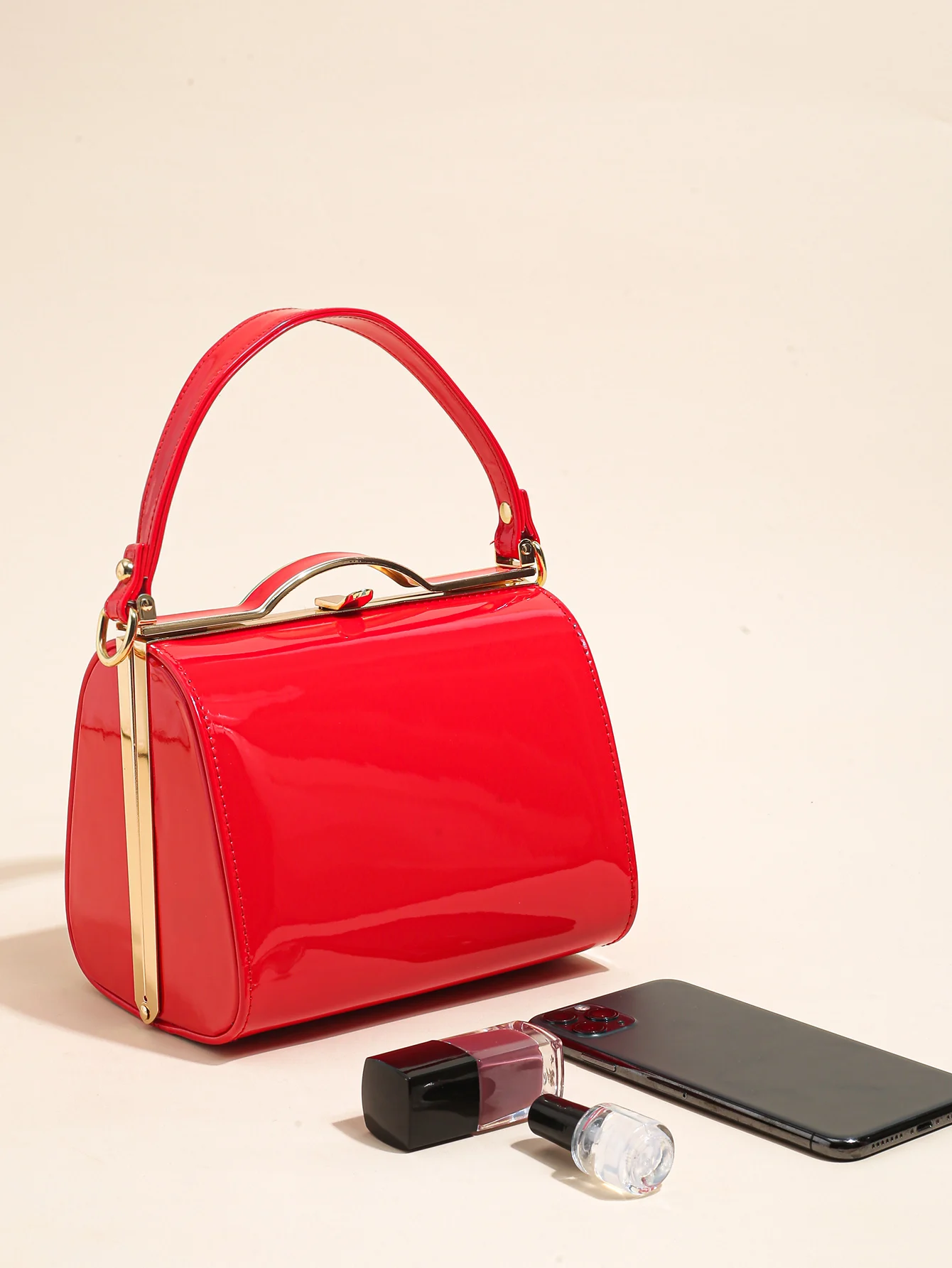 Highlight Cute Simple Patent Leather Pearlescent Leather Handheld Hard Shell Clip Dinner Bag