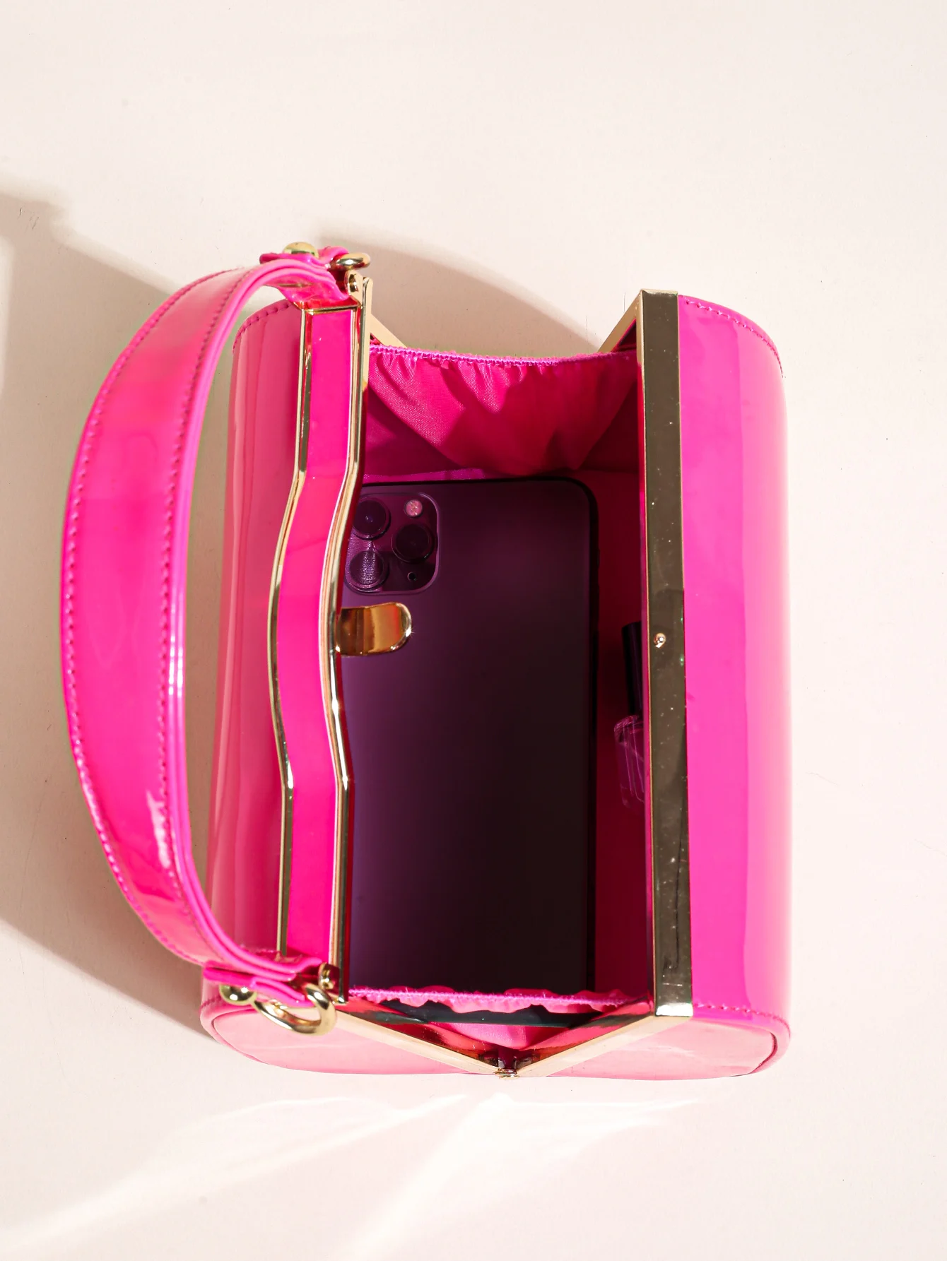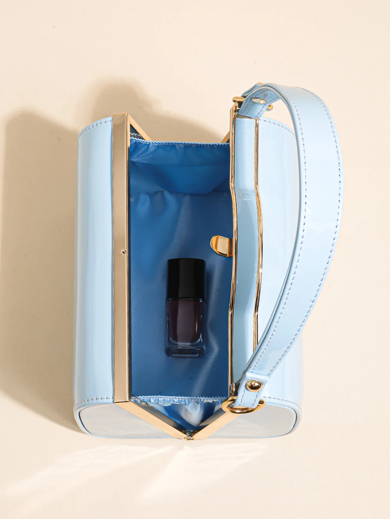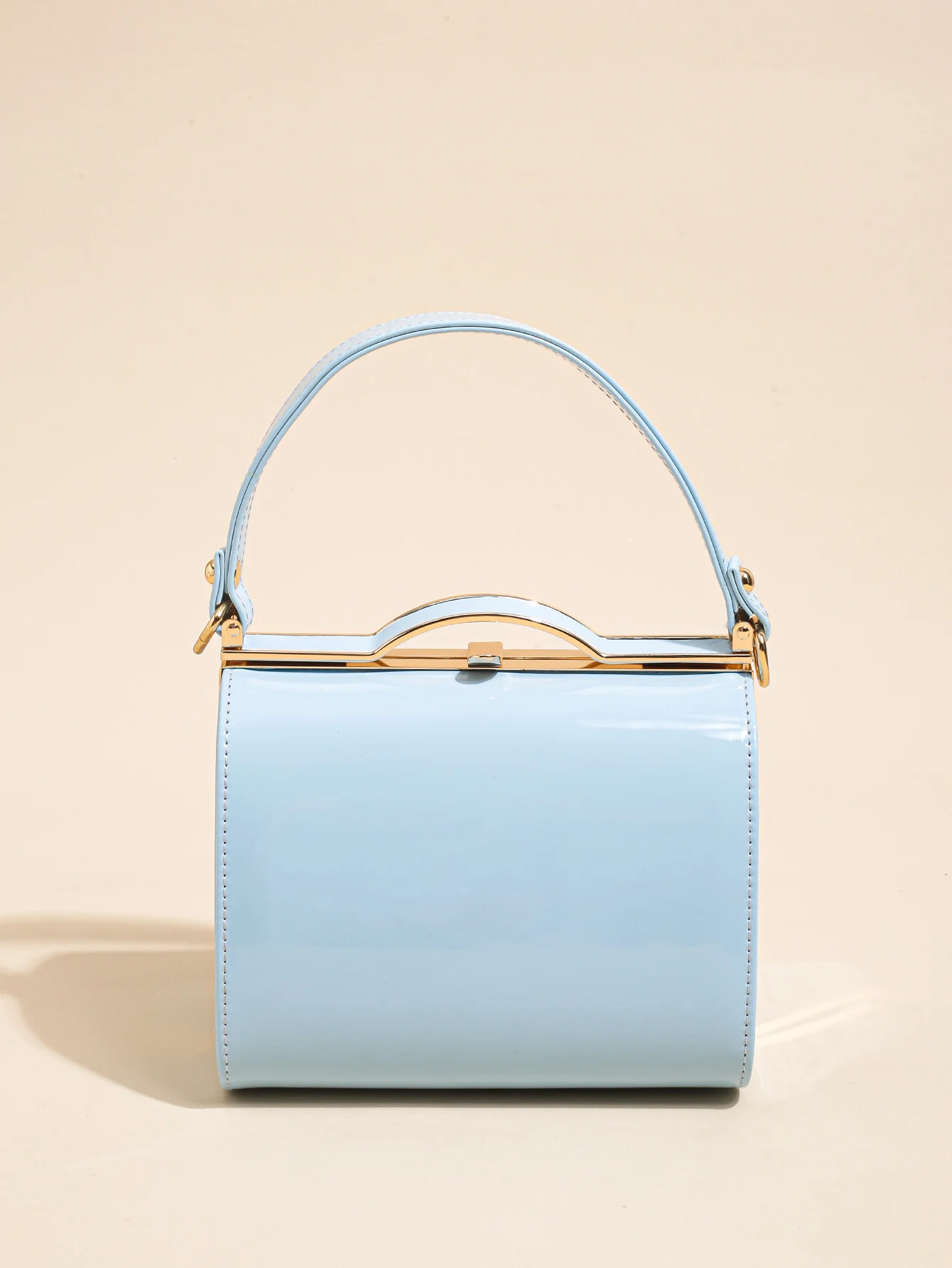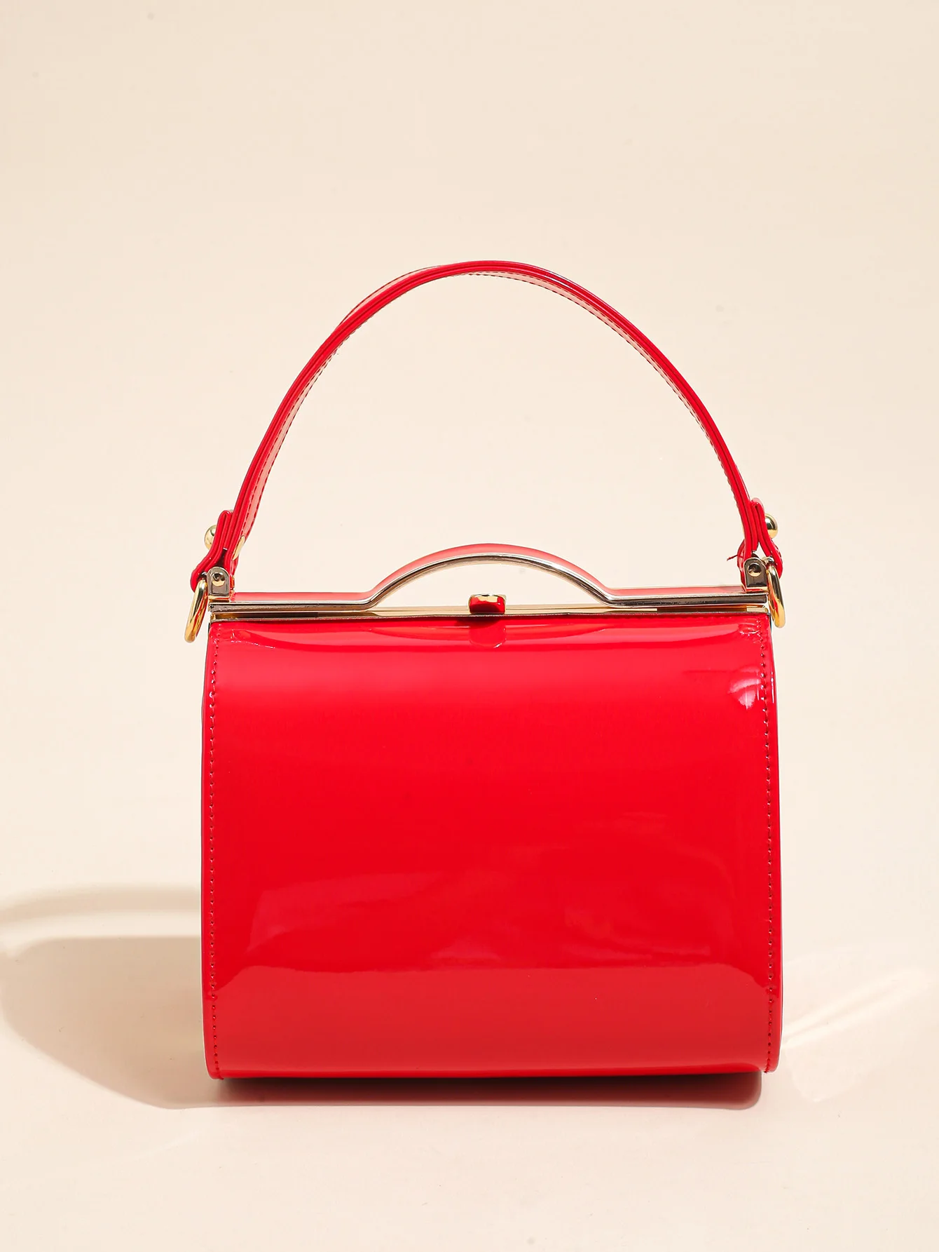 Highlight Cute Simple Patent Leather Pearlescent Leather Handheld Hard Shell Clip Dinner Bag