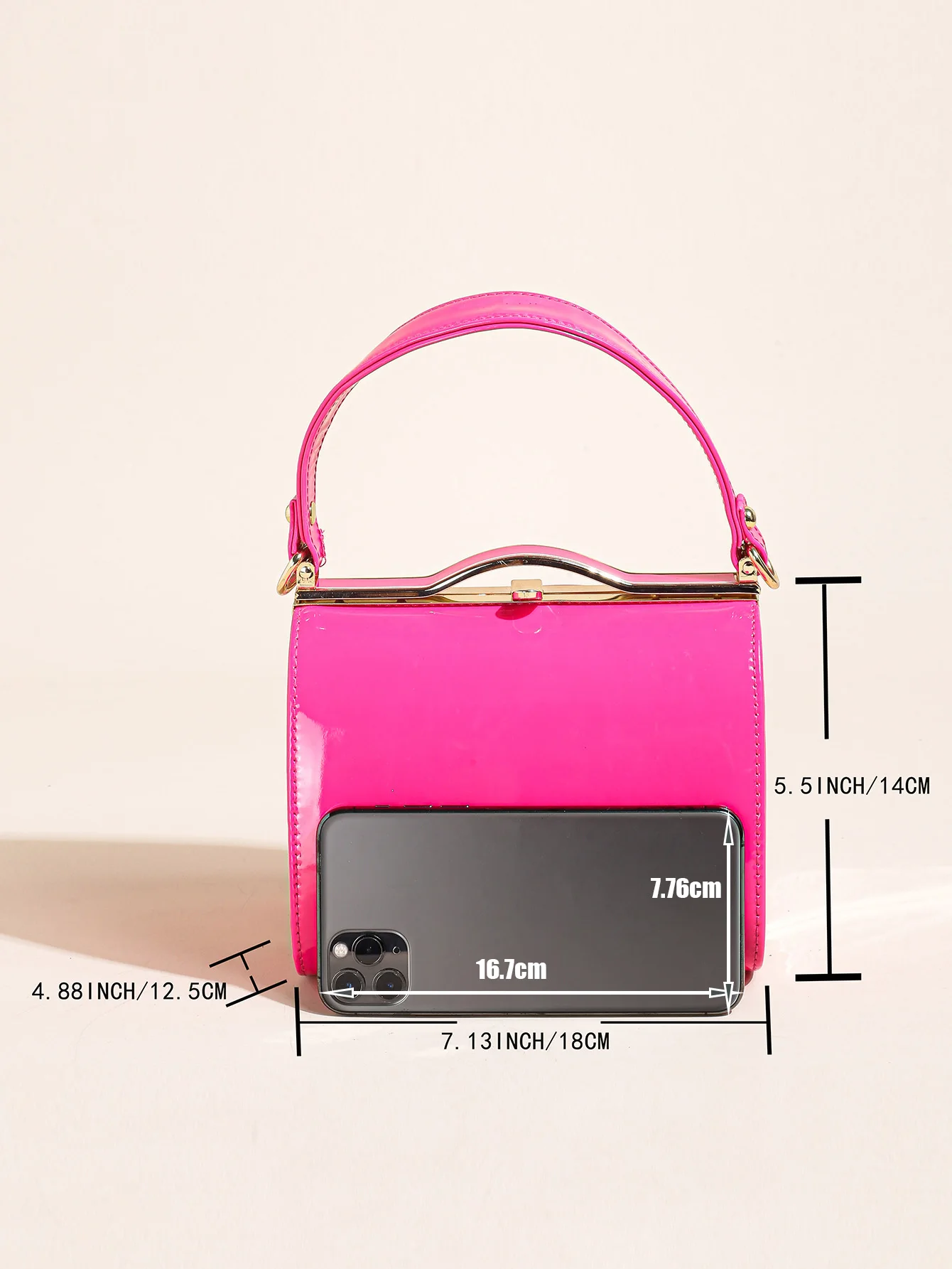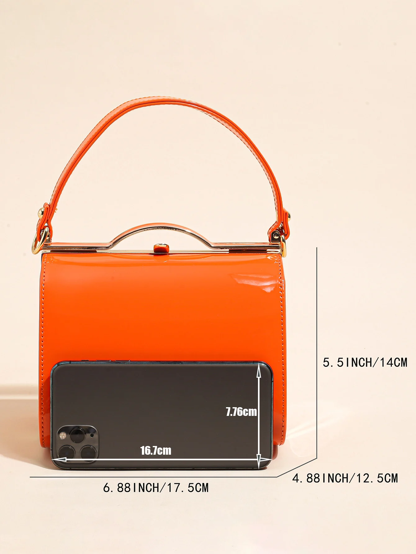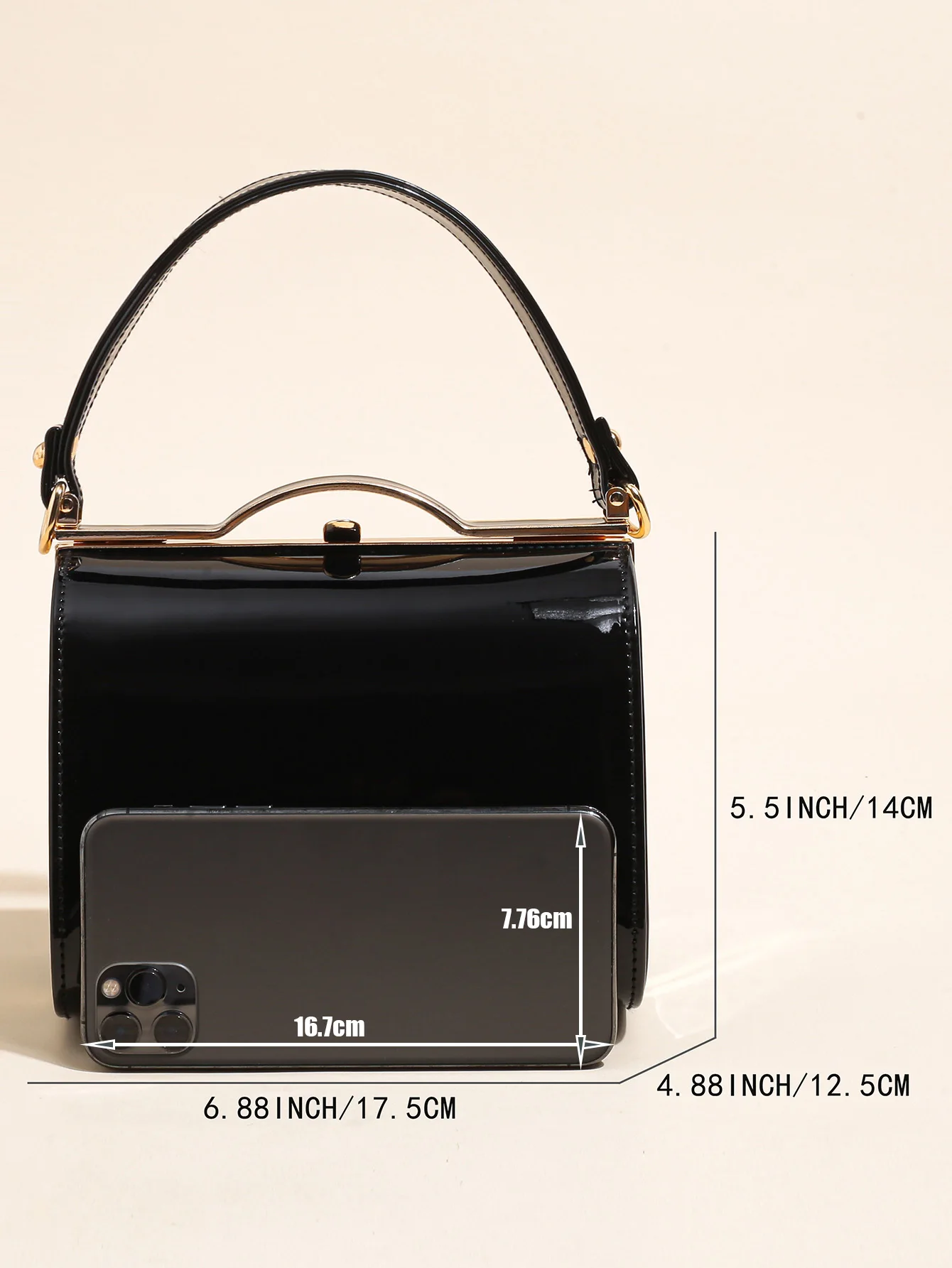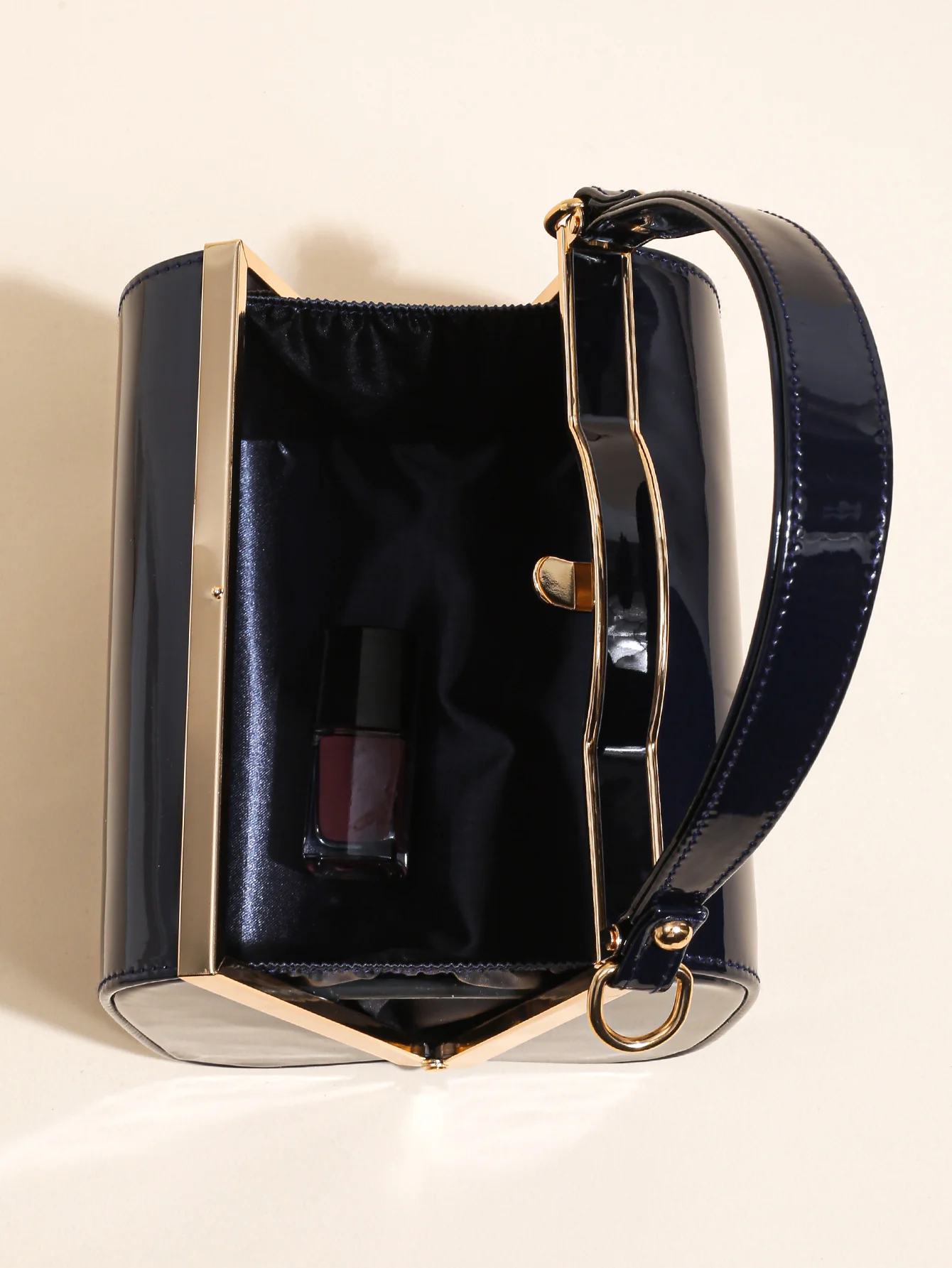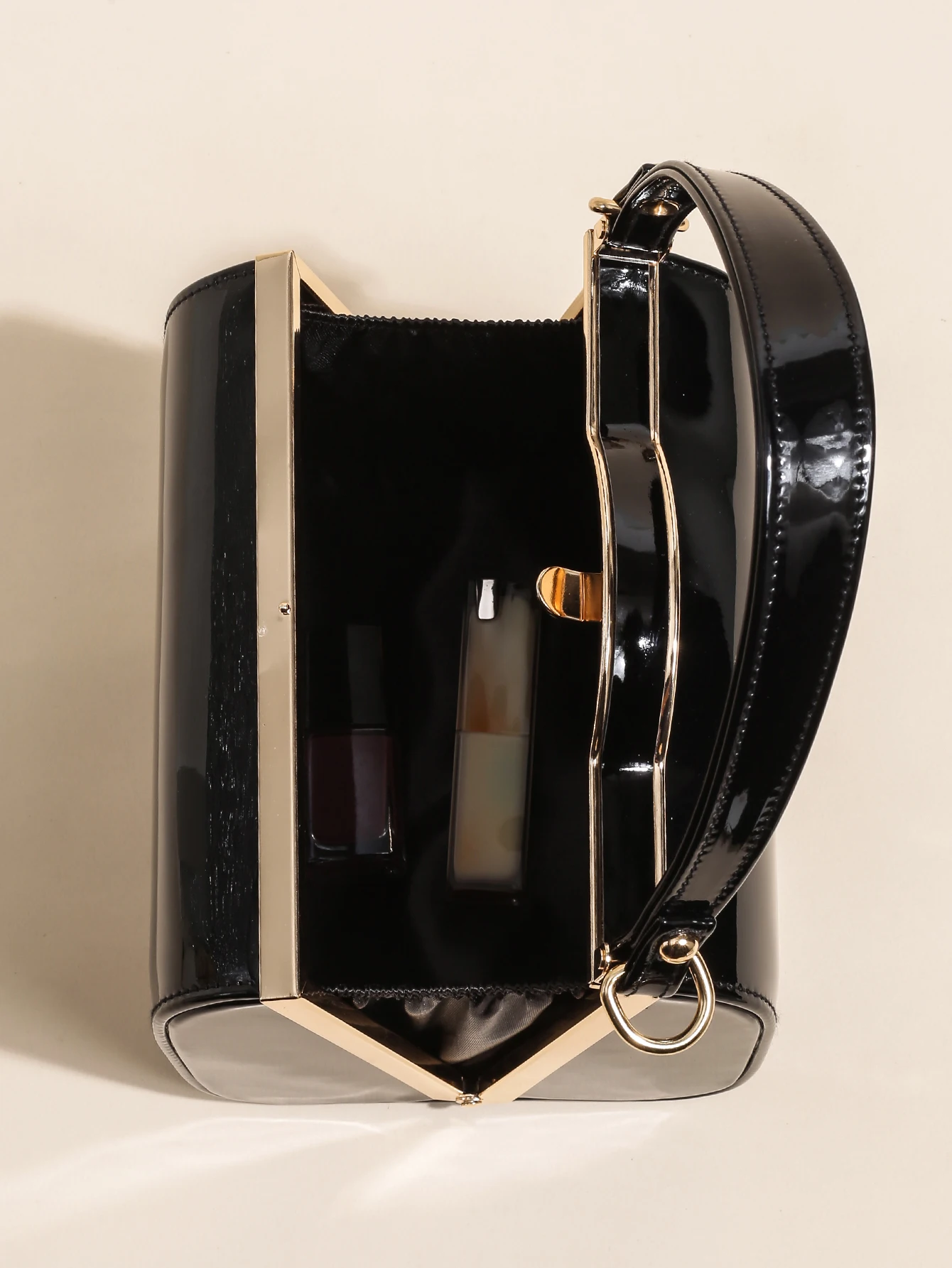 Highlight Cute Simple Patent Leather Pearlescent Leather Handheld Hard Shell Clip Dinner Bag