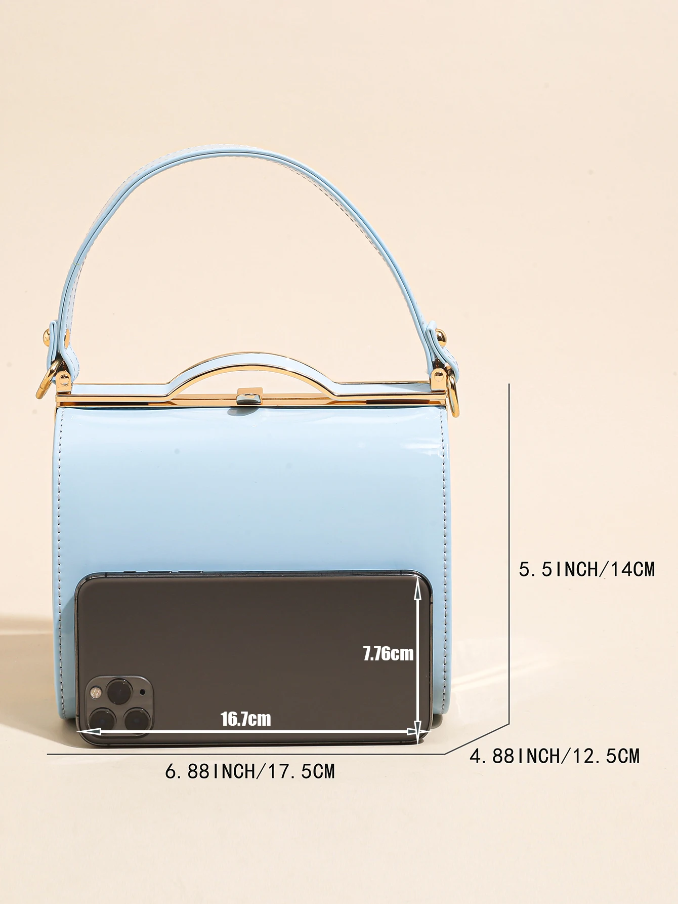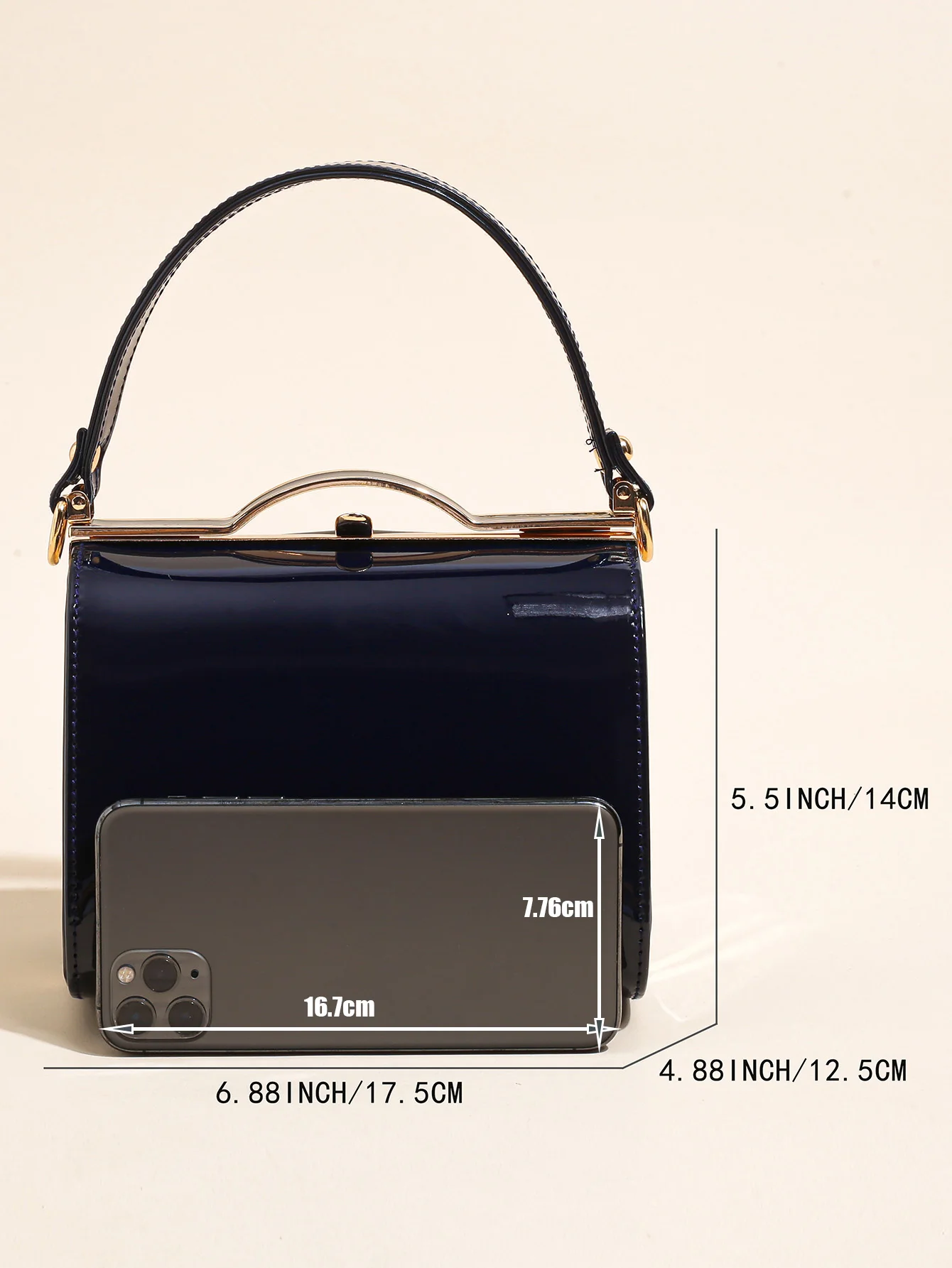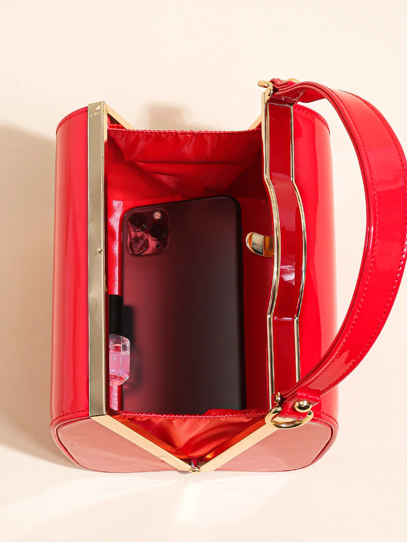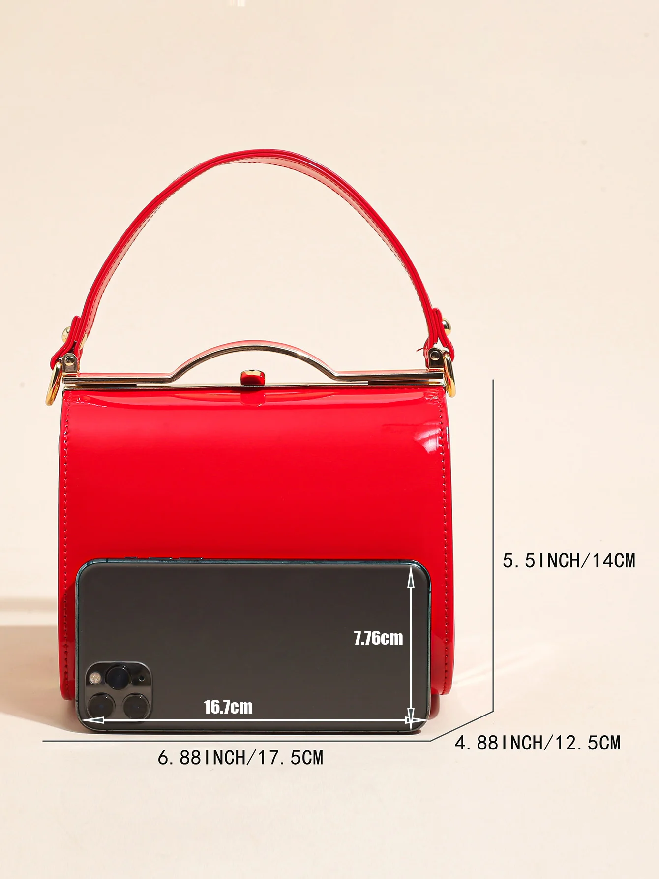 Highlight Cute Simple Patent Leather Pearlescent Leather Handheld Hard Shell Clip Dinner Bag