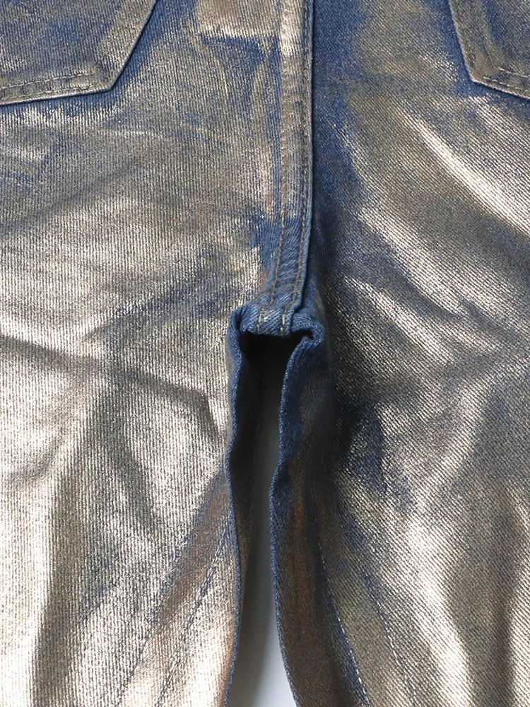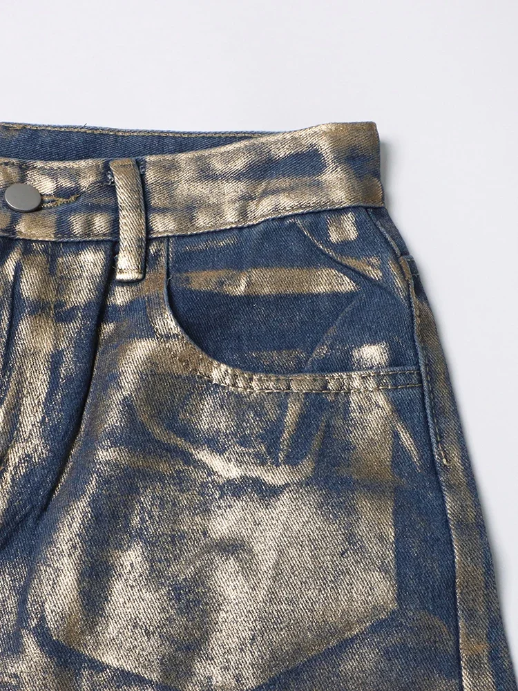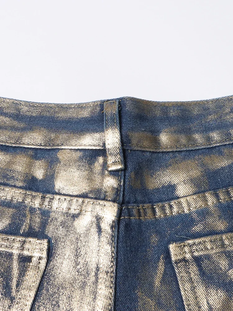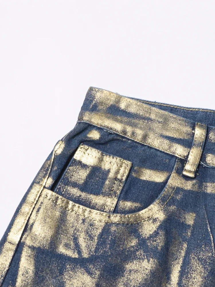 Hit Color Gradient Casual Denim Trousers For Women High Waist Spliced Button Streetwear Loose Straight Jeans Female Style