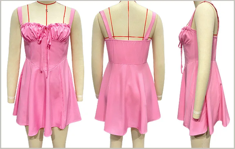 HMR-Summer Tube Top Lace-up Solid Color A Women's Mini Dress Suspender Skirt