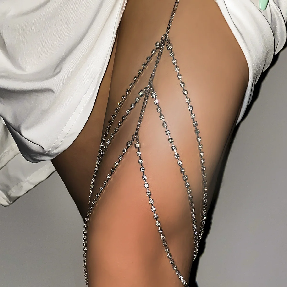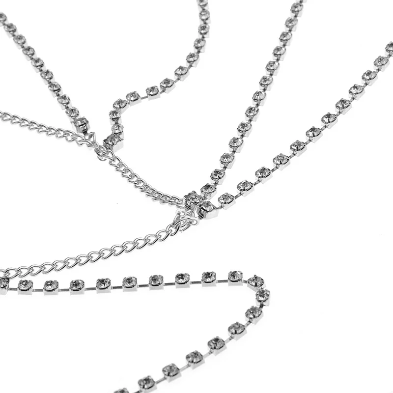 IngeSight.Z Sexy Rhinestones Leg Thigh Chain for Women Multilayer Shiny Crystal Silver Color Waist Body Chain Beach Jewelry