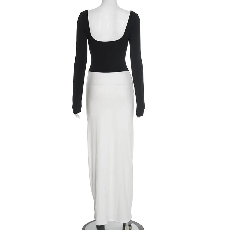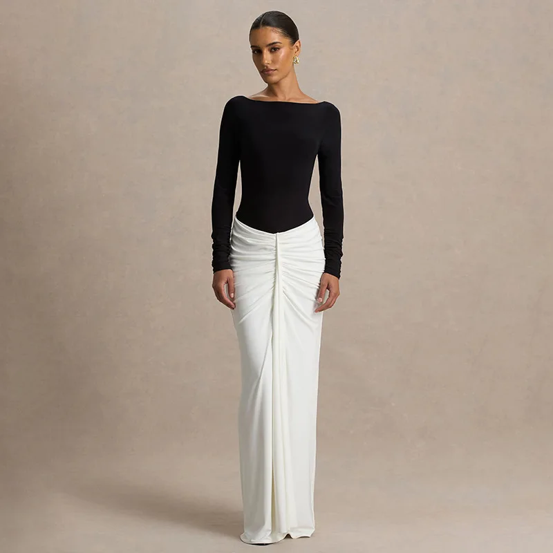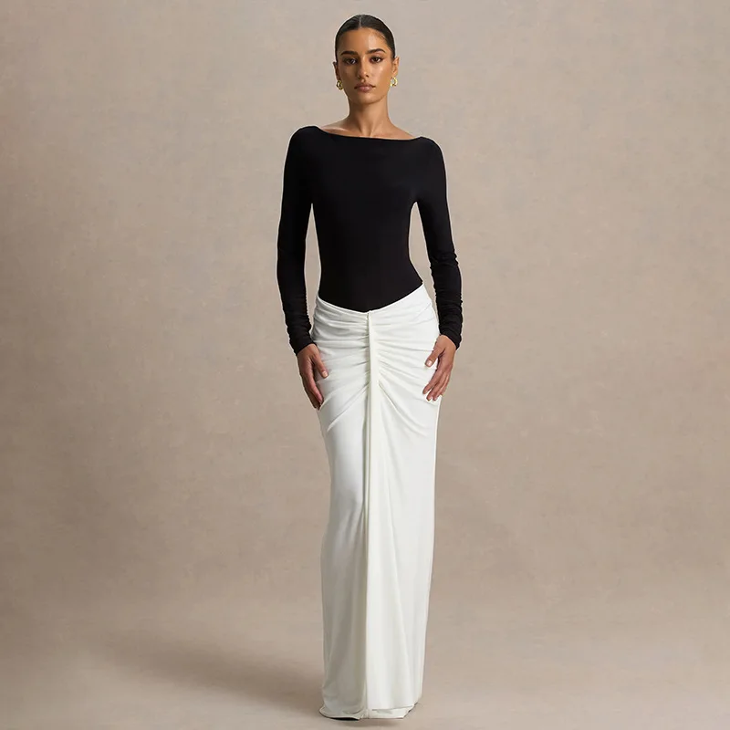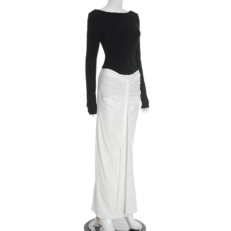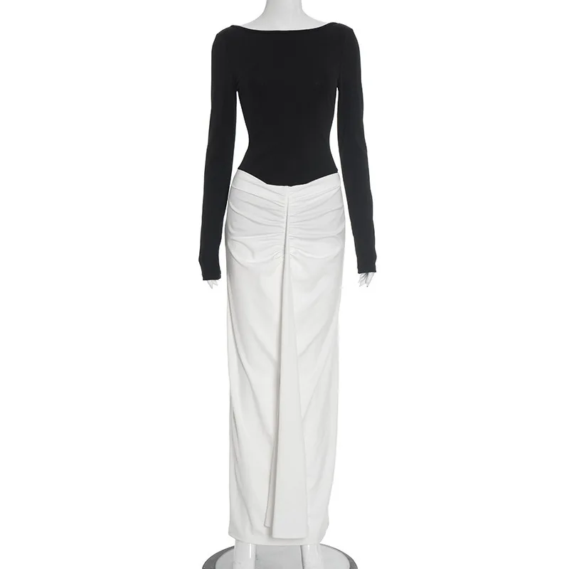 JULISSA MO Patchwork Sexy Backless Ruched Women Maxi Dress Long Sleeve High Waist Dress Autumn Slim Elegant Party Evening Dress