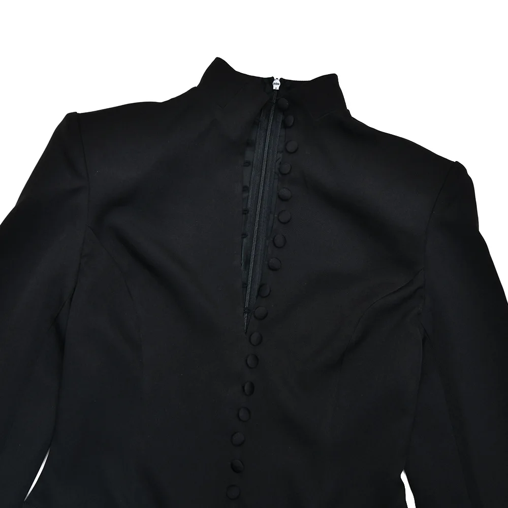 JULISSA MO Stand Collar Single Breasted Women Blazer Dress Black Long Sleeve Shoulder Pads Winter Slim Elegant Blazer Dress 2025