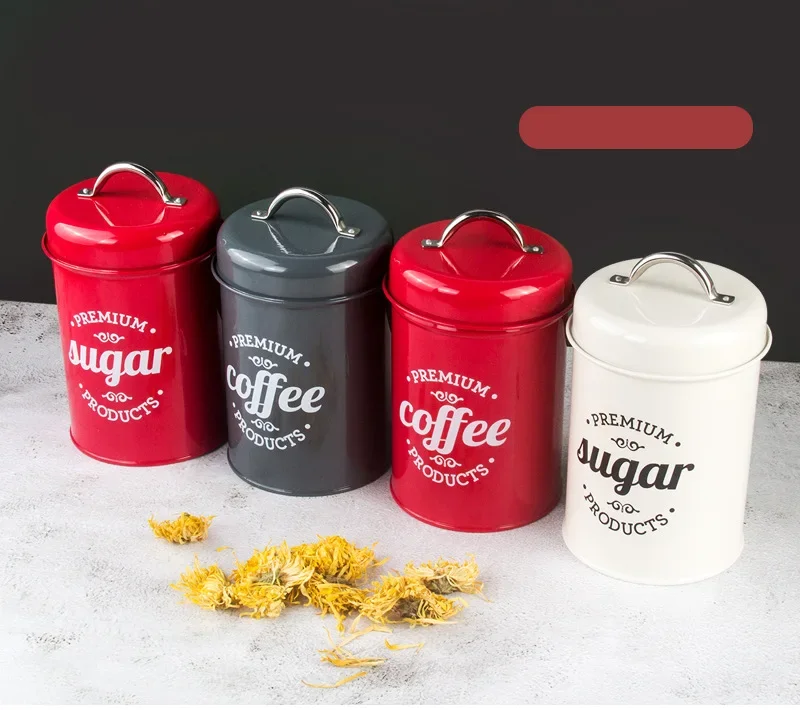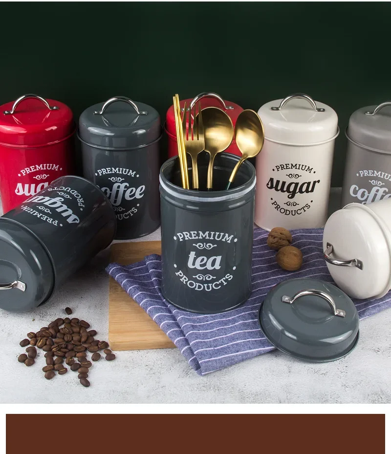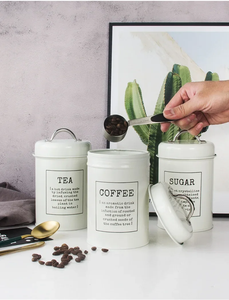 Kitchen Canisters Coffee Tea Sugar Flour Metal Tin Jars Nest Food Storage Container Farmhouse Decor Countertop Pantry Organizer