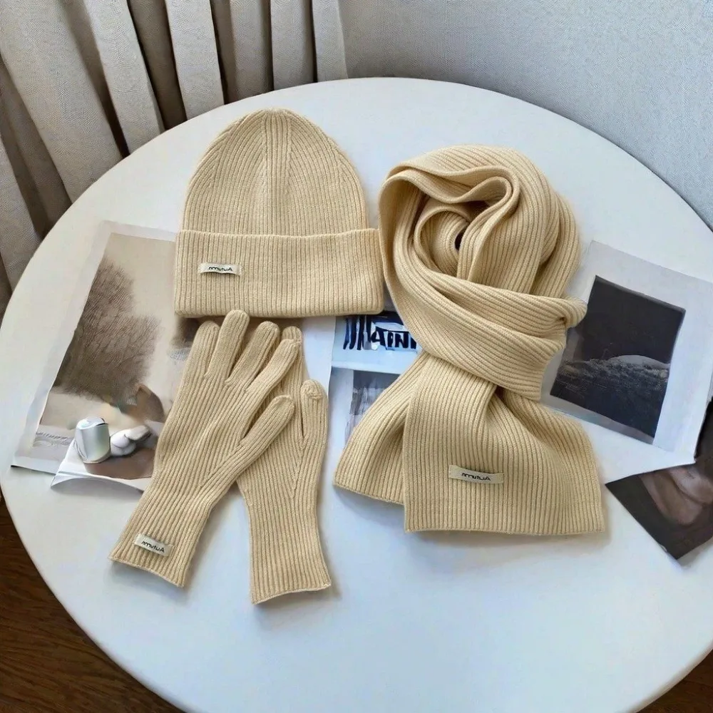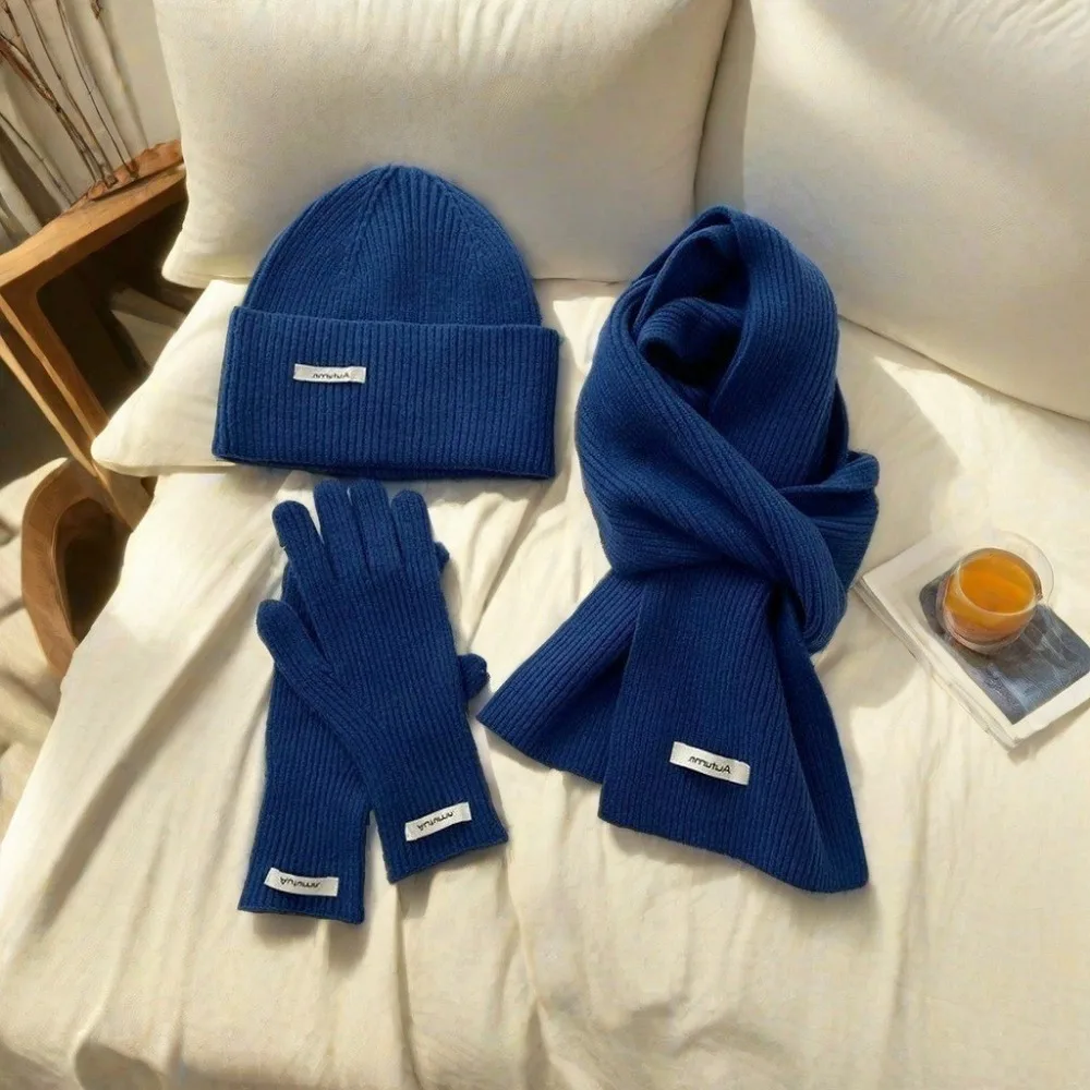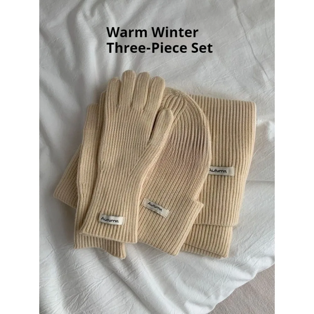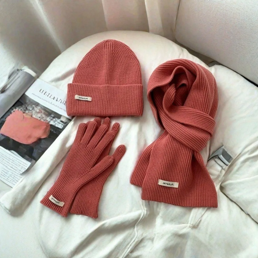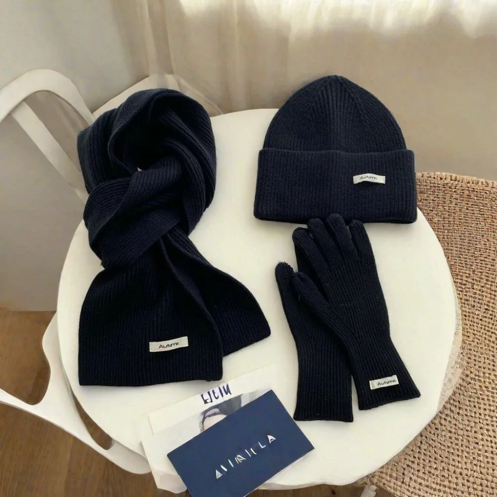 Knitted Winter Scarf Woman Solid Color Hat Scarf Gloves Women's Windproof Adult Three-piece Set Fashion Women's Scarf Hat Set