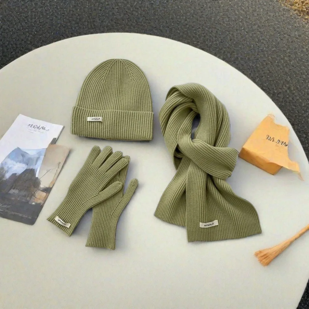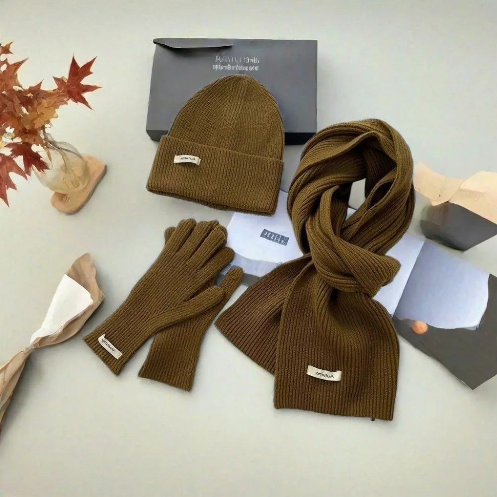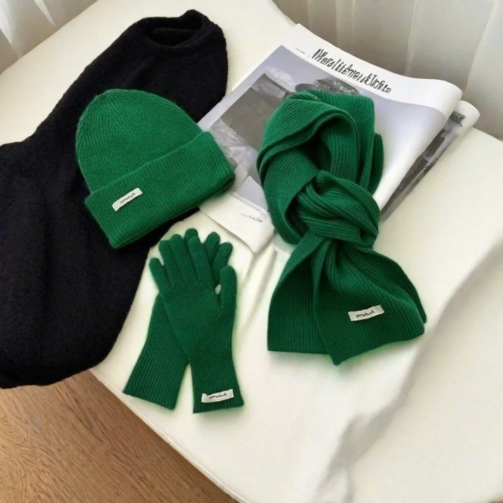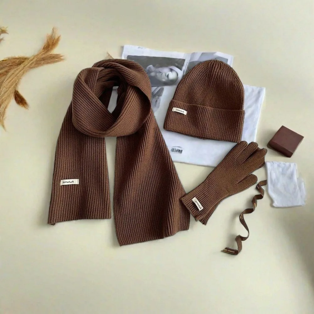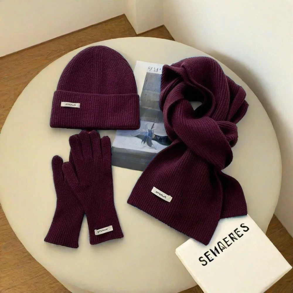 Knitted Winter Scarf Woman Solid Color Hat Scarf Gloves Women's Windproof Adult Three-piece Set Fashion Women's Scarf Hat Set