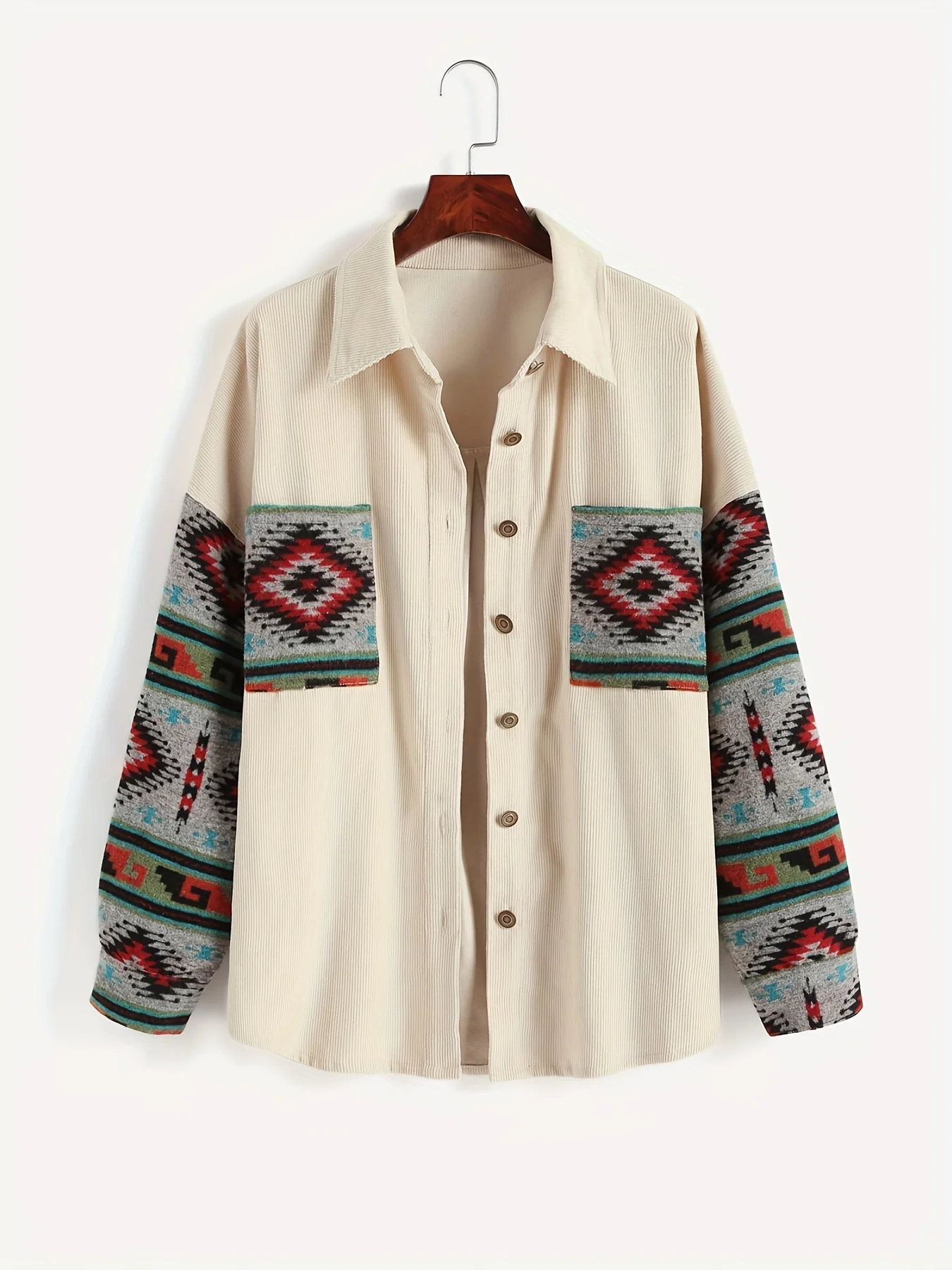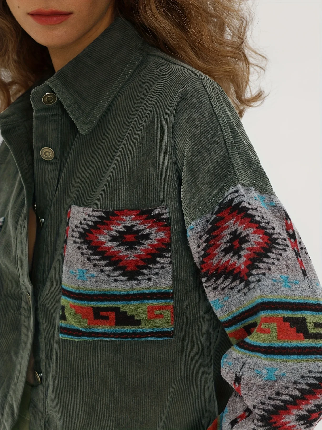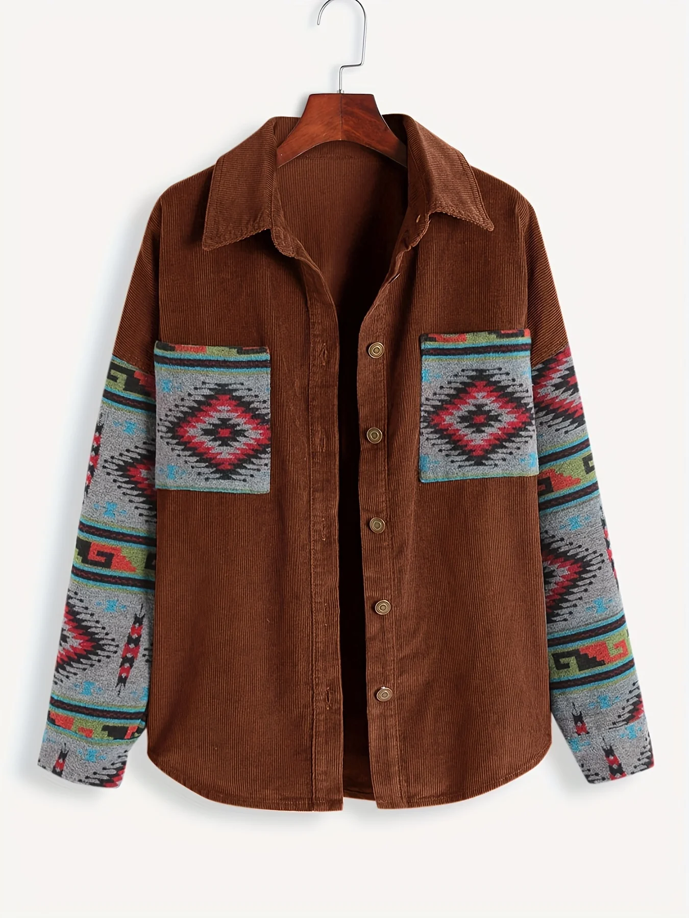 Ladies fashion casual corduroy stitching jacquard coat women's dress