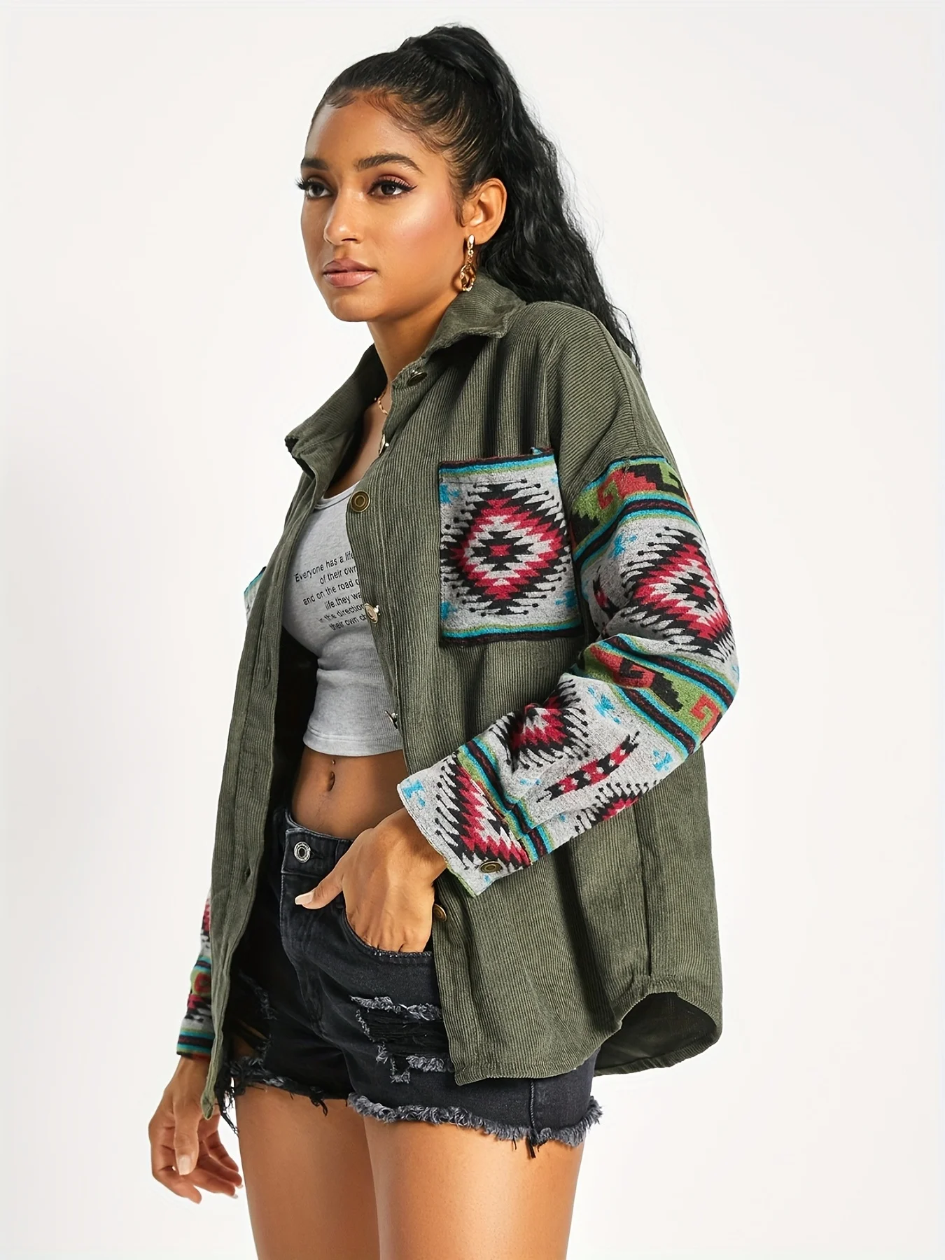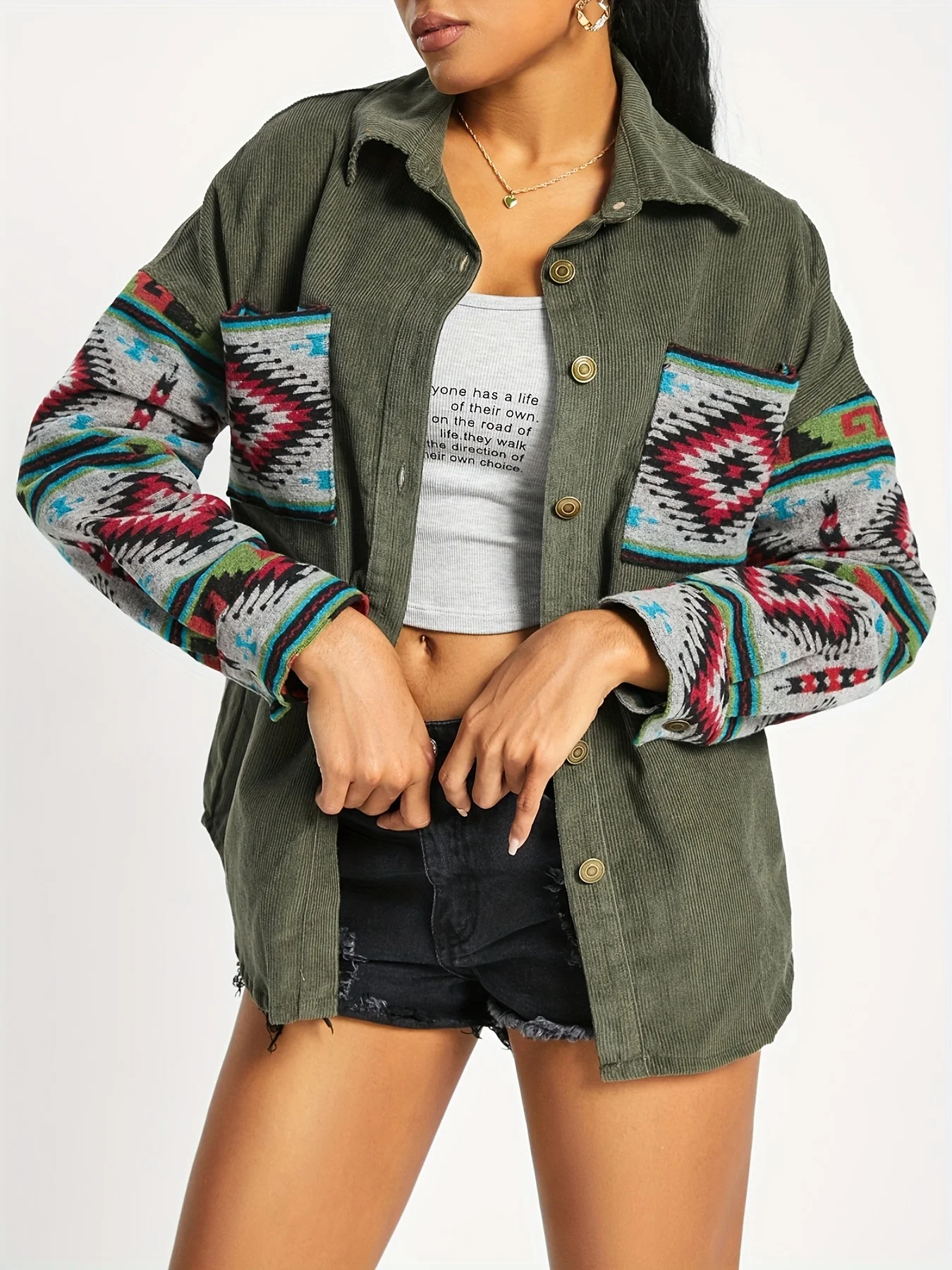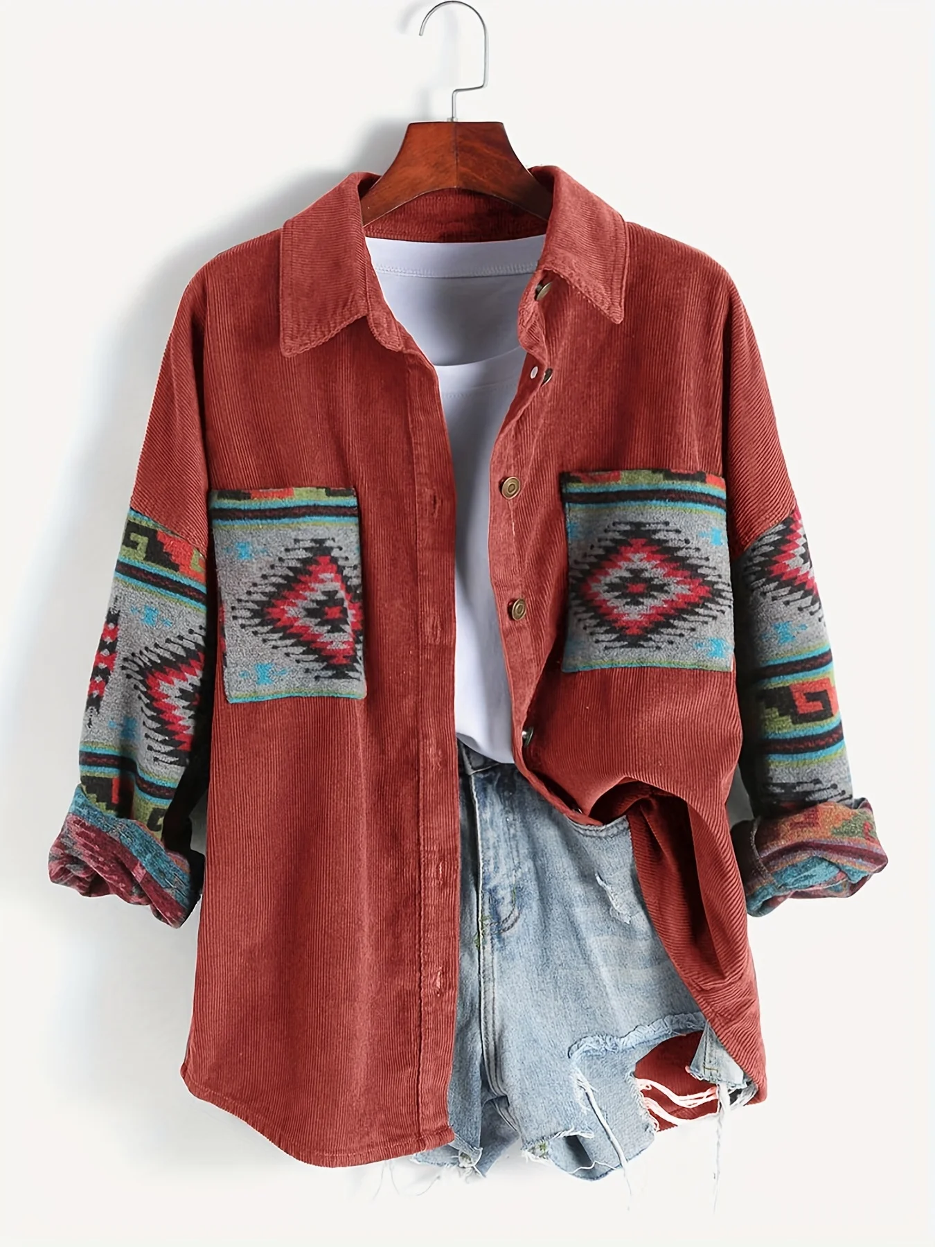 Ladies fashion casual corduroy stitching jacquard coat women's dress