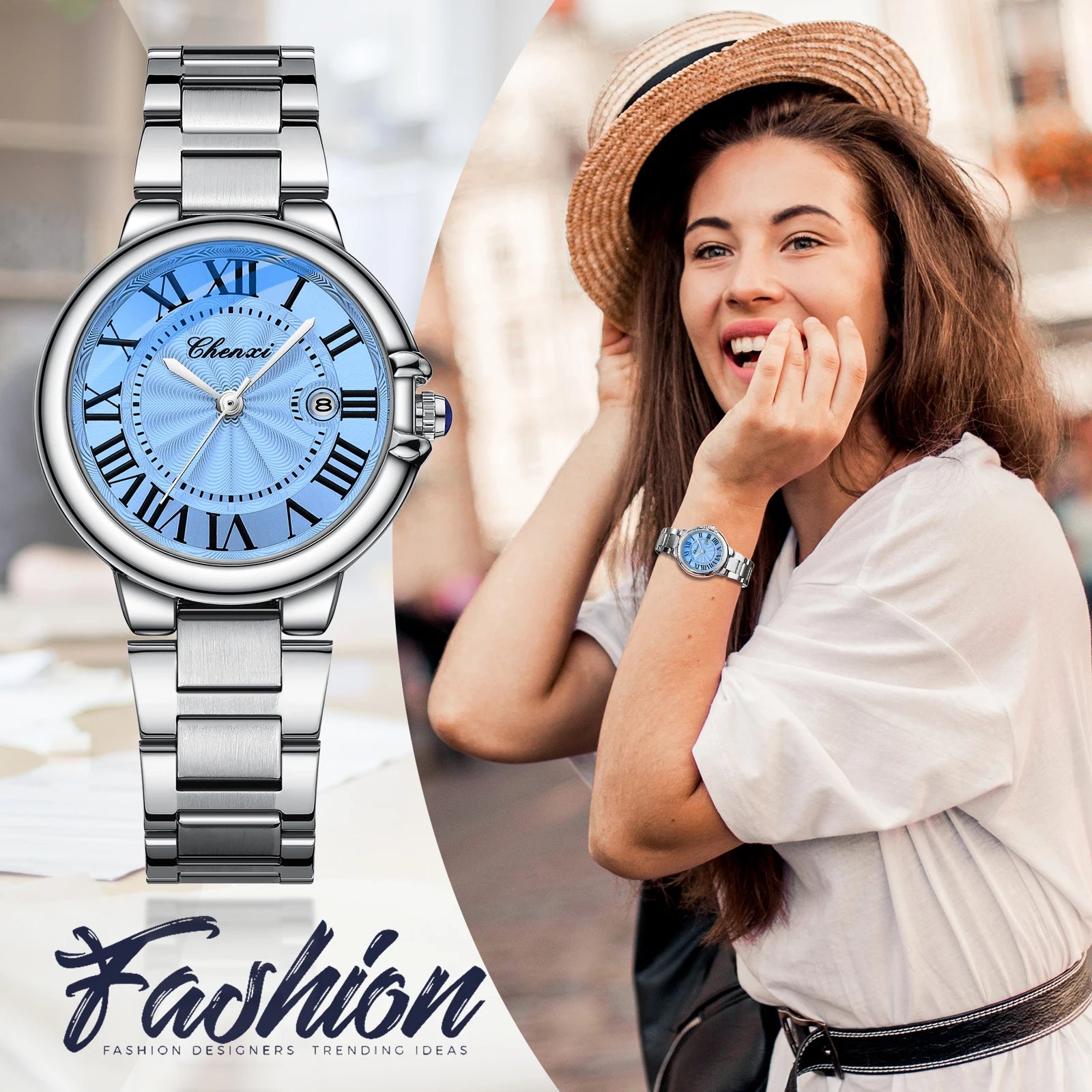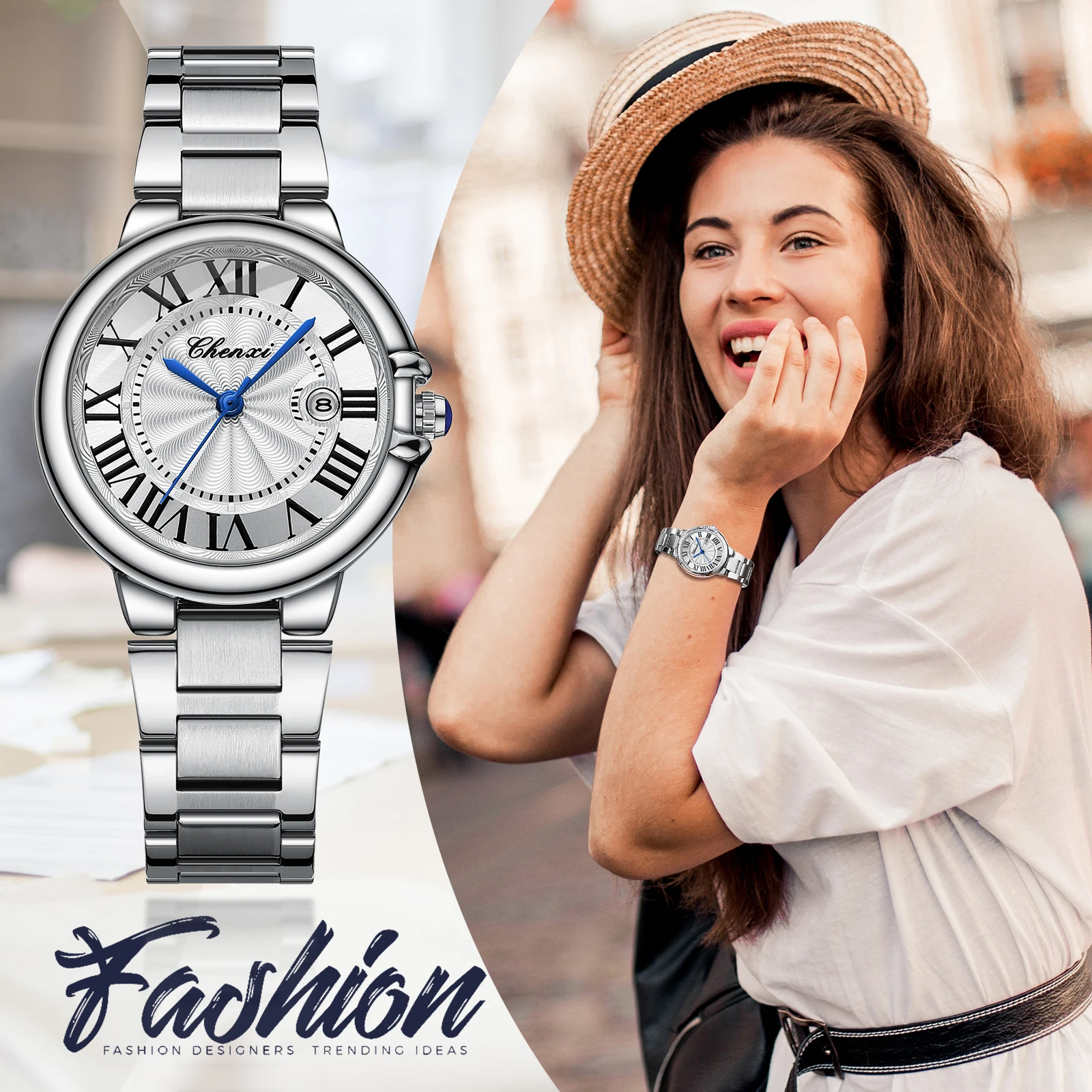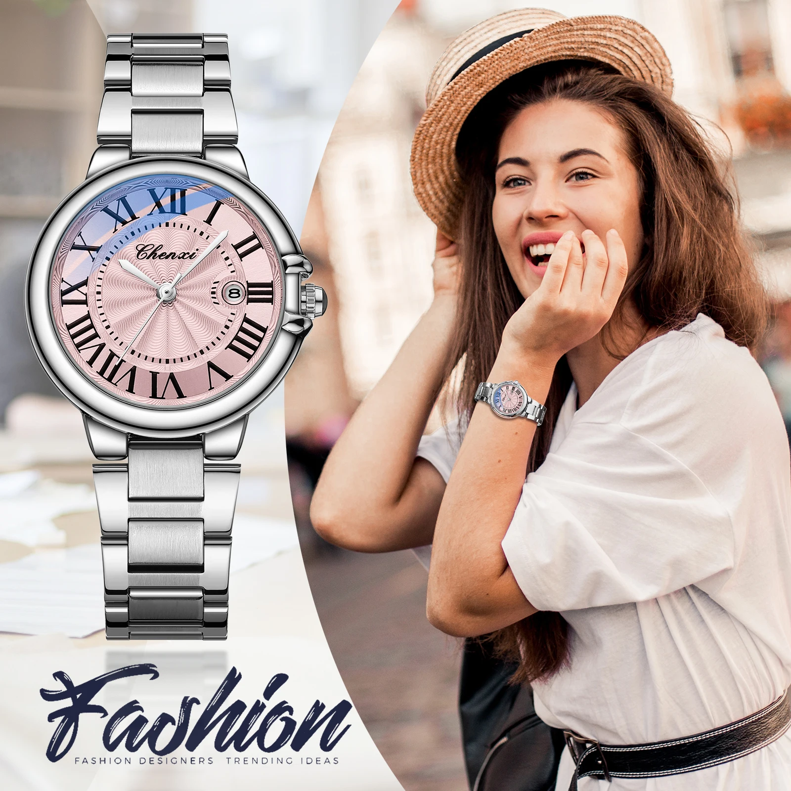 LANCARDO Quartz Calendar Dial Stainless Steel Couples Waterproof Watch Roman Dial Stereo Detachable Strap Casual Business Watch