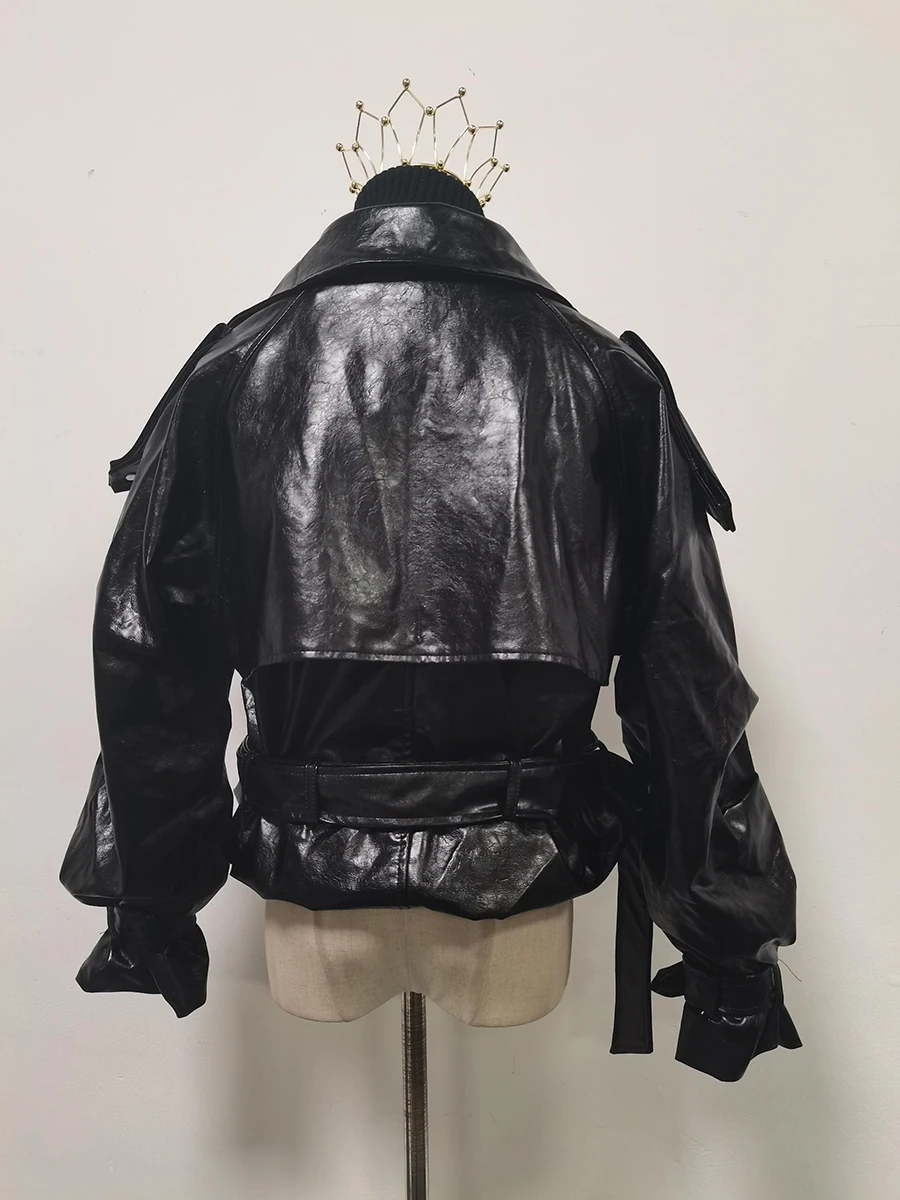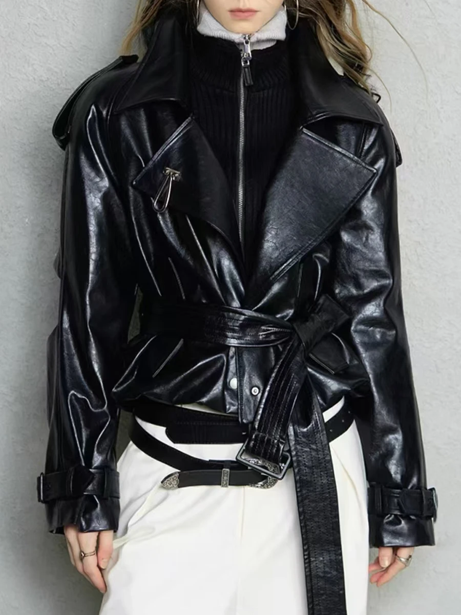 🌟 What is it - Introducing the TWOTWINSTYLE Slimming Spliced Lace Up High Street Jacket, designed specifically for women who want to make a statement. This stylish lapel leather jacket combines elegance and edge, making it a must-have for any fashion-forward wardrobe.