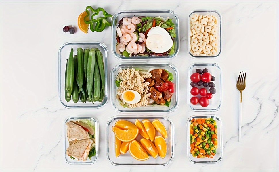 [Leakproof Glass Containers] 10-PACK High Borosilicate Glass Food Storage Containers Set | Leakproof Airtight Lids, Perfect For Lunch, On The Go, Leftover, Kitchen Pantry Organizers And Storage