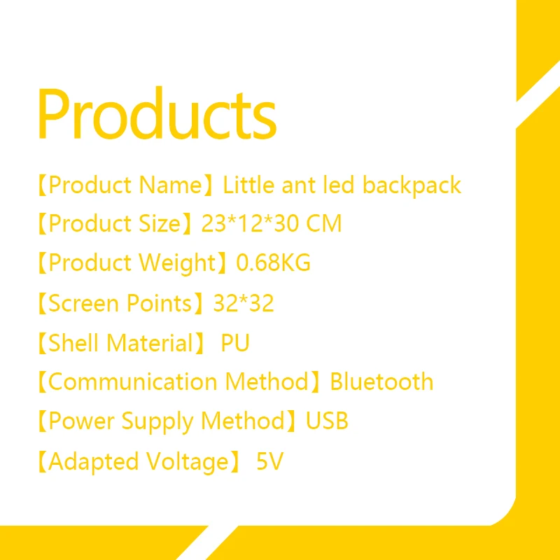 🎒 What it is - Introducing the Baby Ant LED Display Backpack! This innovative hard shell backpack merges functionality with fun, featuring a vibrant LED display that can showcase custom images and animations, making it the ultimate stylish accessory for kids on the go.