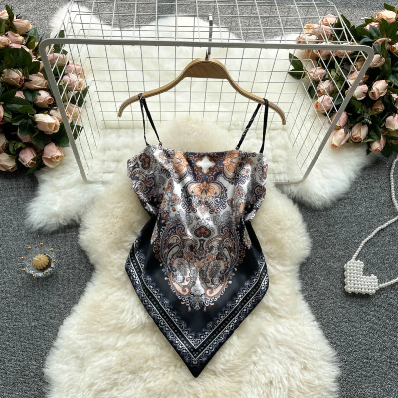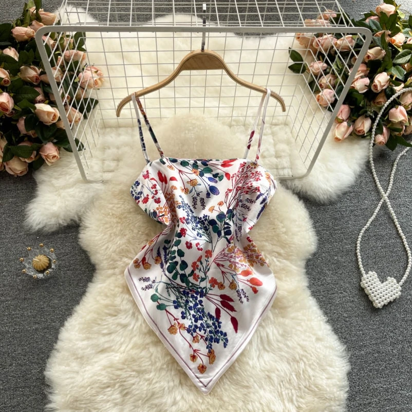 LMM silk scarf sling vest belly pocket women's summer wear niche triangle tube top short