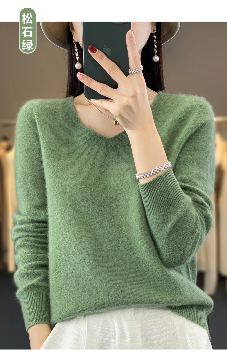 Luxurious 100% Cashmere V-Neck Sweater for Women