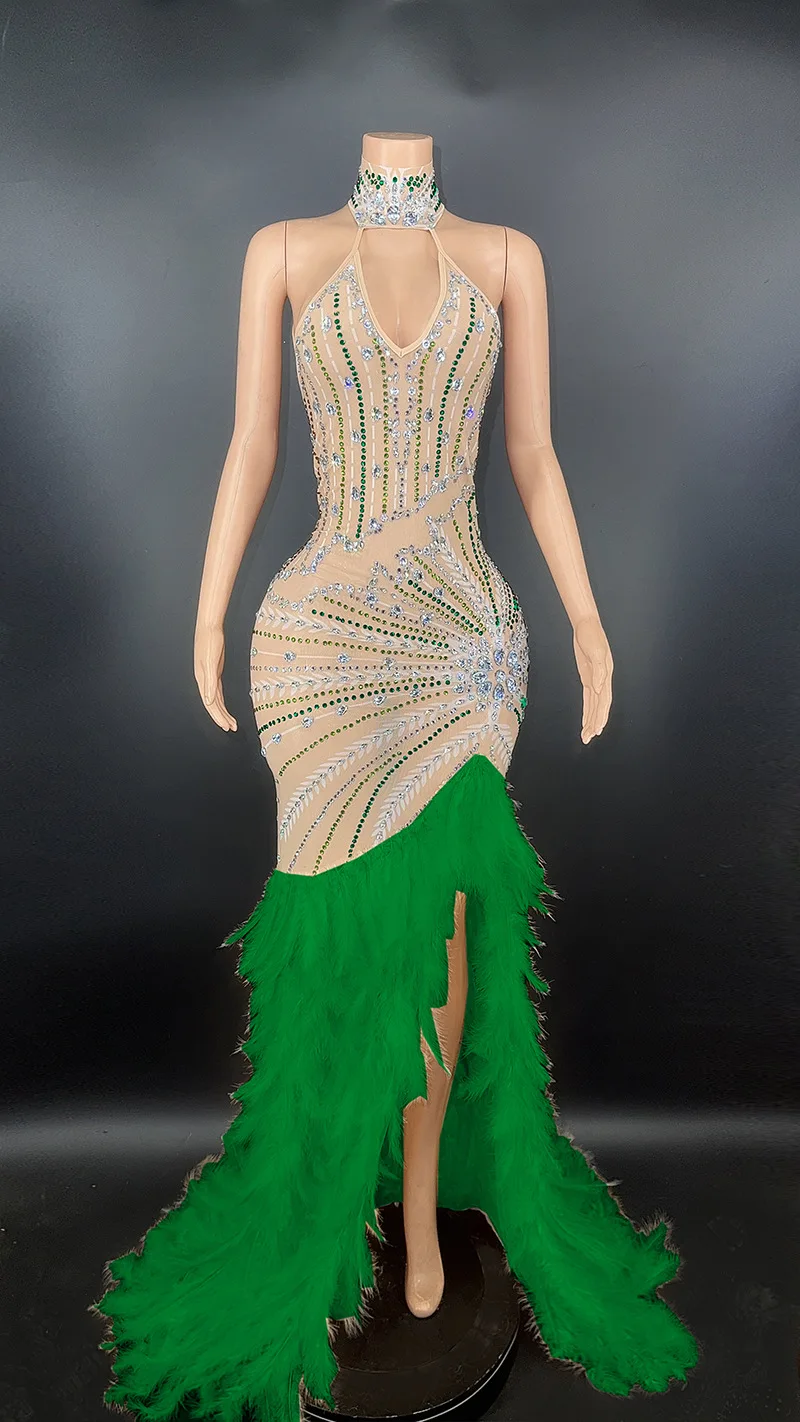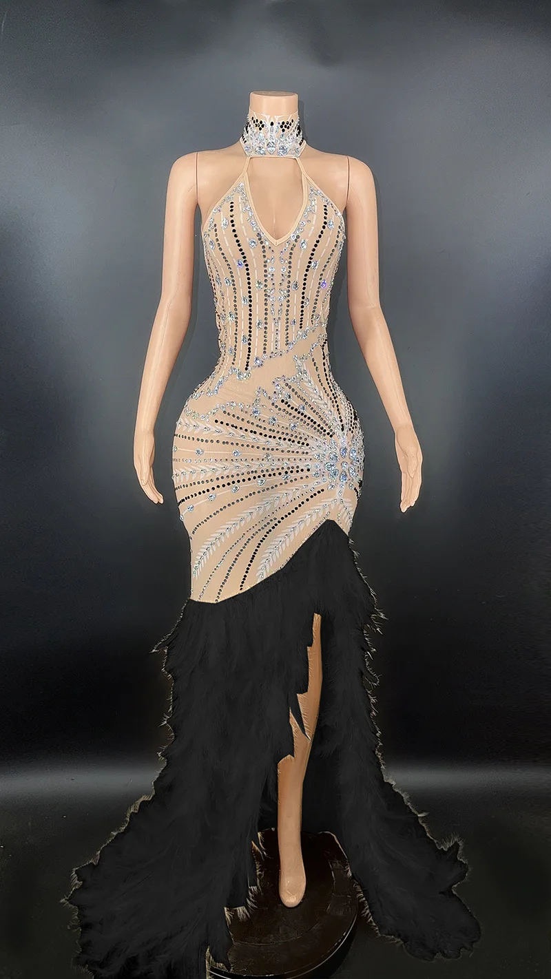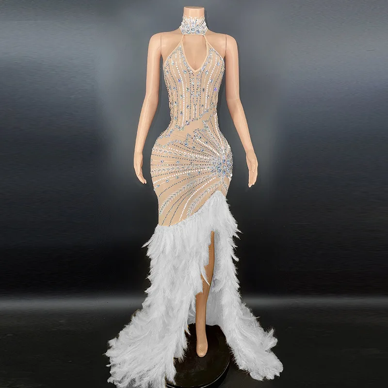 ✨ What it is – Elevate your special occasions with our Luxurious Rhinestone Feather Evening Dress, designed to dazzle with its sparkling silver hue and intricate rhinestone detailing. This stunning gown is perfect for birthdays, celebrations, or mesmerizing performances!