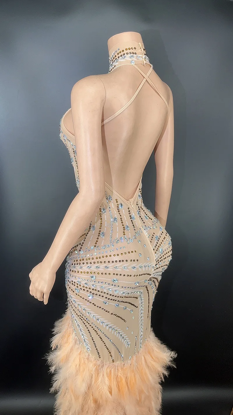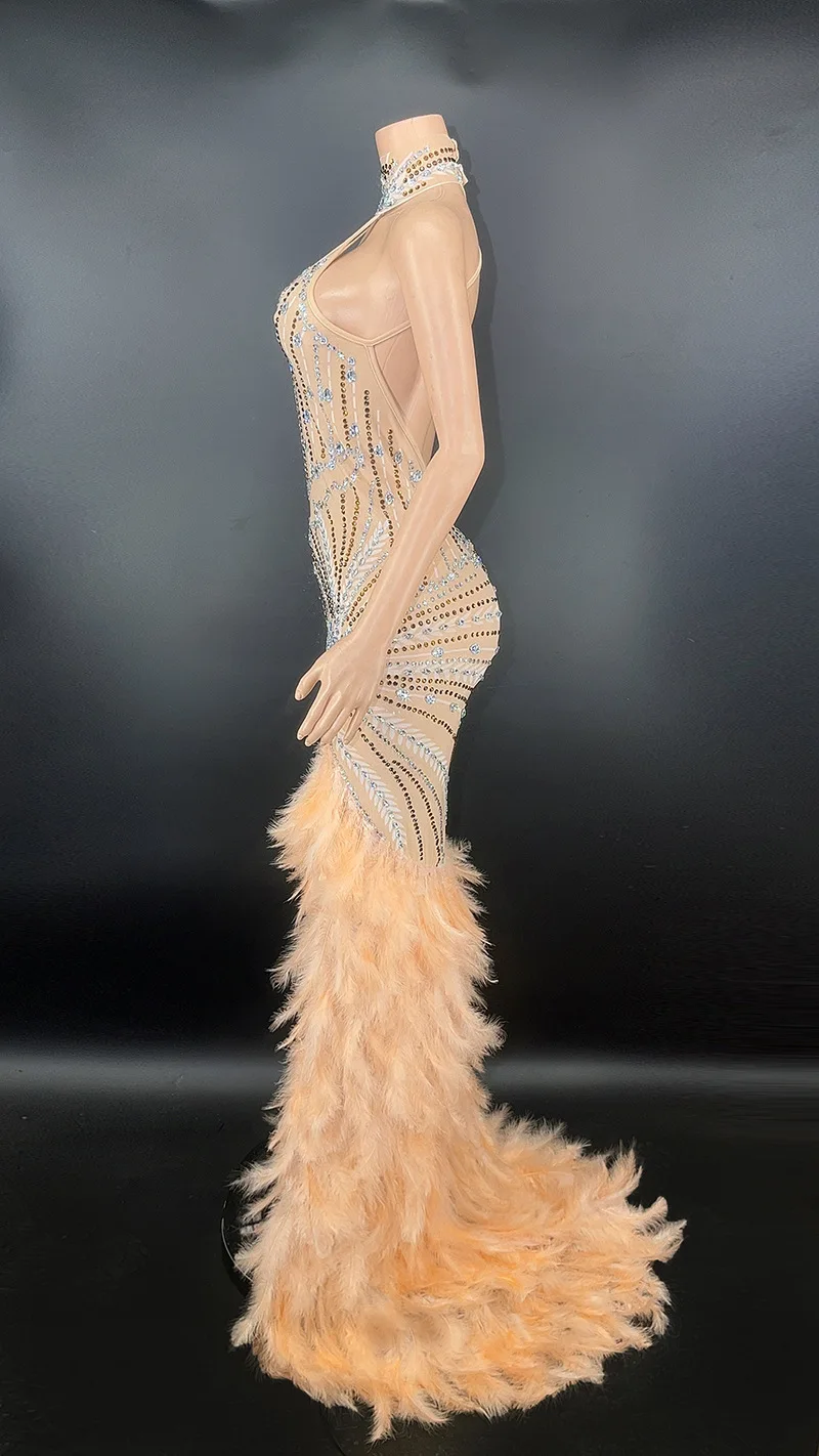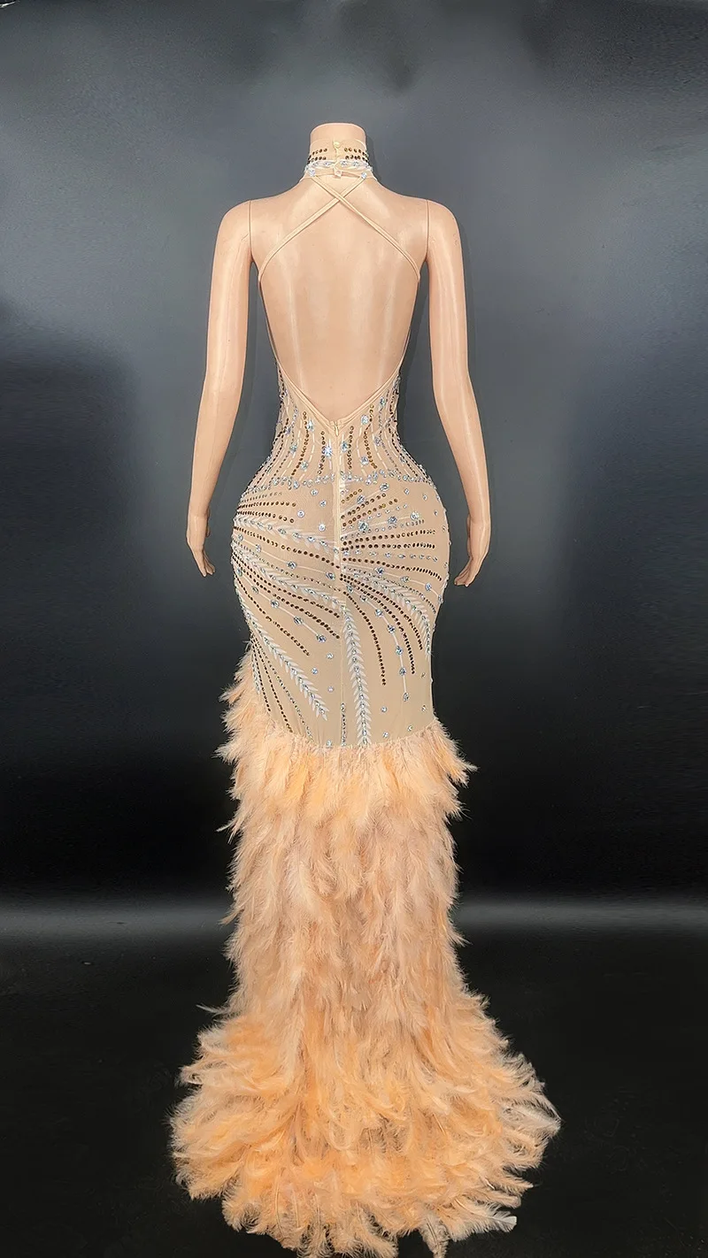 ✨ What it is – Elevate your special occasions with our Luxurious Rhinestone Feather Evening Dress, designed to dazzle with its sparkling silver hue and intricate rhinestone detailing. This stunning gown is perfect for birthdays, celebrations, or mesmerizing performances!