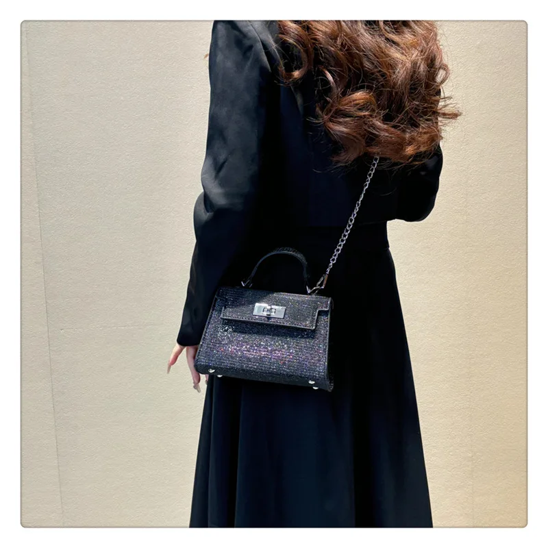 Luxury Designer Lock Nylon Ser with Diamond Women's Handbag Fashion Crossbody Bag Small Flap Tote