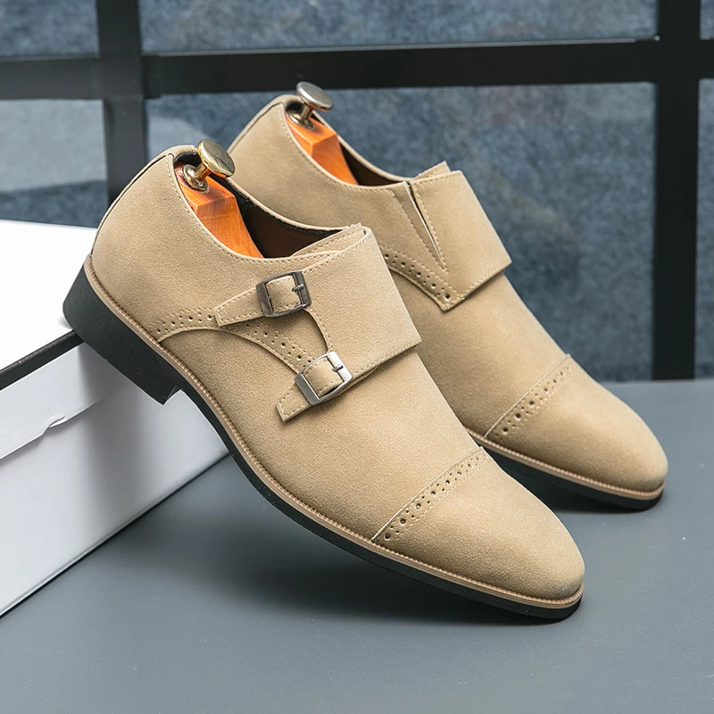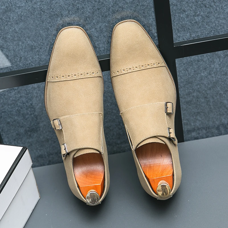 Luxury Designer Pointed Toe Men's Dress Shoes Monk clasp Moccasins Wedding Prom Sapato Social Masculino