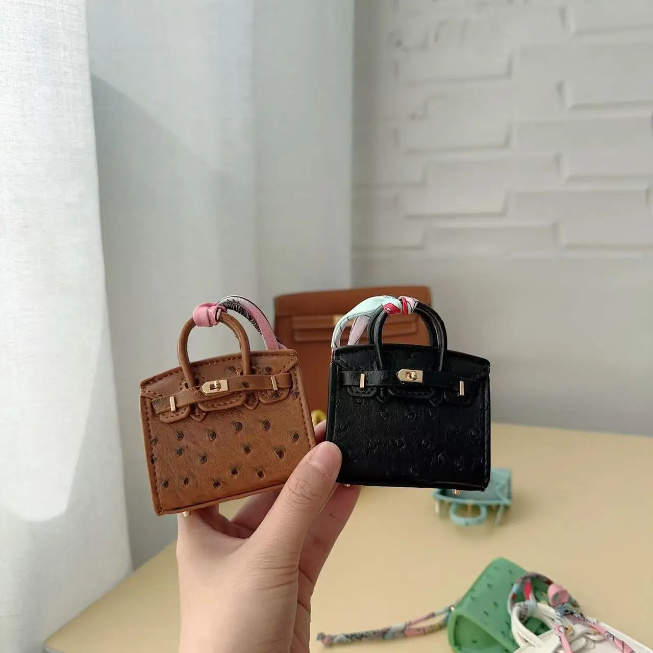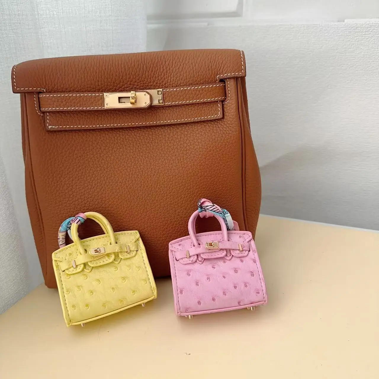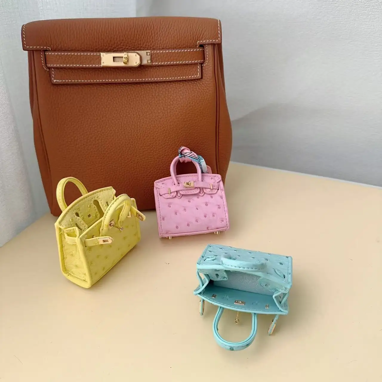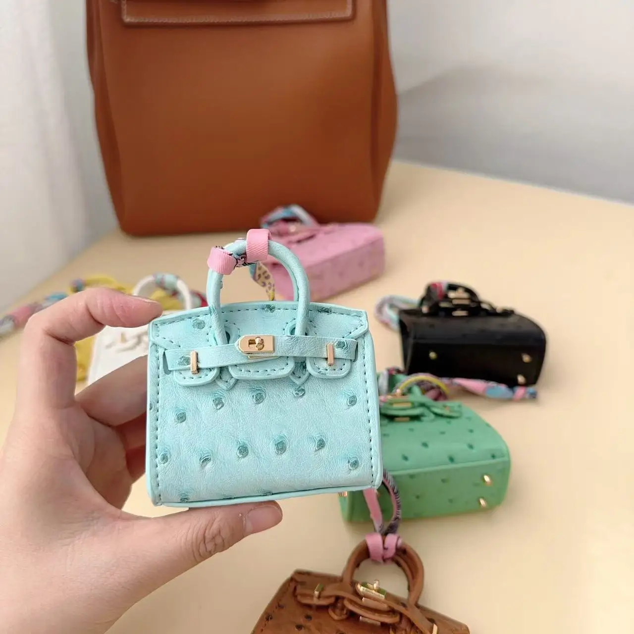 Luxury Handcrafted Mini Ostrich Leather Bag Pendant – Chic, Stylish & Ideal for Fashion Bags