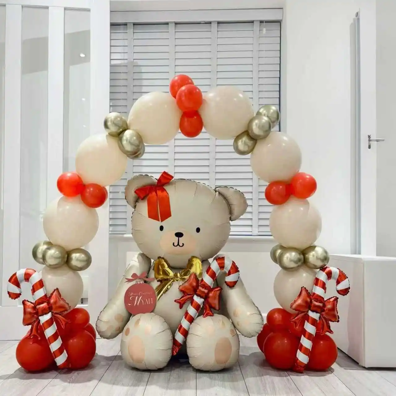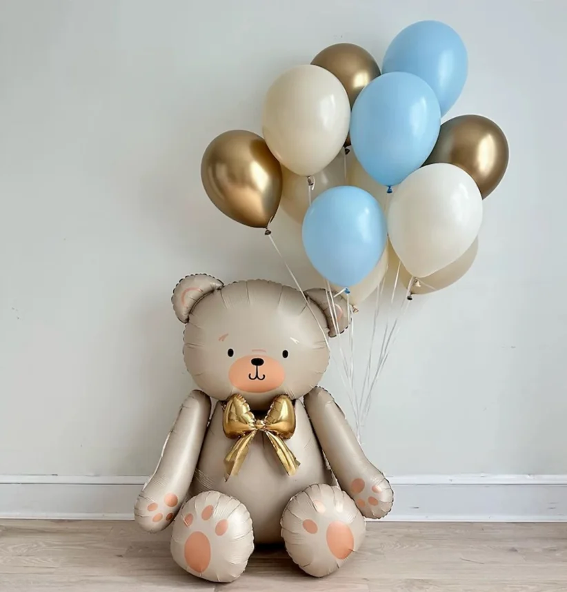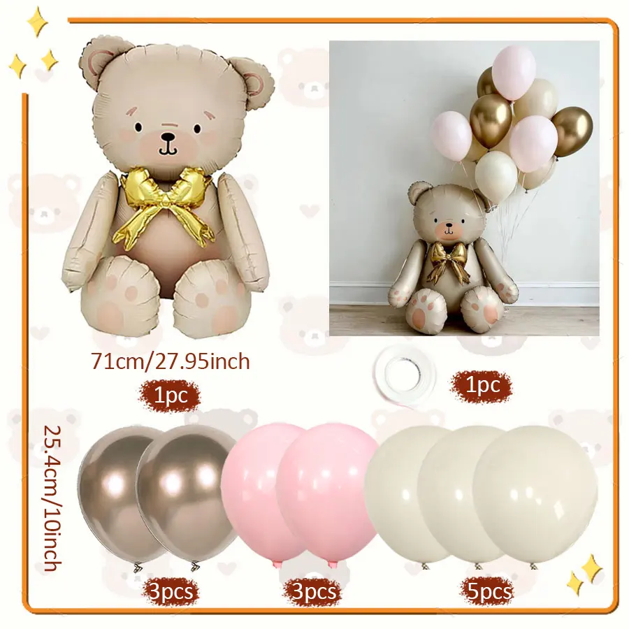 Matte white bow teddy bear balloon set latex balloons for birthday party shower engagement wedding decoration