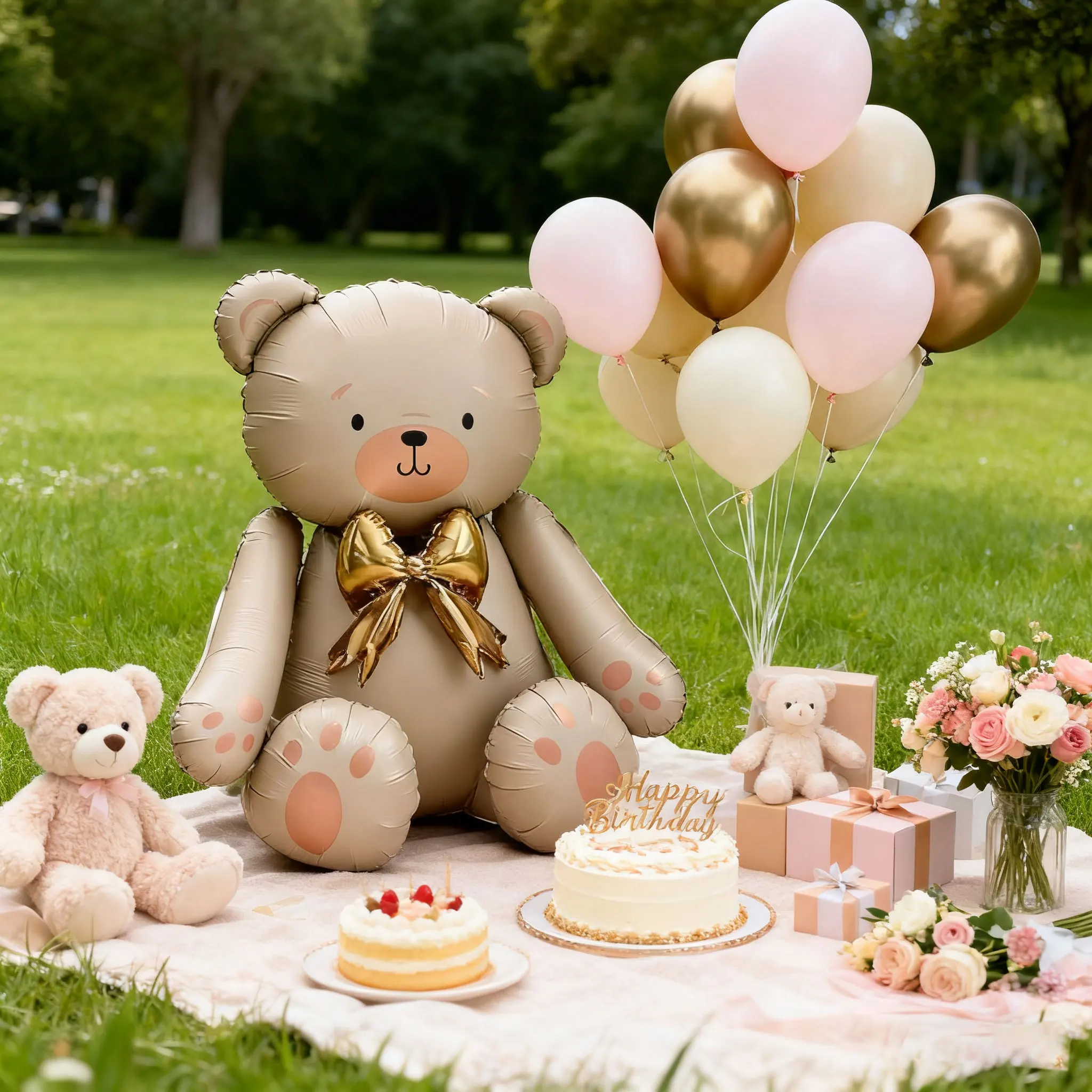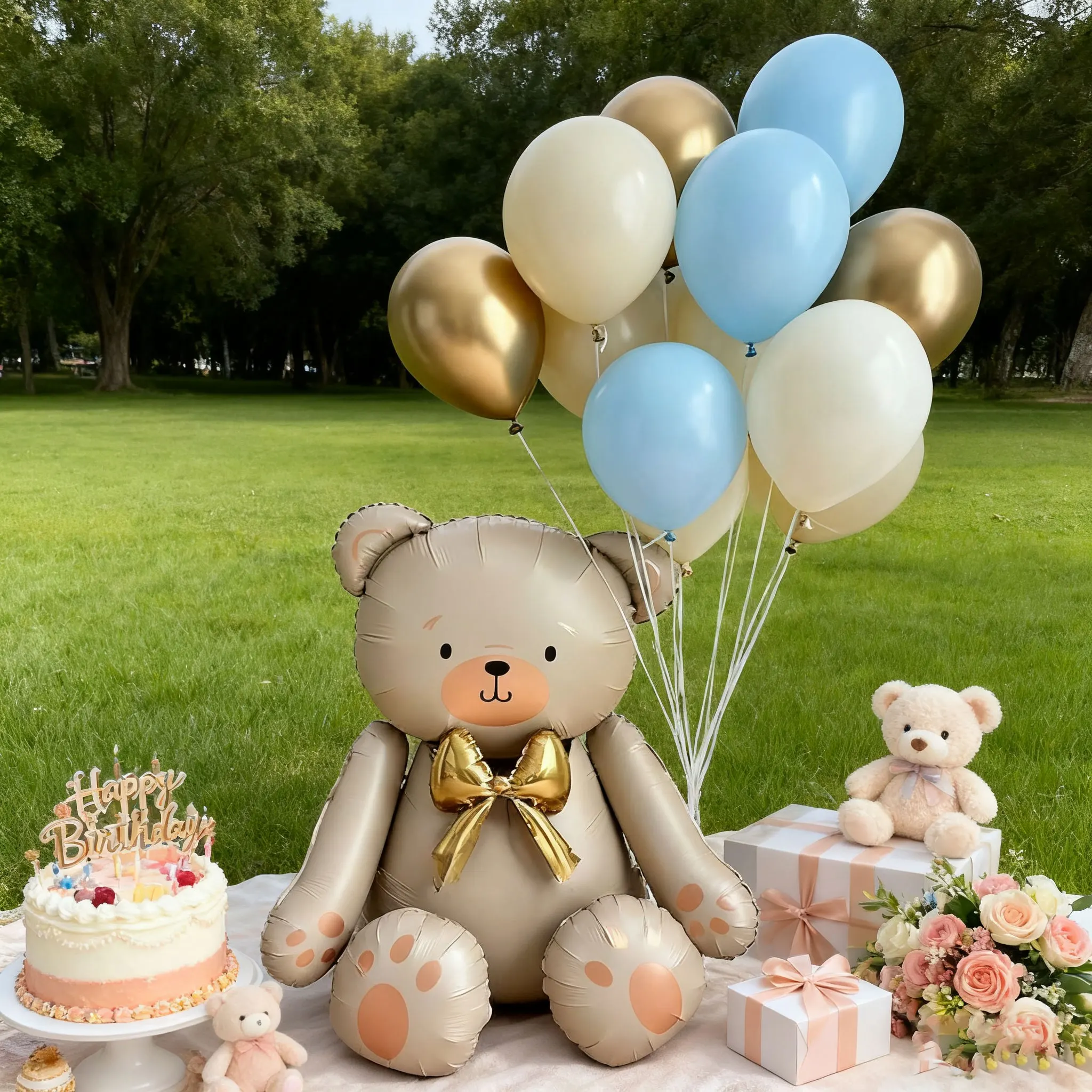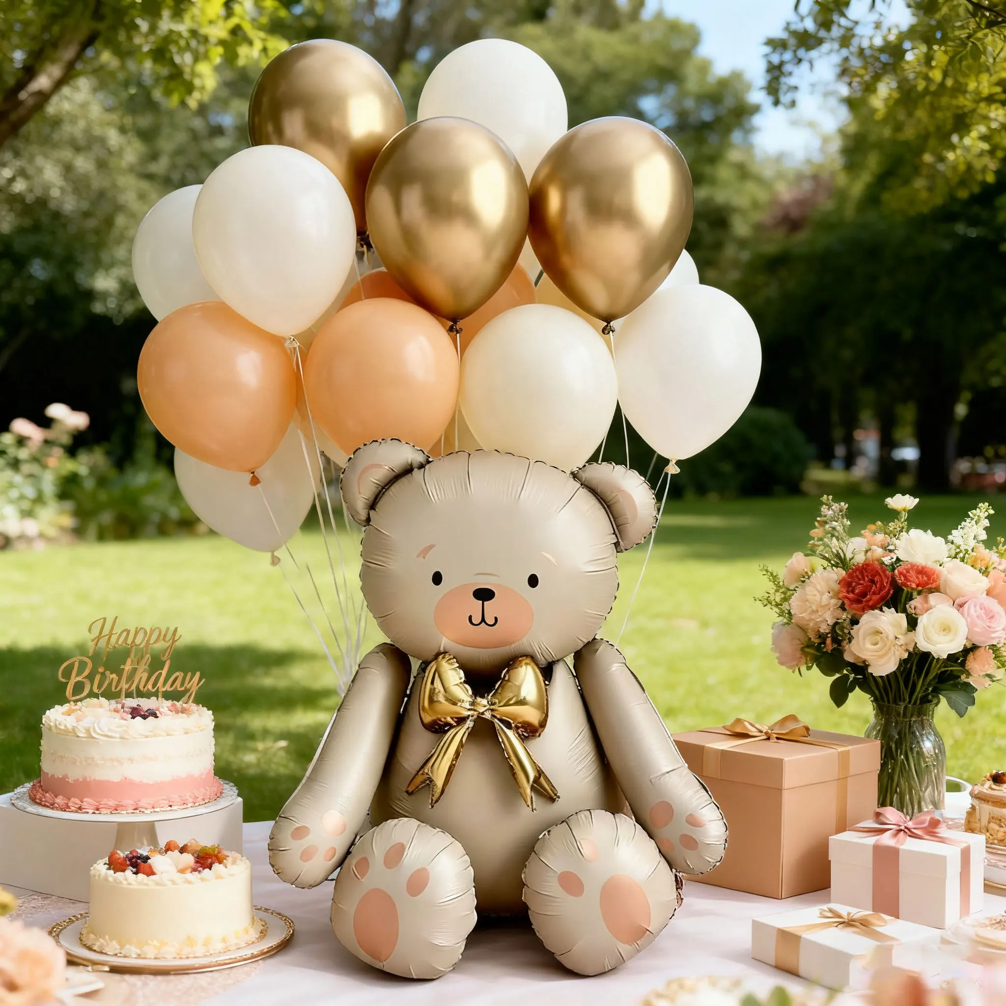 Matte white bow teddy bear balloon set latex balloons for birthday party shower engagement wedding decoration