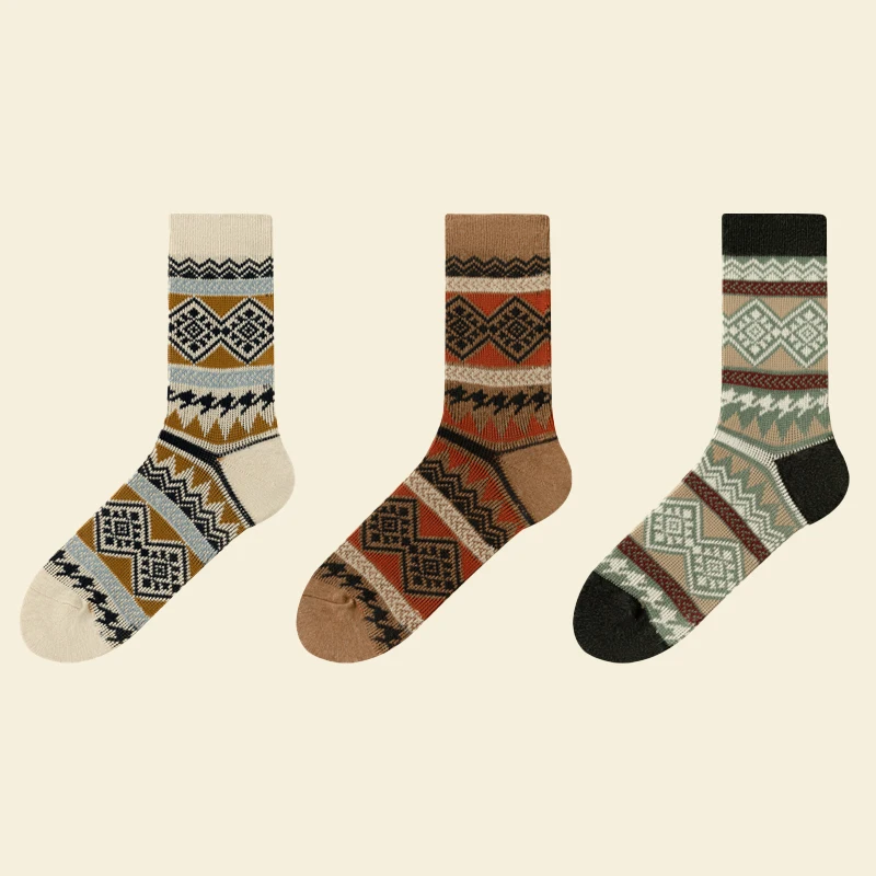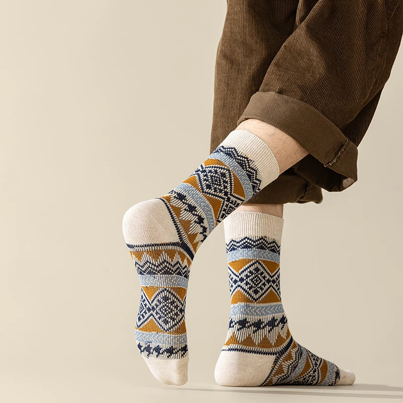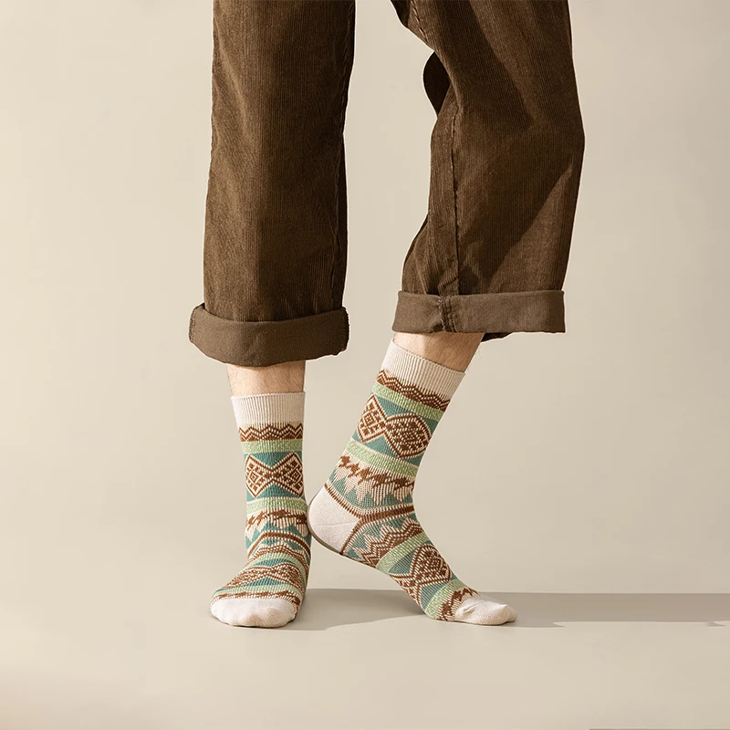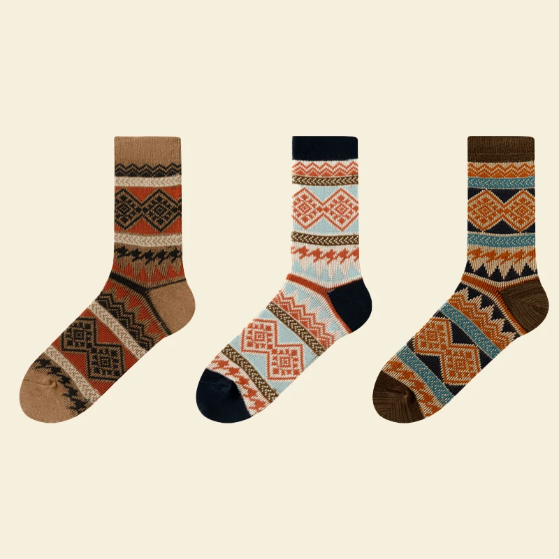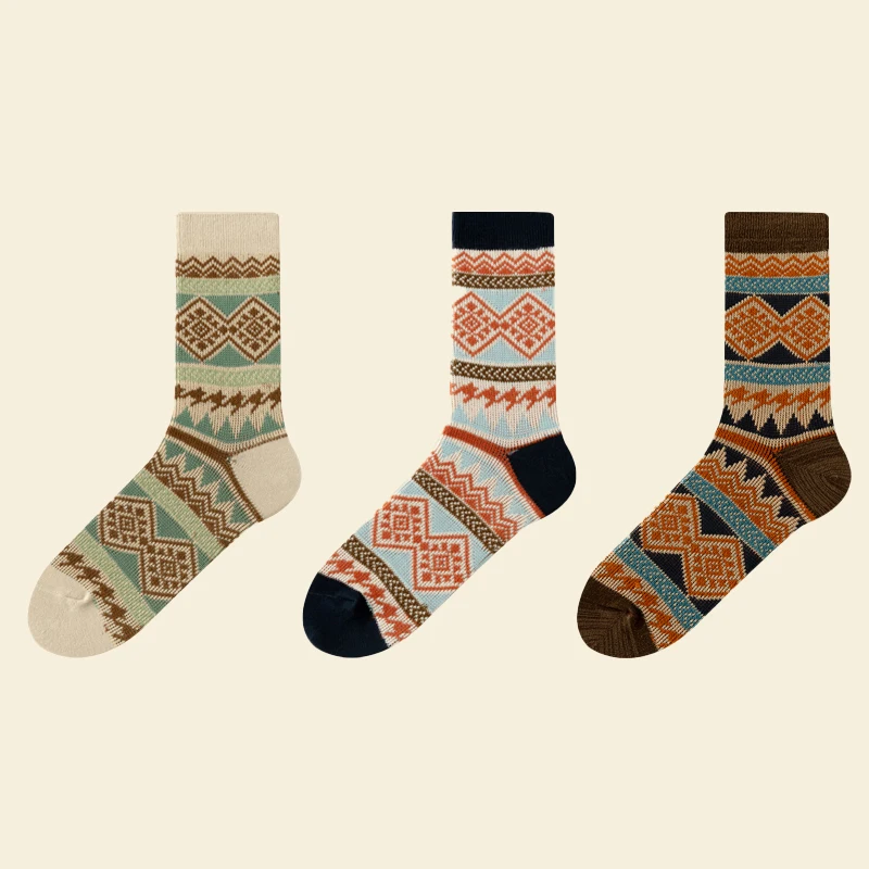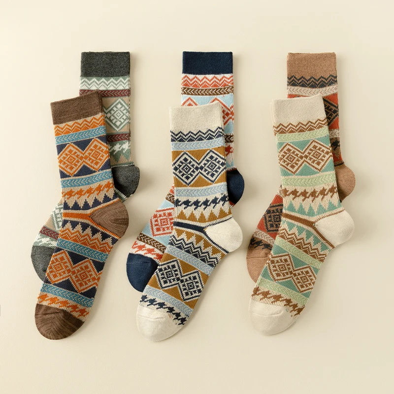 Men's Dress Socks,Cotton Crew Socks,3 Pairs,Breathable and sweat-absorbing ,Funky Colorful Pattern Crew Socks