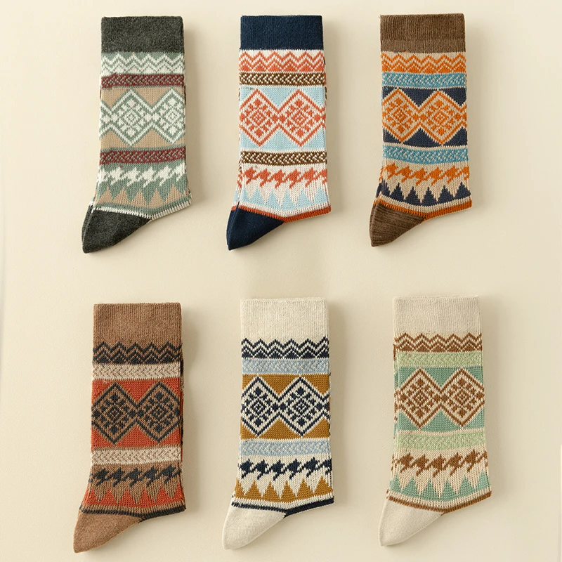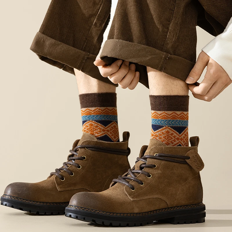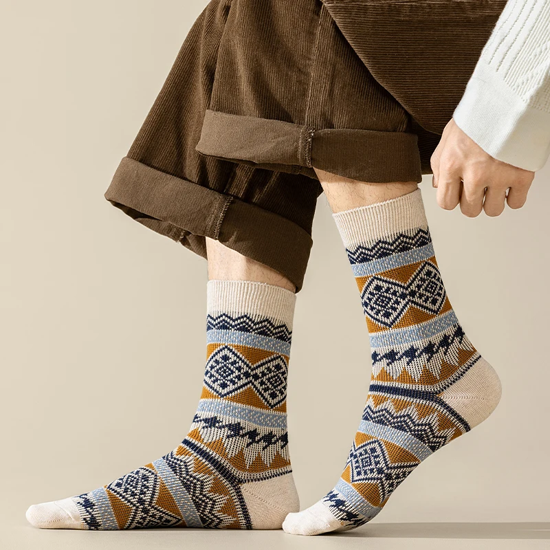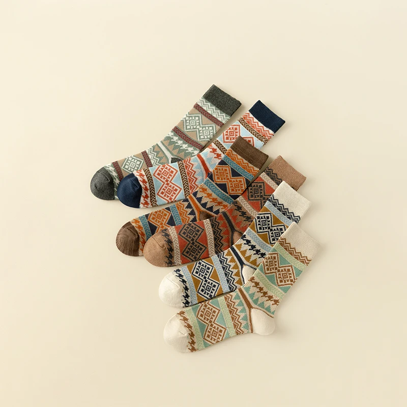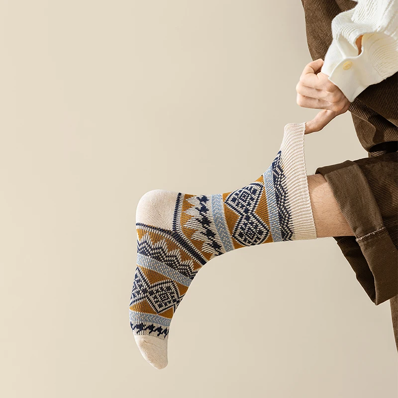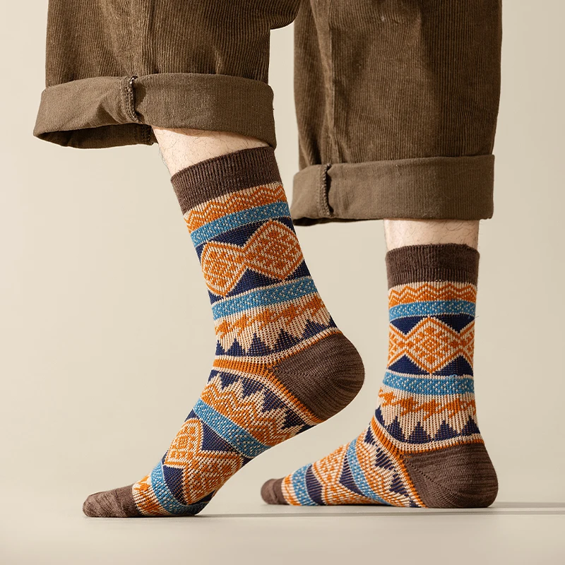 Men's Dress Socks,Cotton Crew Socks,3 Pairs,Breathable and sweat-absorbing ,Funky Colorful Pattern Crew Socks