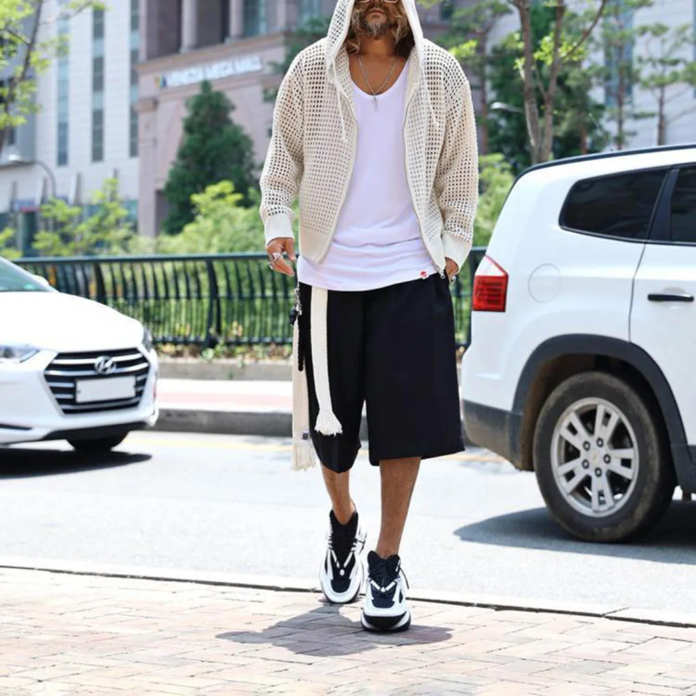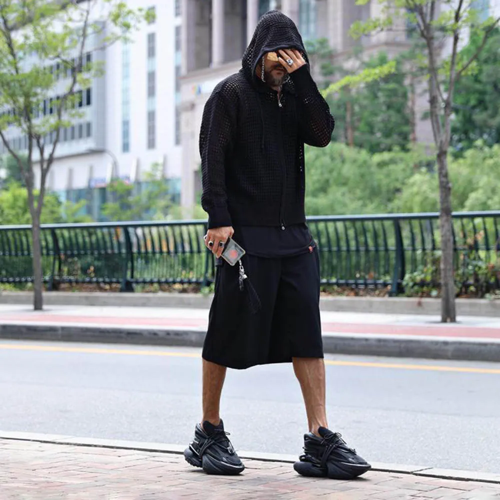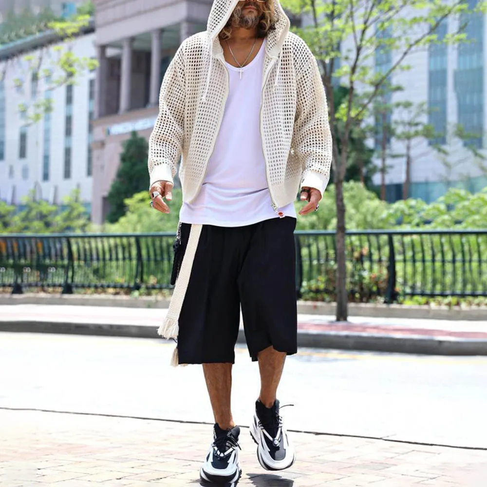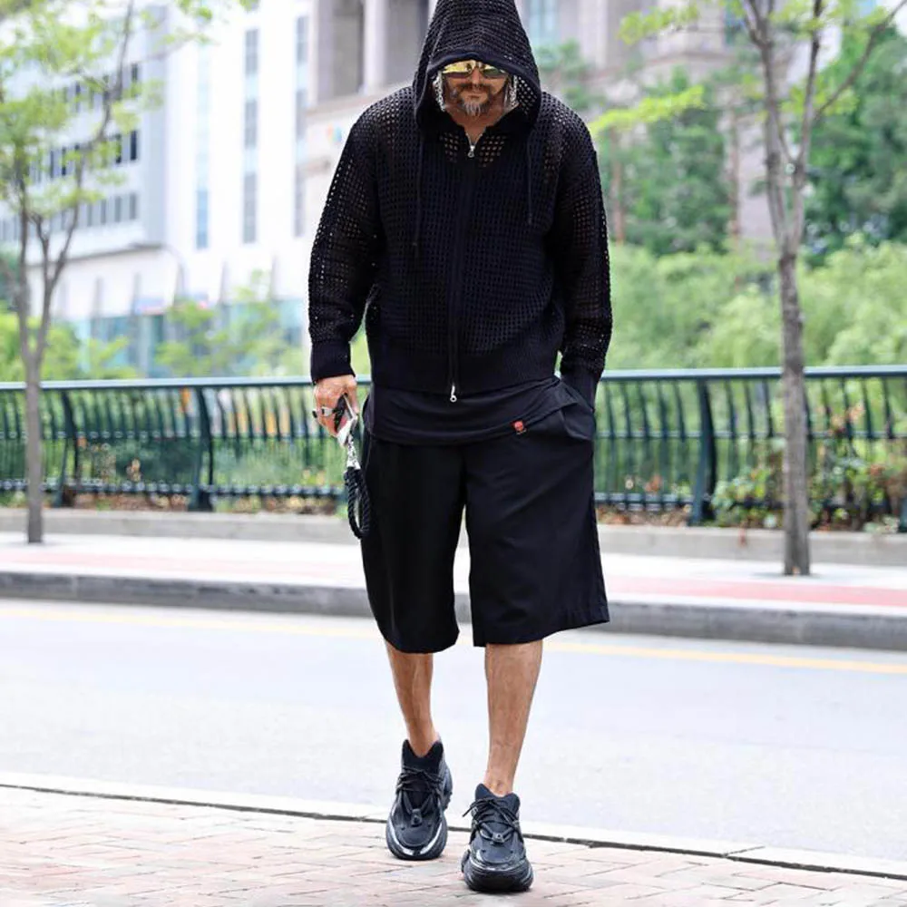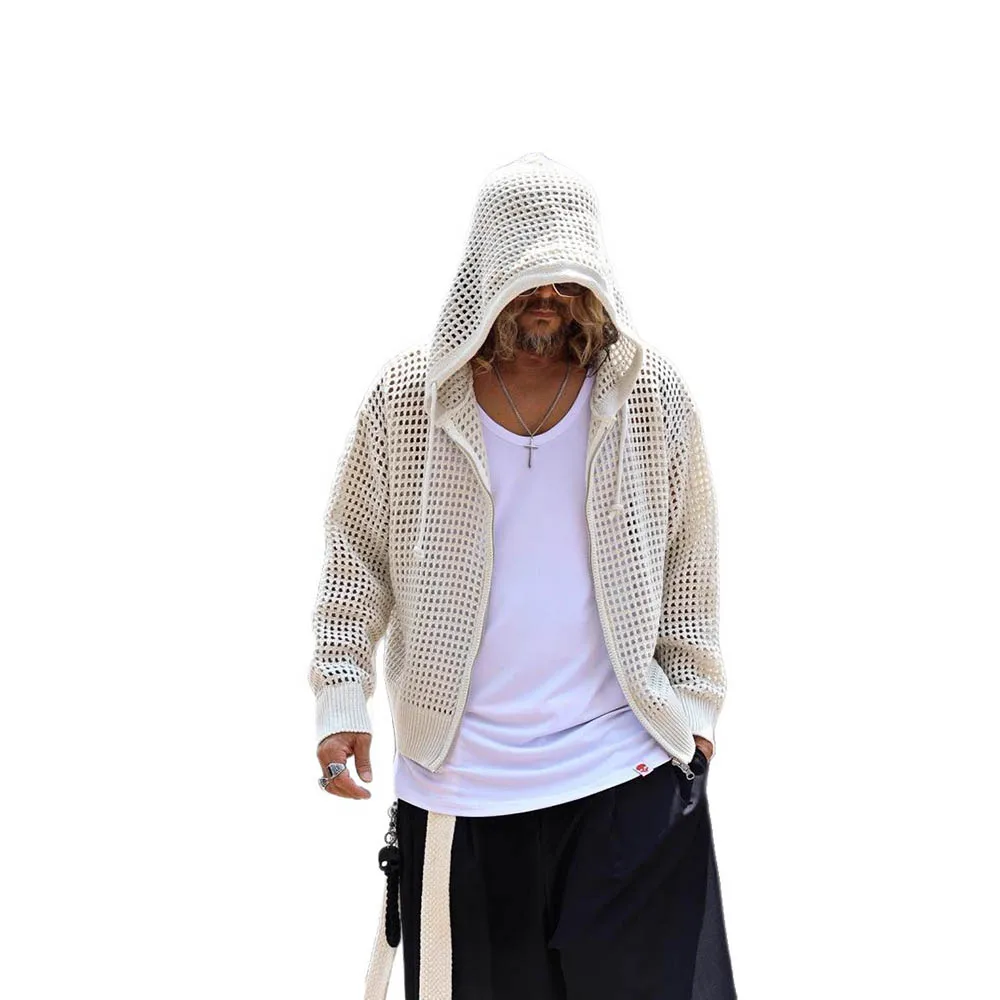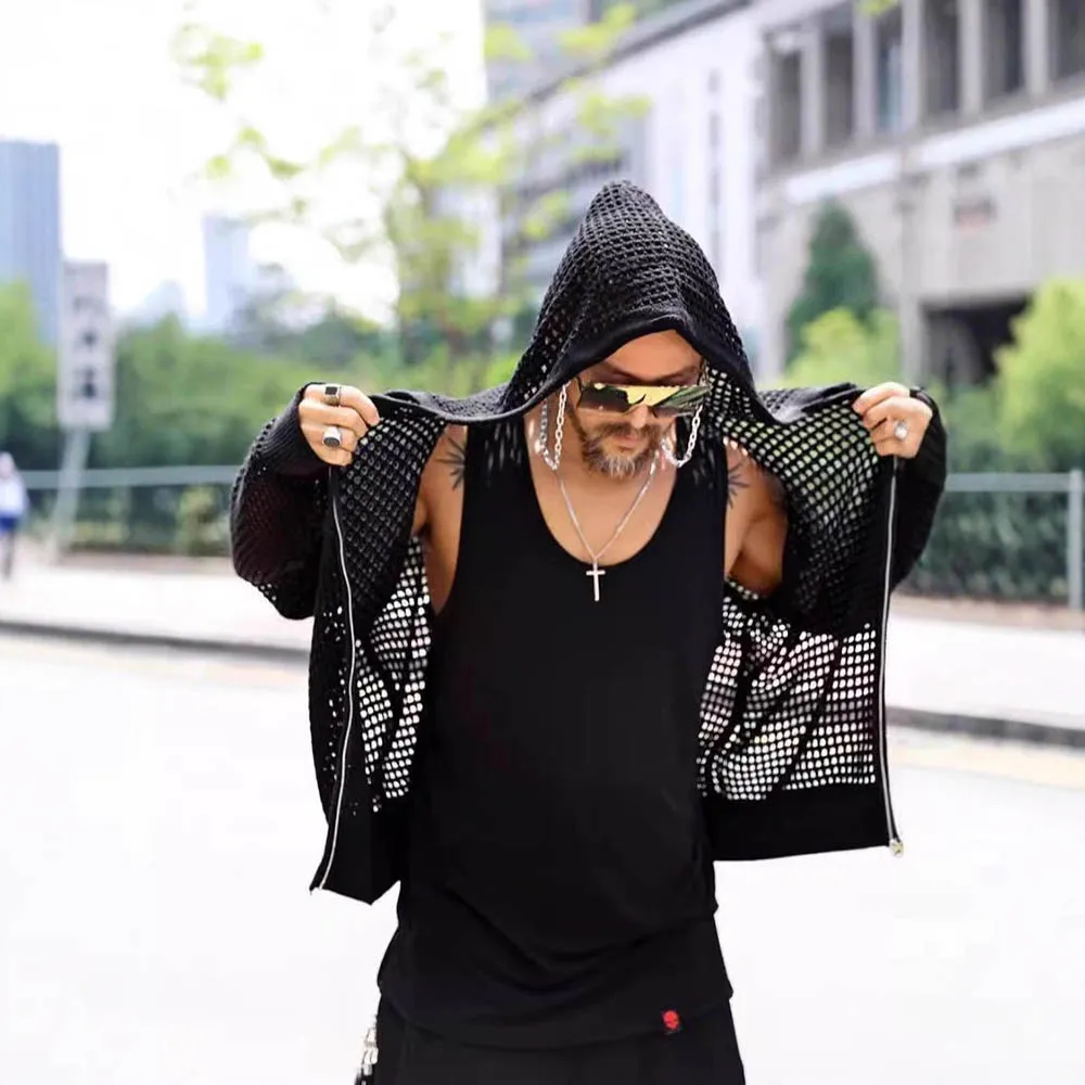 Men's Hooded Hollow Long-Sleeved Jacket American Retro Fashion Trend Loose Breathable Niche Spring And Autumn New Men's Tops