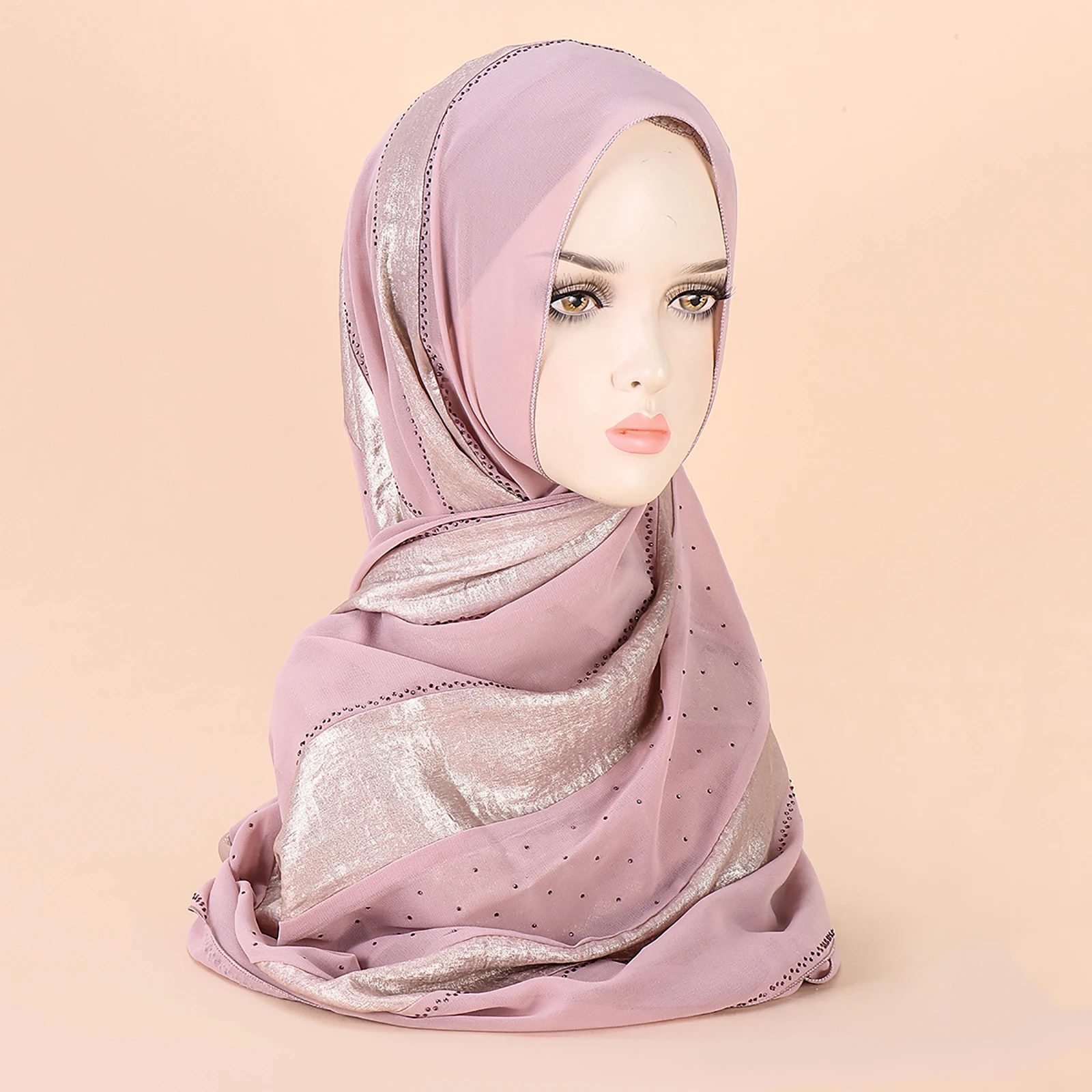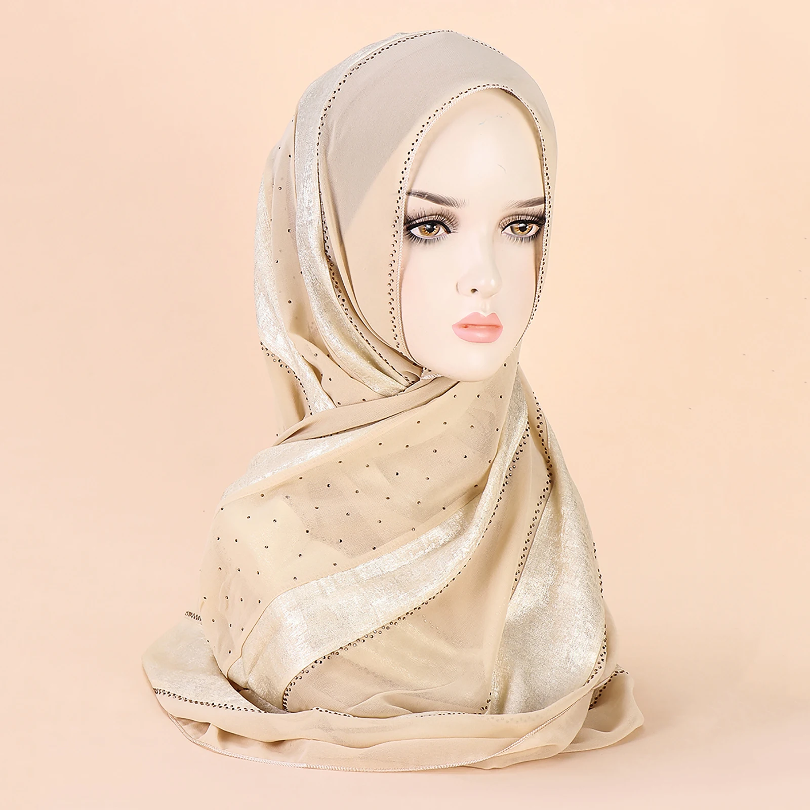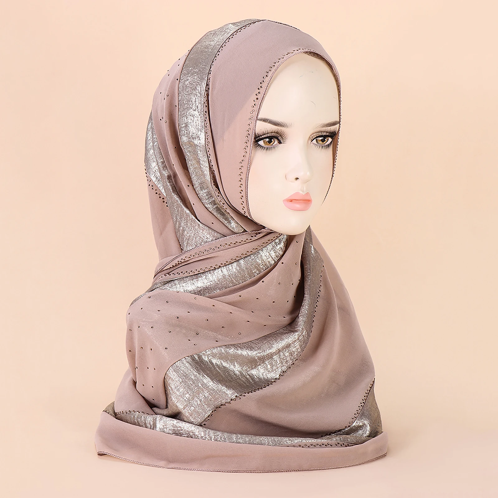 Middle Eastern New Gold Craft Fabric Splice Chiffon Handmade Diamond Decoration Versatile Muslim Women's Headband Scarf Hijab
