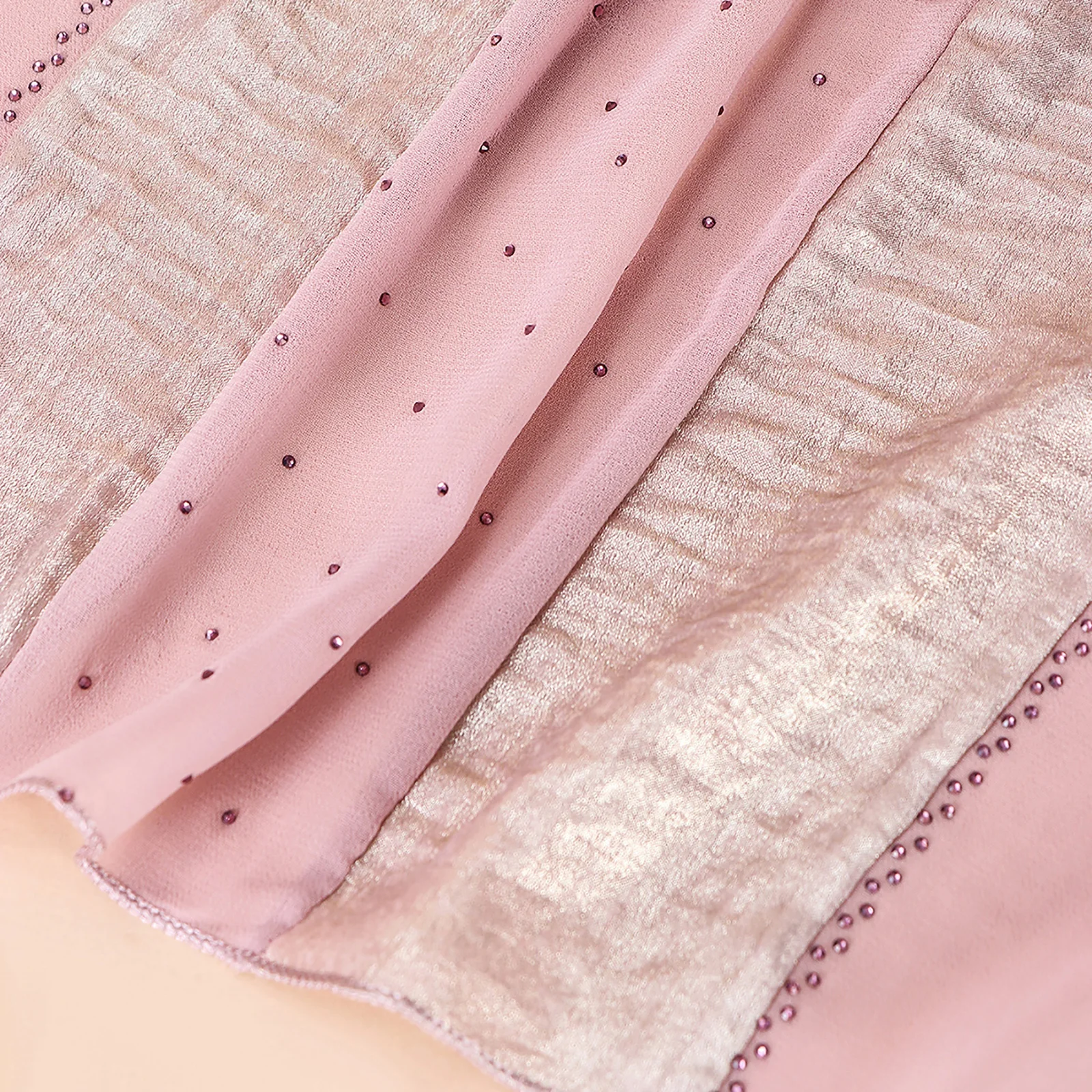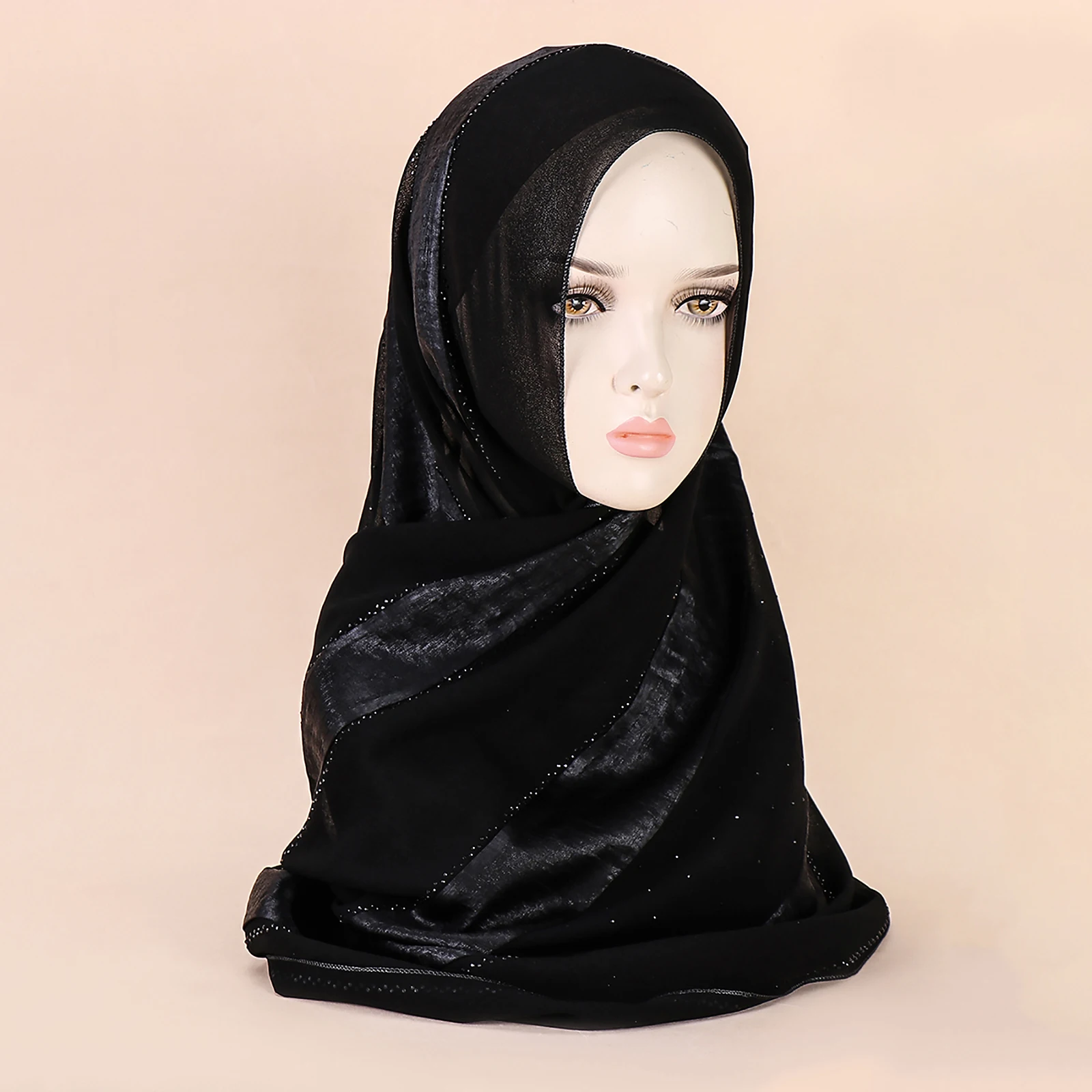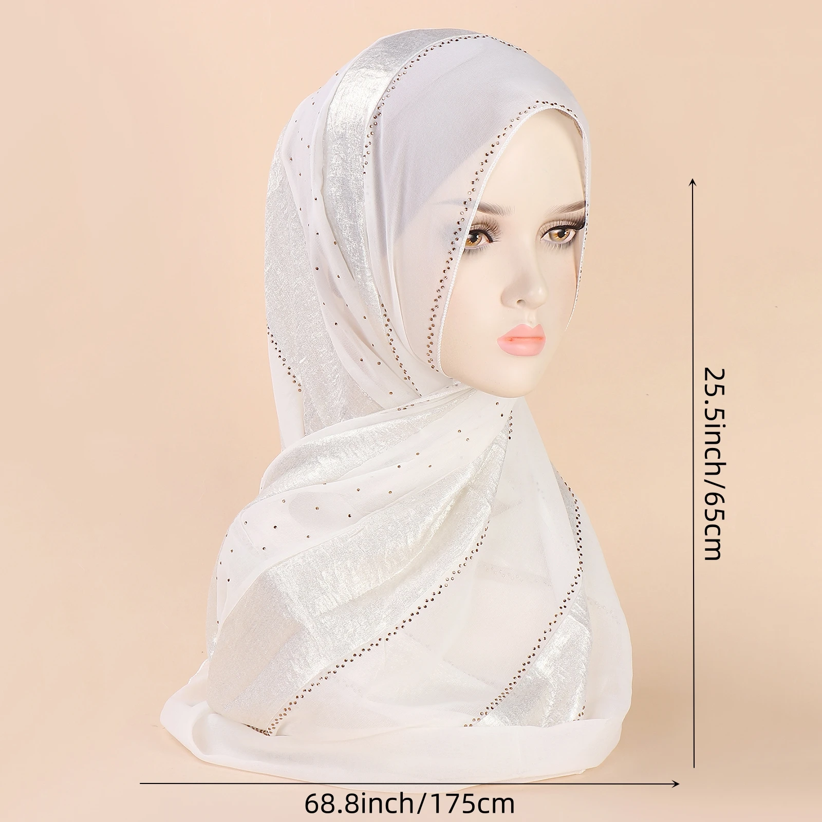 Middle Eastern New Gold Craft Fabric Splice Chiffon Handmade Diamond Decoration Versatile Muslim Women's Headband Scarf Hijab