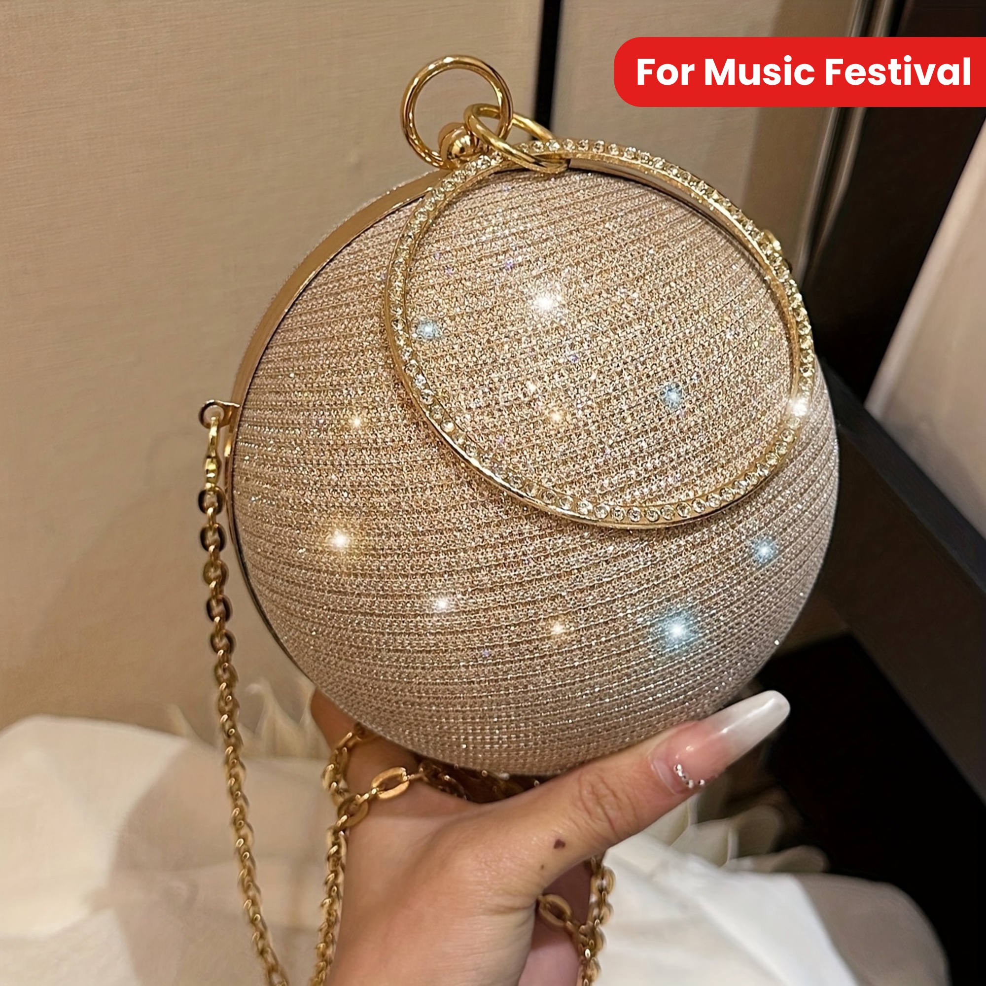 🌟 What is it - Meet our Glitter Mini Evening Bag, the perfect blend of style and functionality! This chic round clutch, adorned with glitter embellishments, is designed to add a touch of glam to any outfit, making it your go-to accessory for events like weddings, music festivals, or dinners.