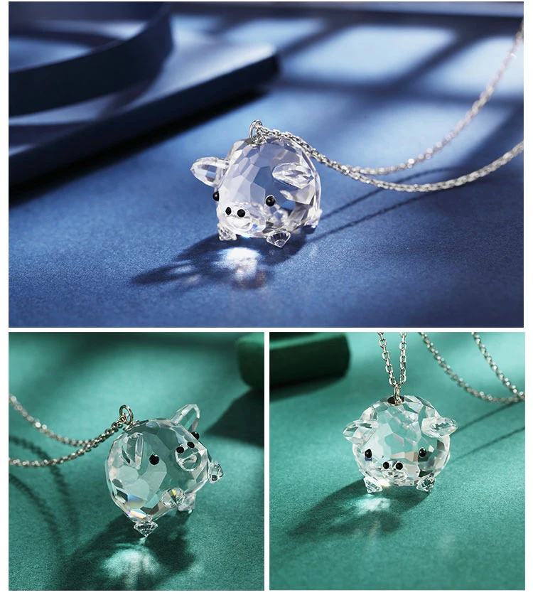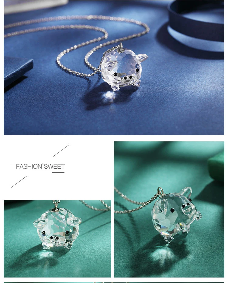 New Creative Fashion 925 Sterling Silver Austrian Crystal Pig Pendant Necklace Cute Crystal Silver Chain Girl Gift fashion