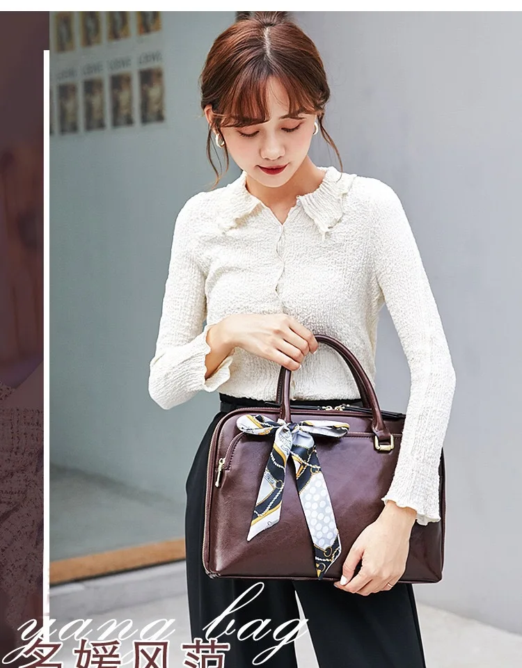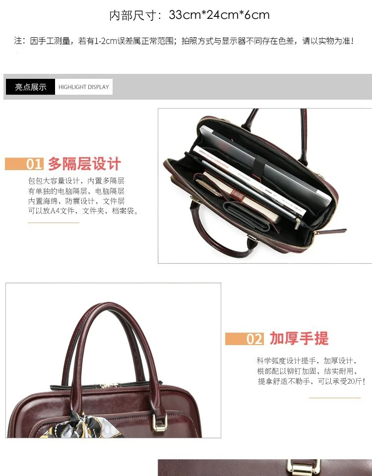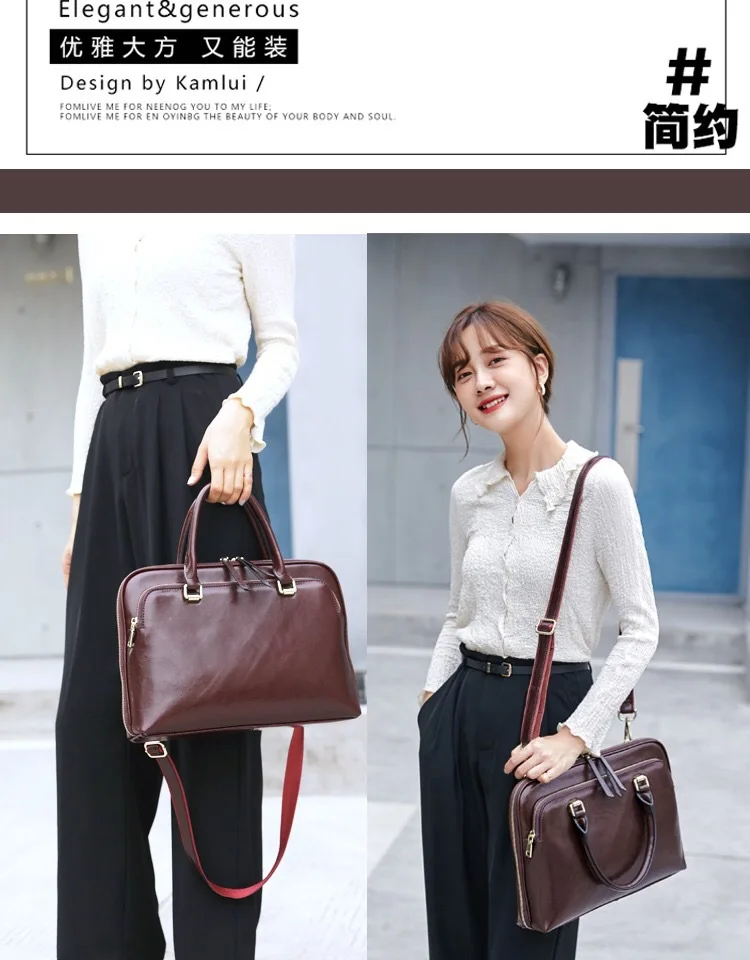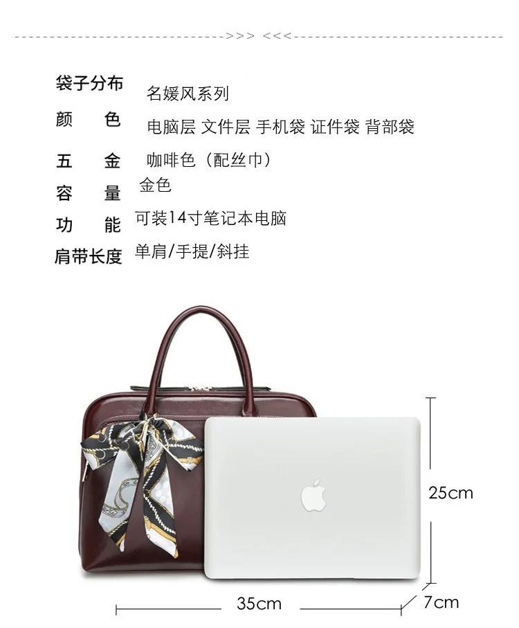 New Genuine Leather Women's Handbag Suitable for 13" and 14" Laptop Bags Single Shoulder Crossbody Briefcase