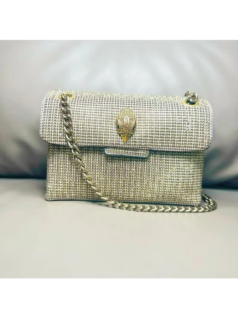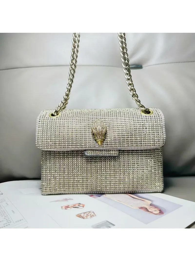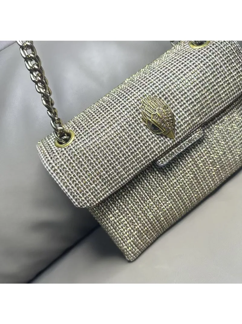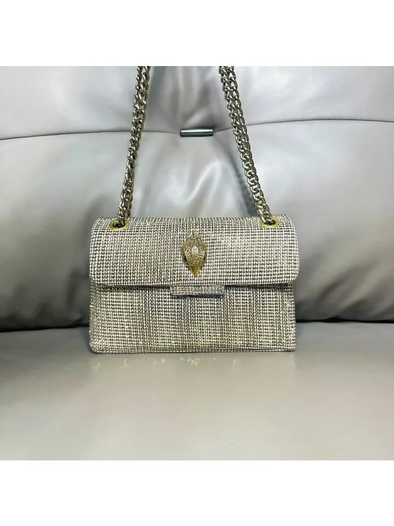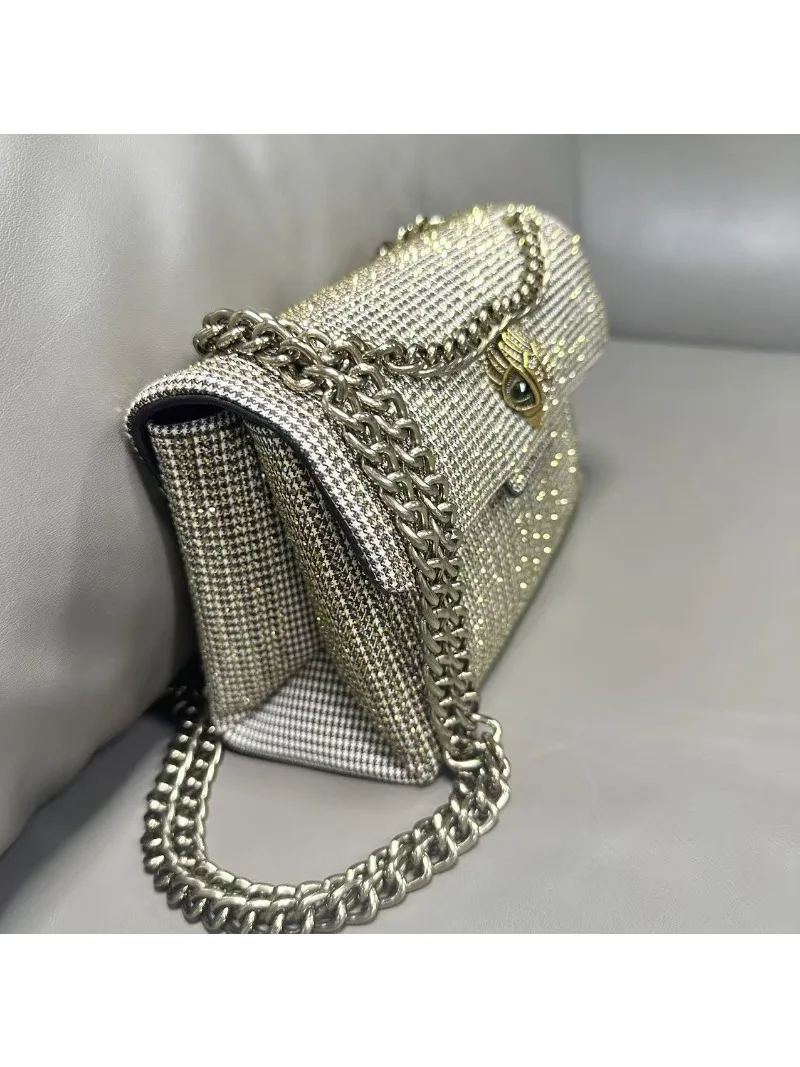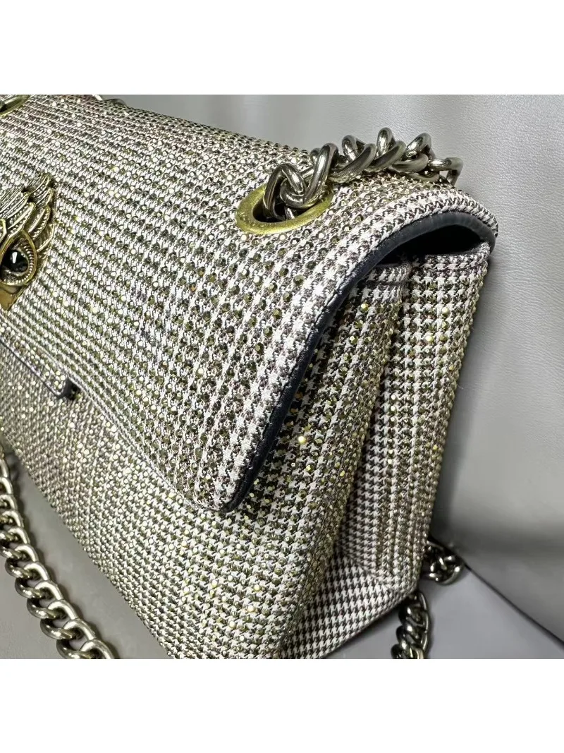 New Kg Model of British Trench Pattern Bag with Rhinestone Accents, Single Shoulder Crossbody Bag with Eagle Head Chain Strap